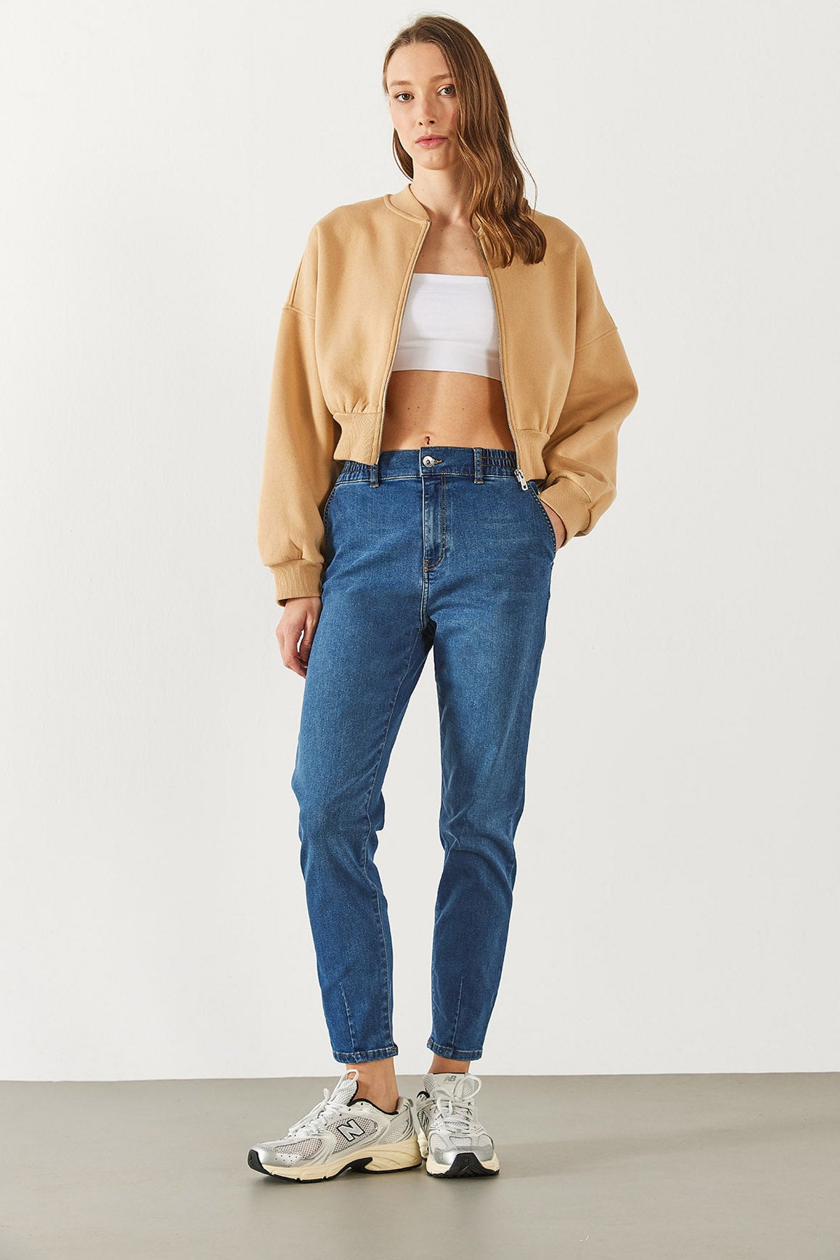 Kadın Norah Dark Blue Beli Lastikli Jean Pantolon - Dark Blue