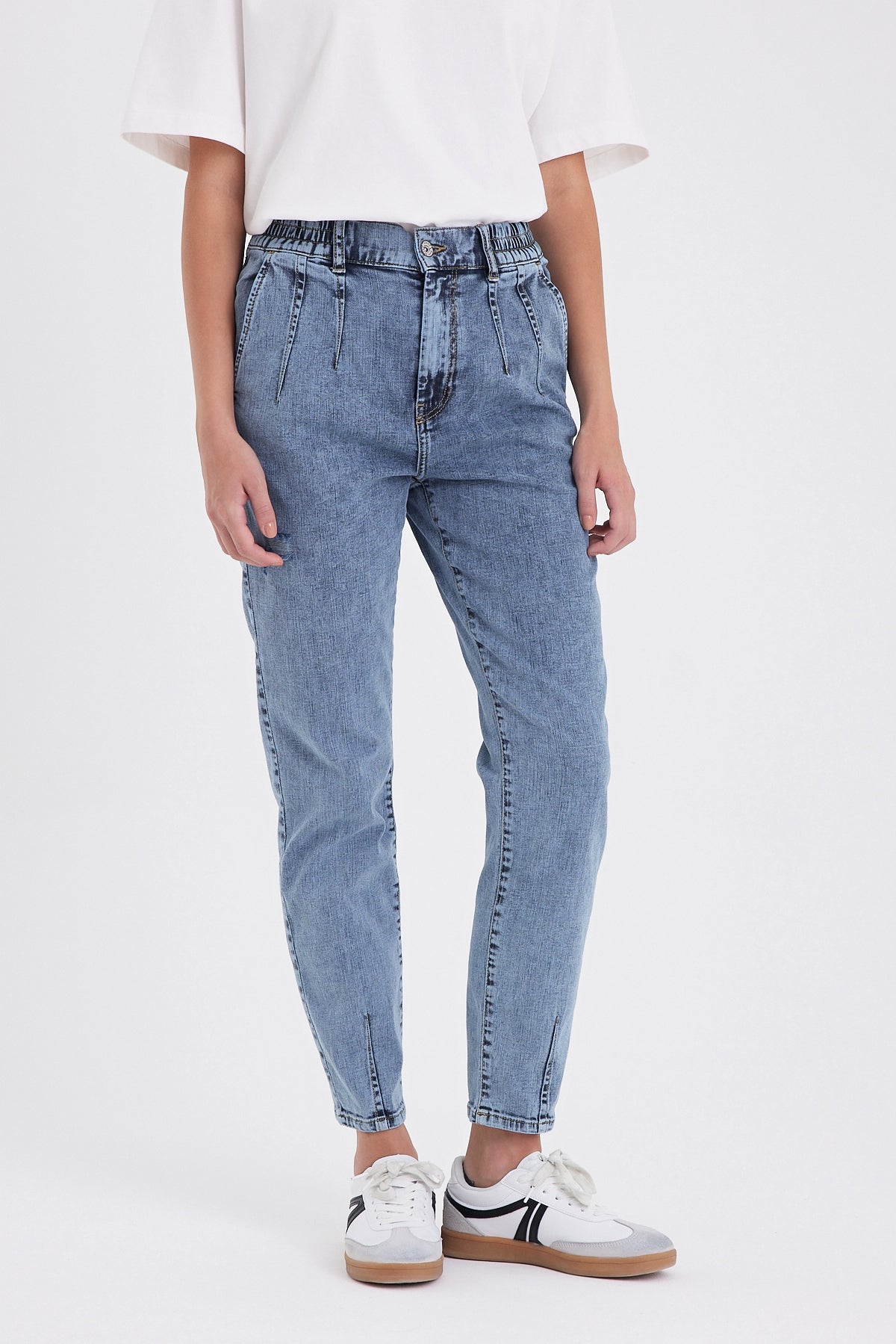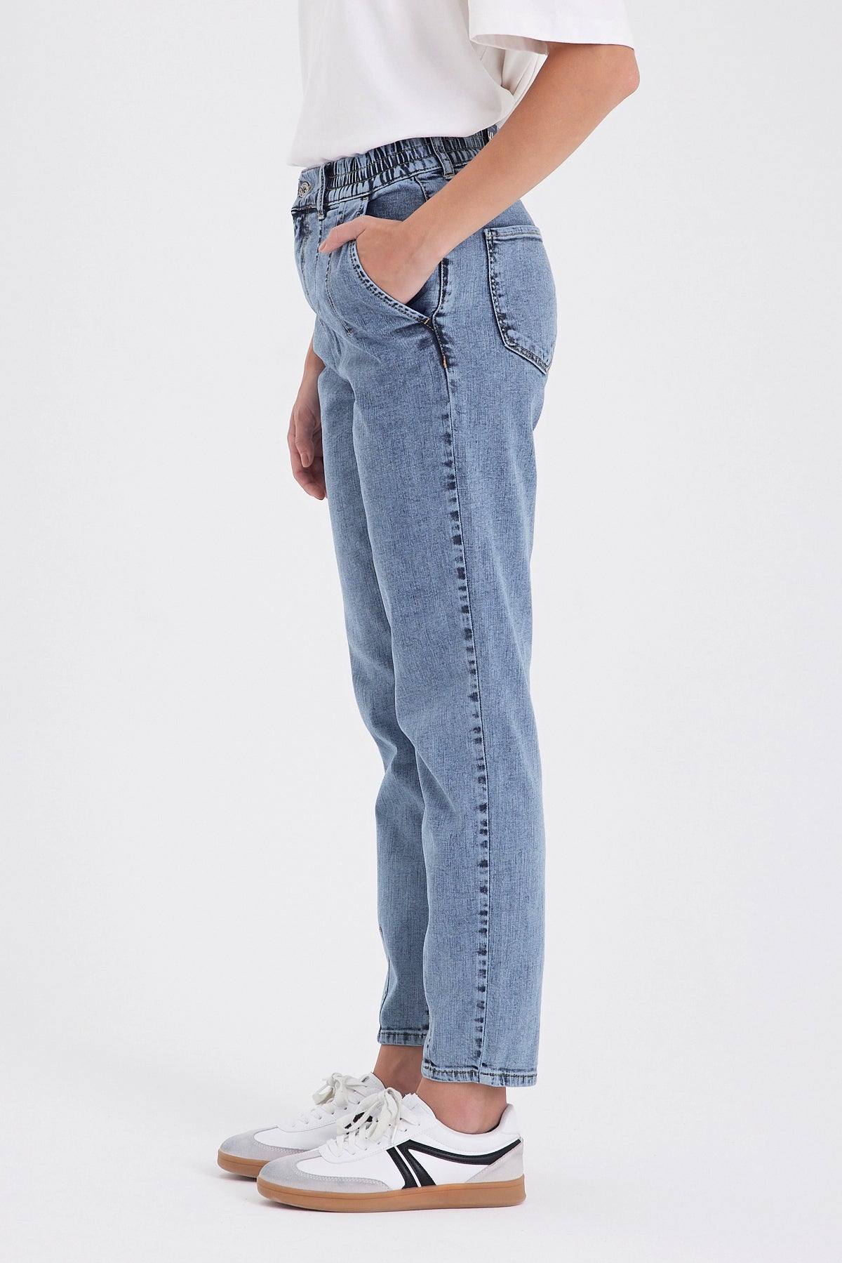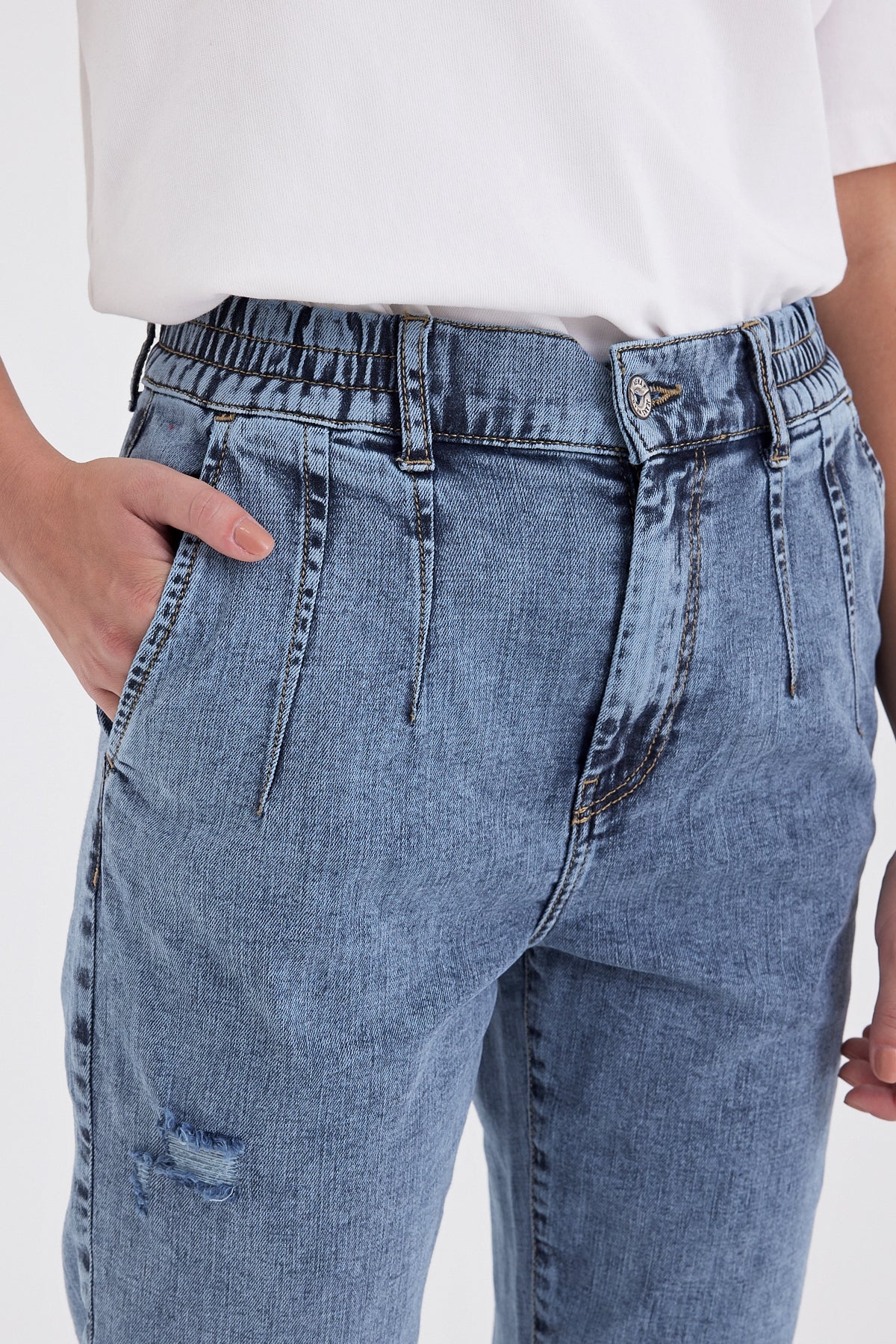 Kadın Norah Med Blue Yıpratma Detaylı Beli Lastikli Jean Pantolon - Med Blue