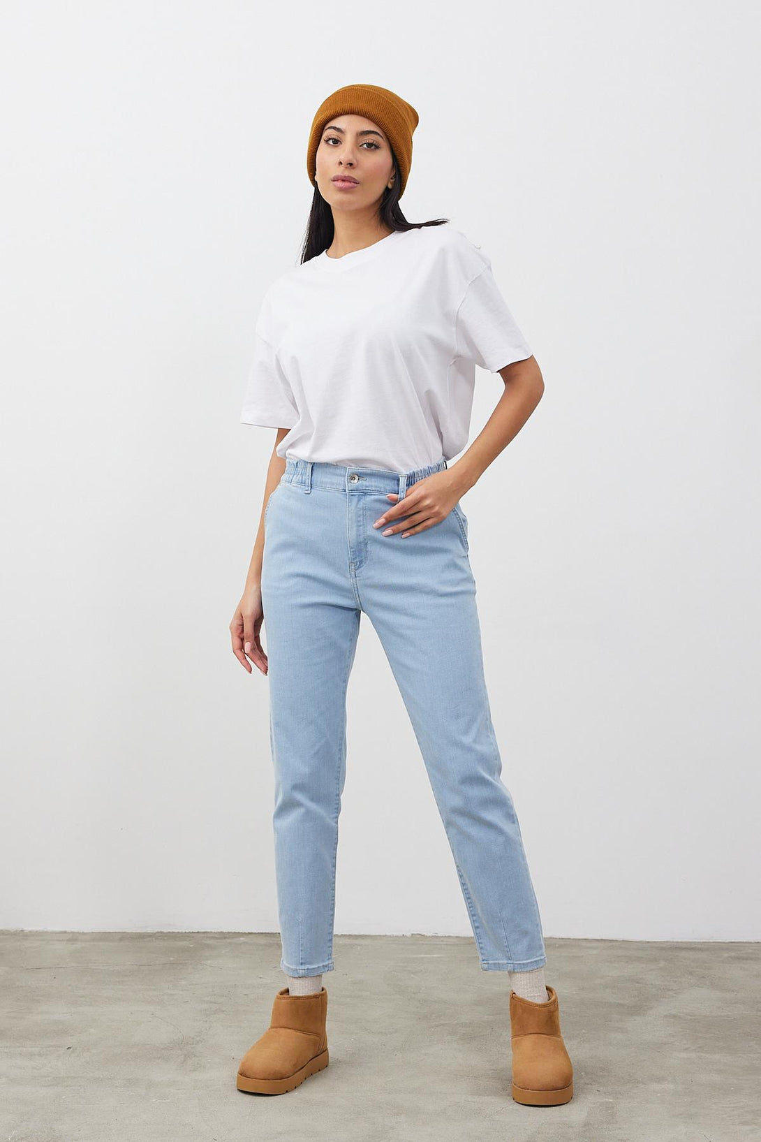 Norah Sky Blue Beli Lastikli Jean Pantolon - SKY BLUE