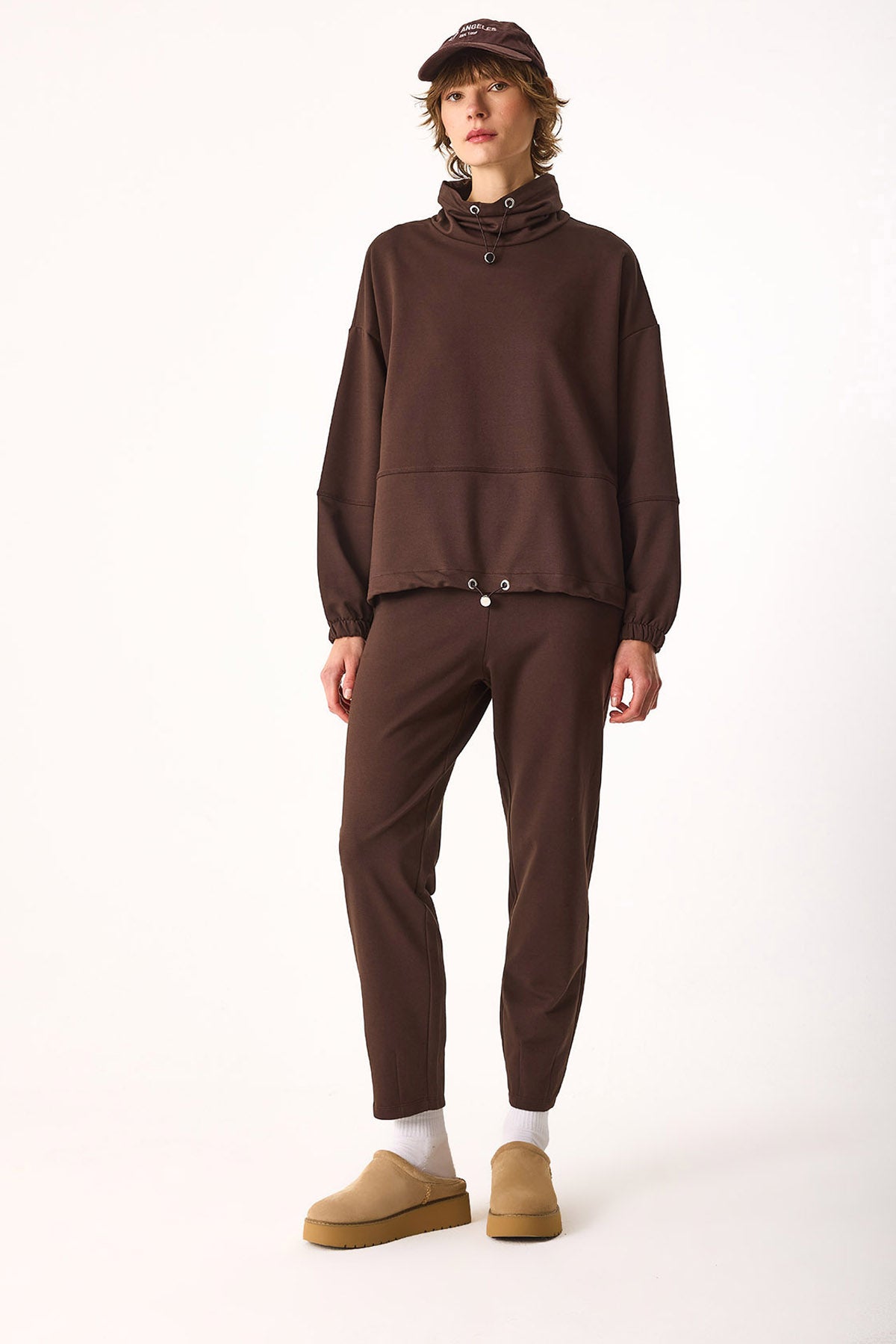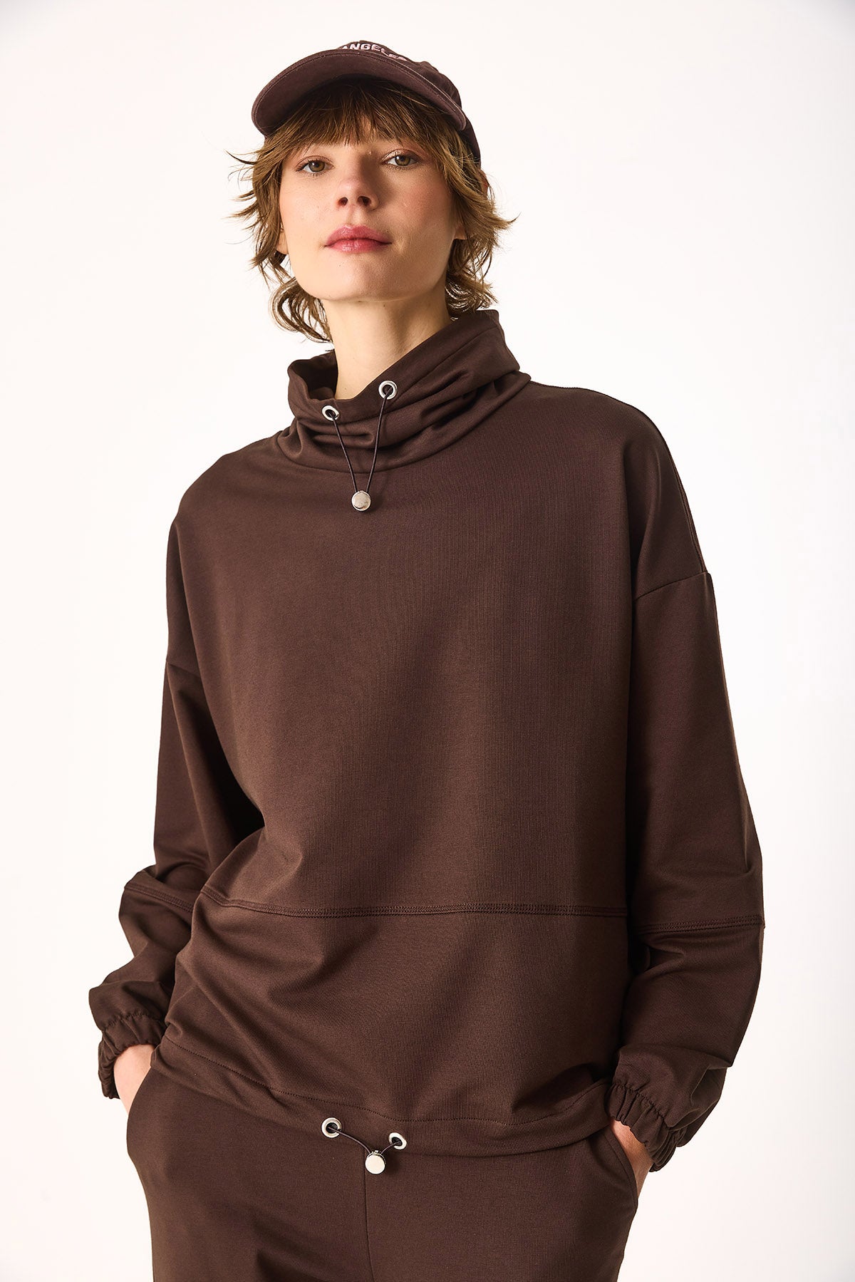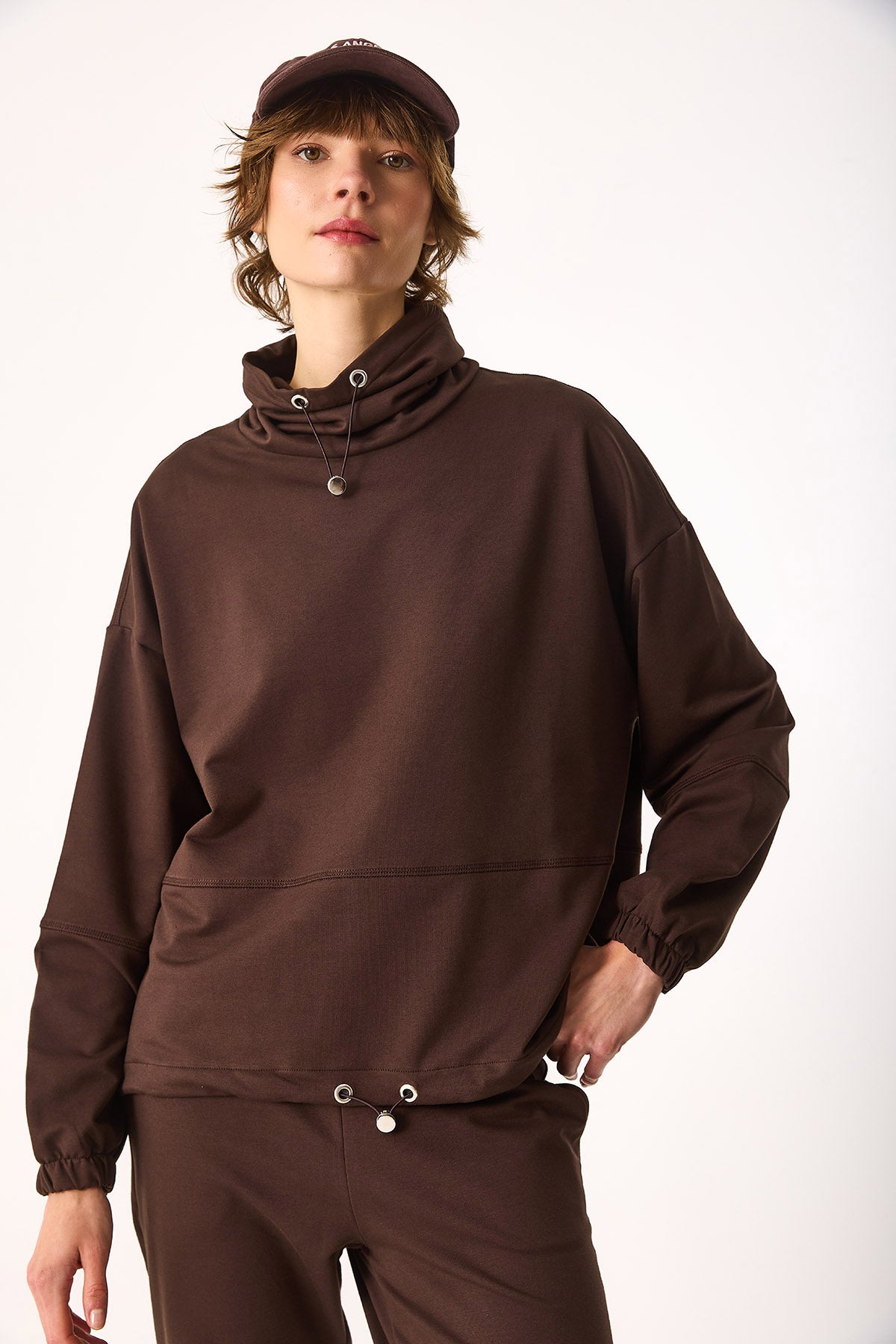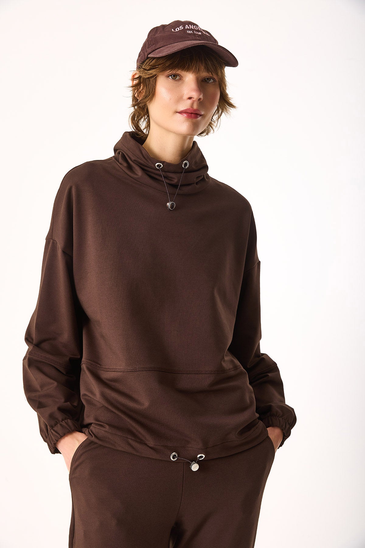Kadın Norah Yakası Detaylı Regular Fit Sweatshirt - Kahverengi
