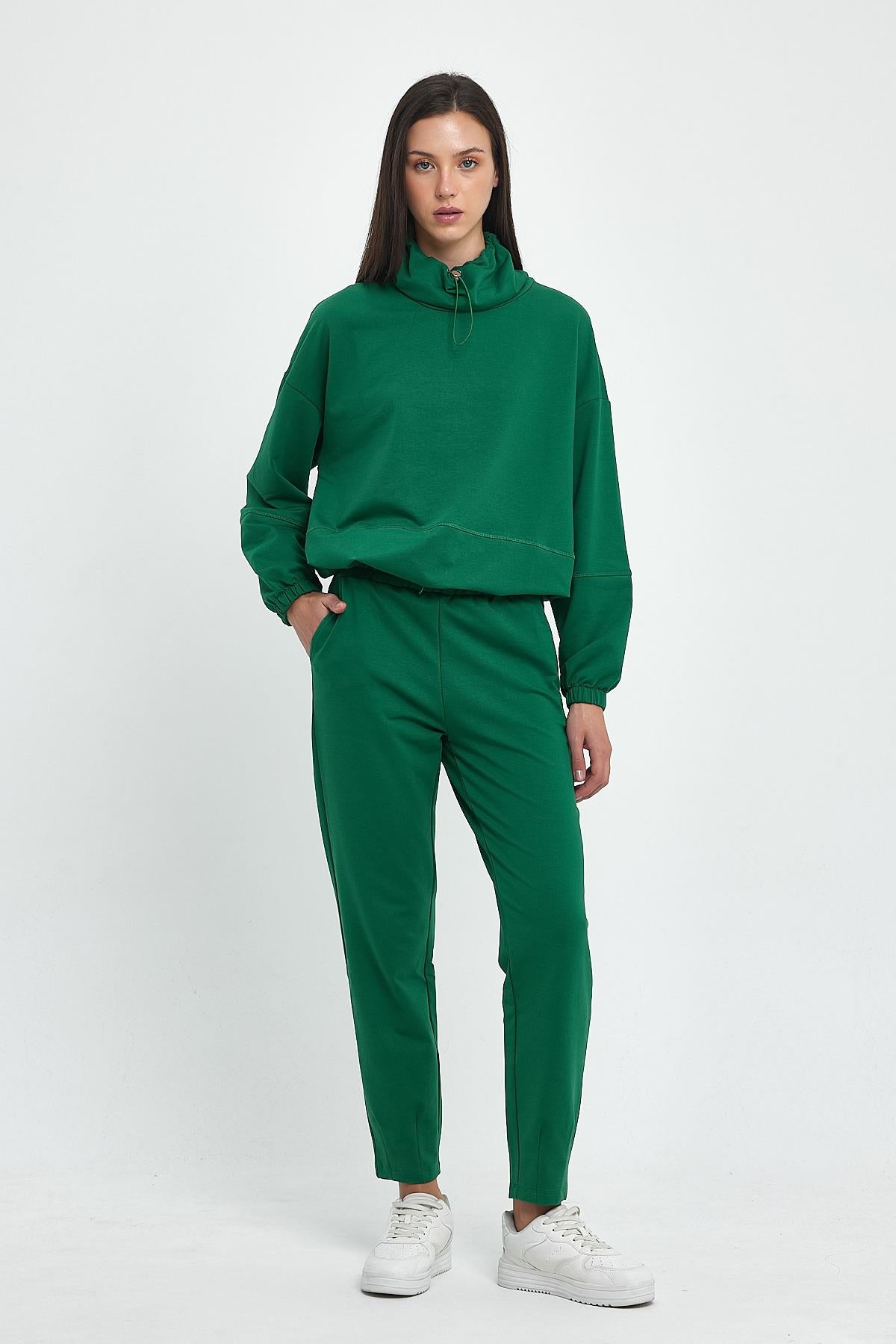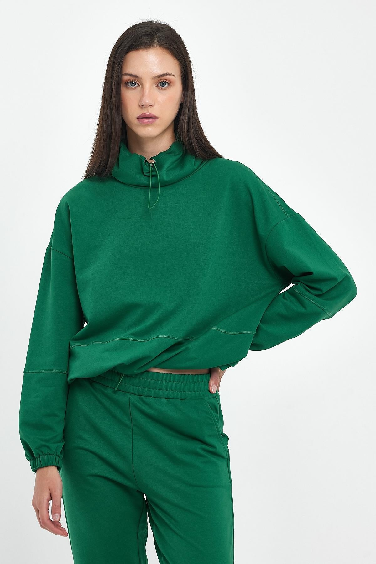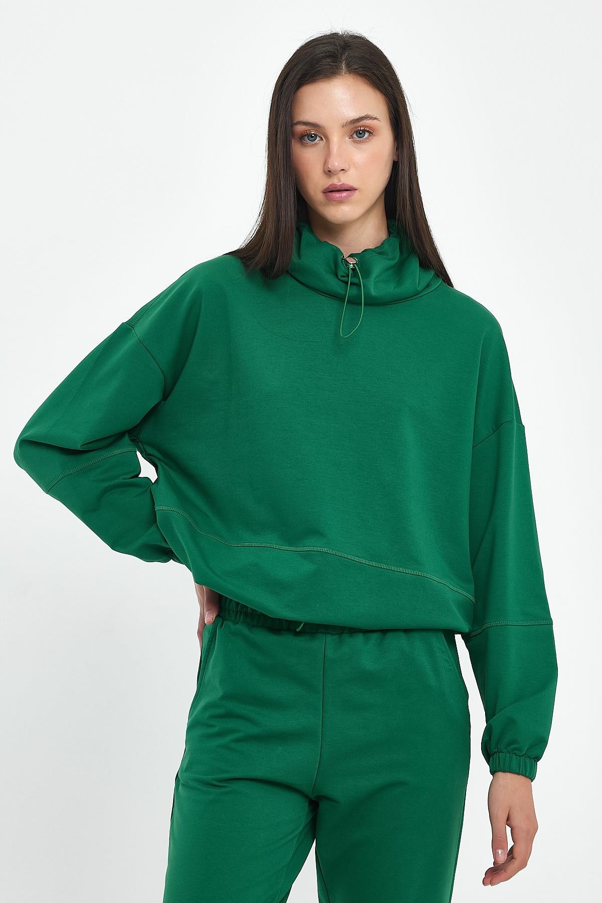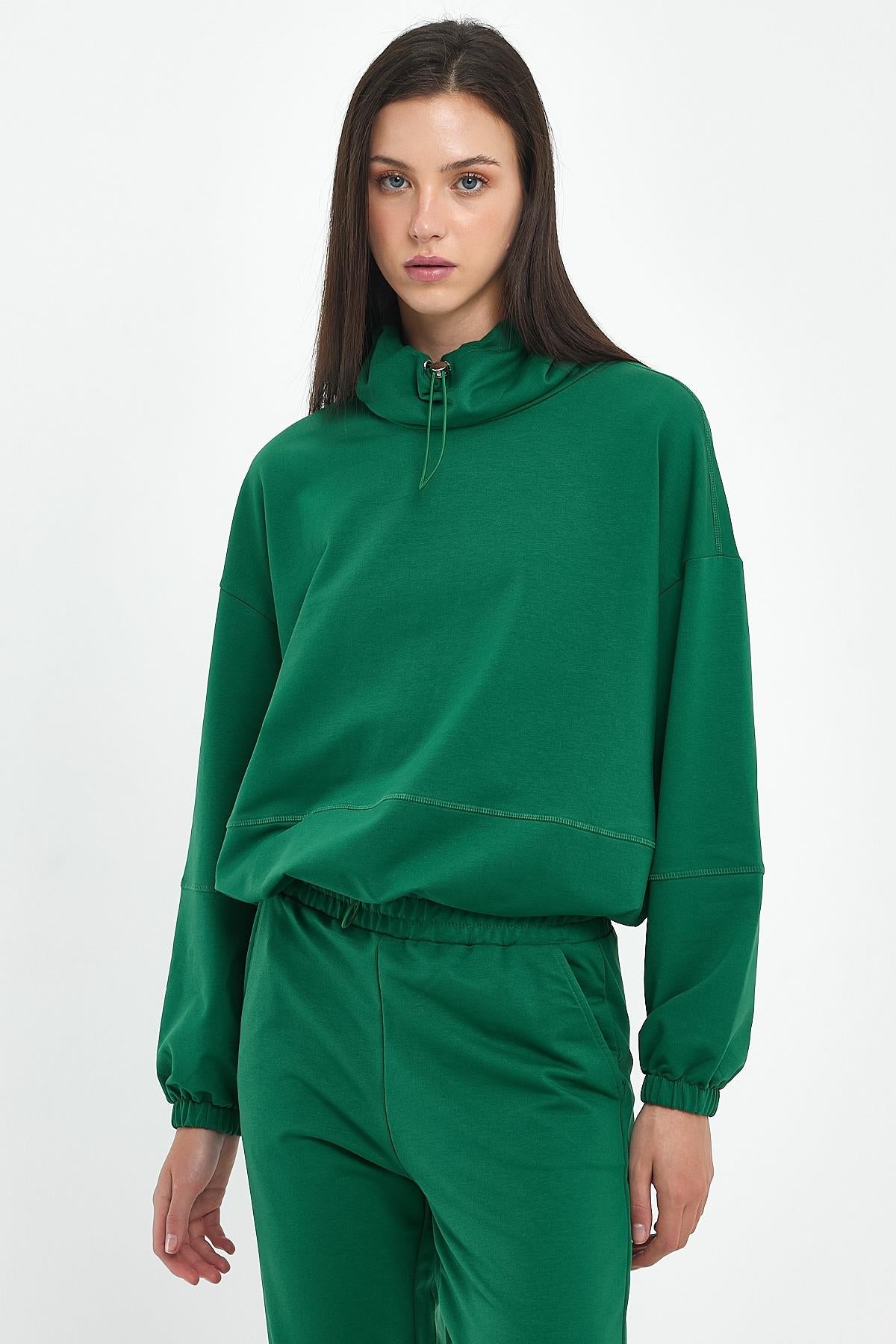 Kadın Norah Yakası Detaylı Regular Fit Sweatshirt - Orman