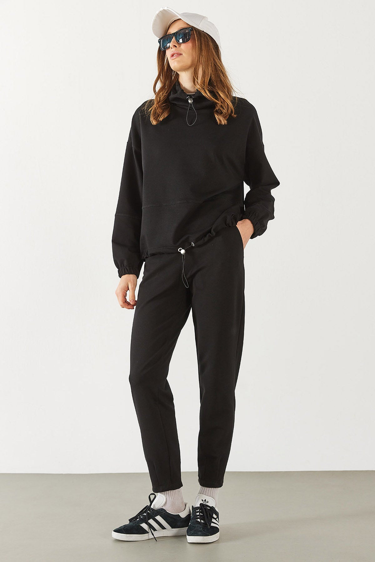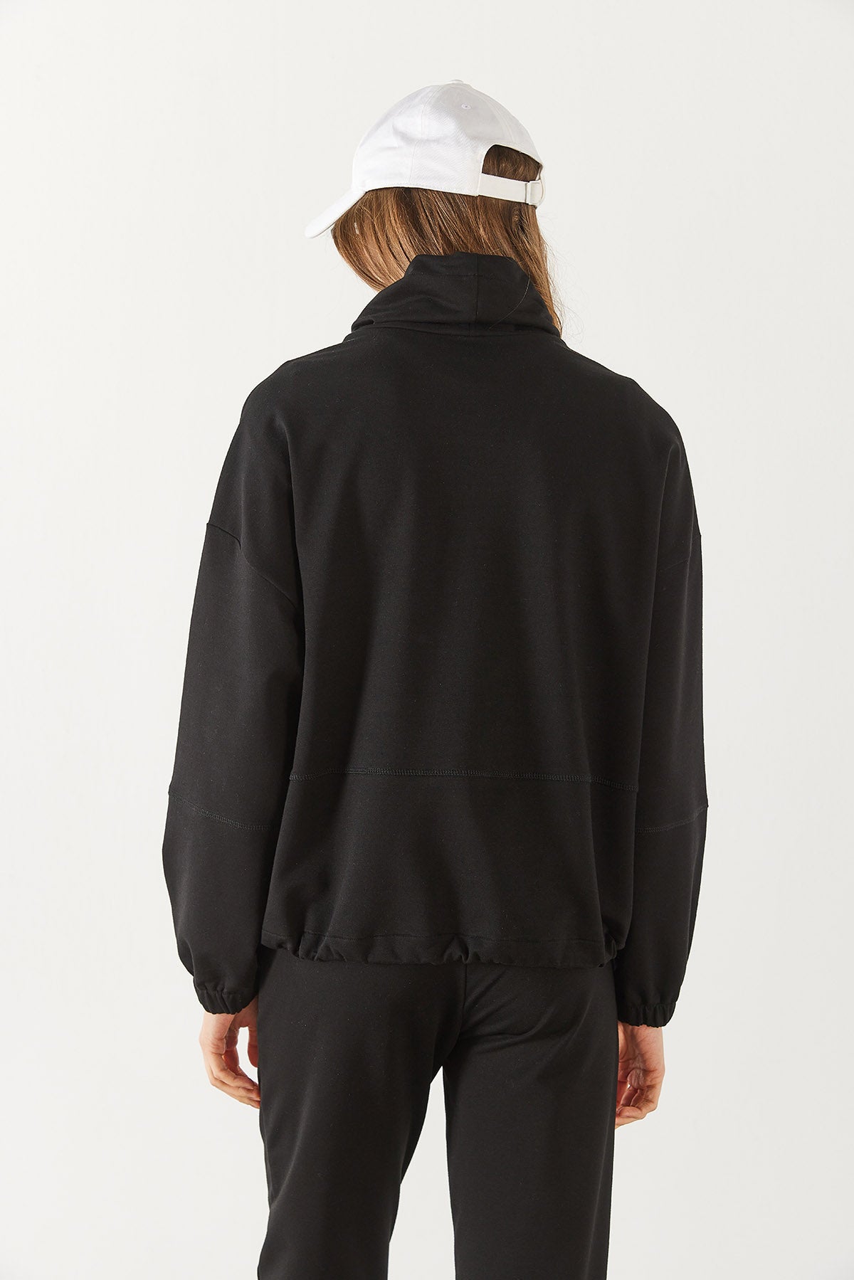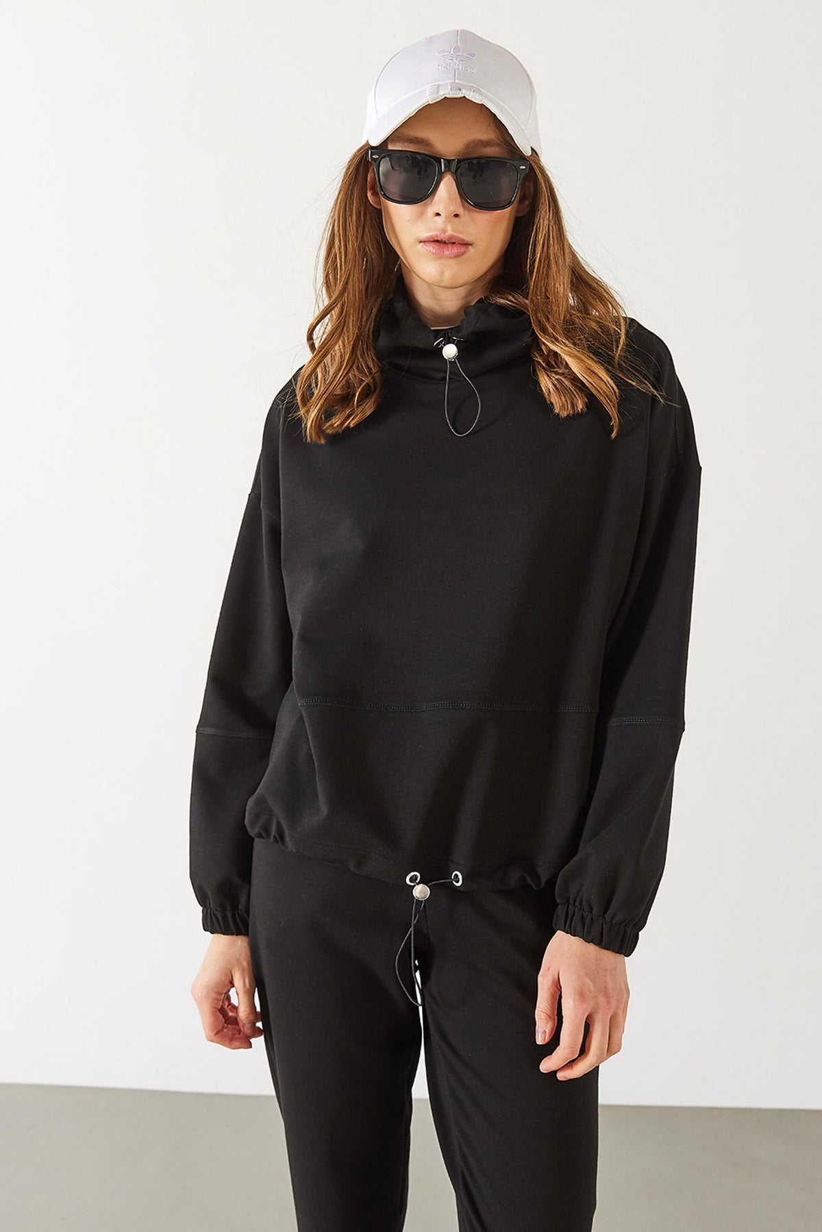 Kadın Norah Yakası Detaylı Regular Fit Sweatshirt - Siyah