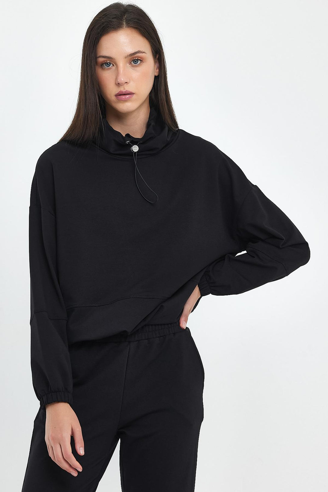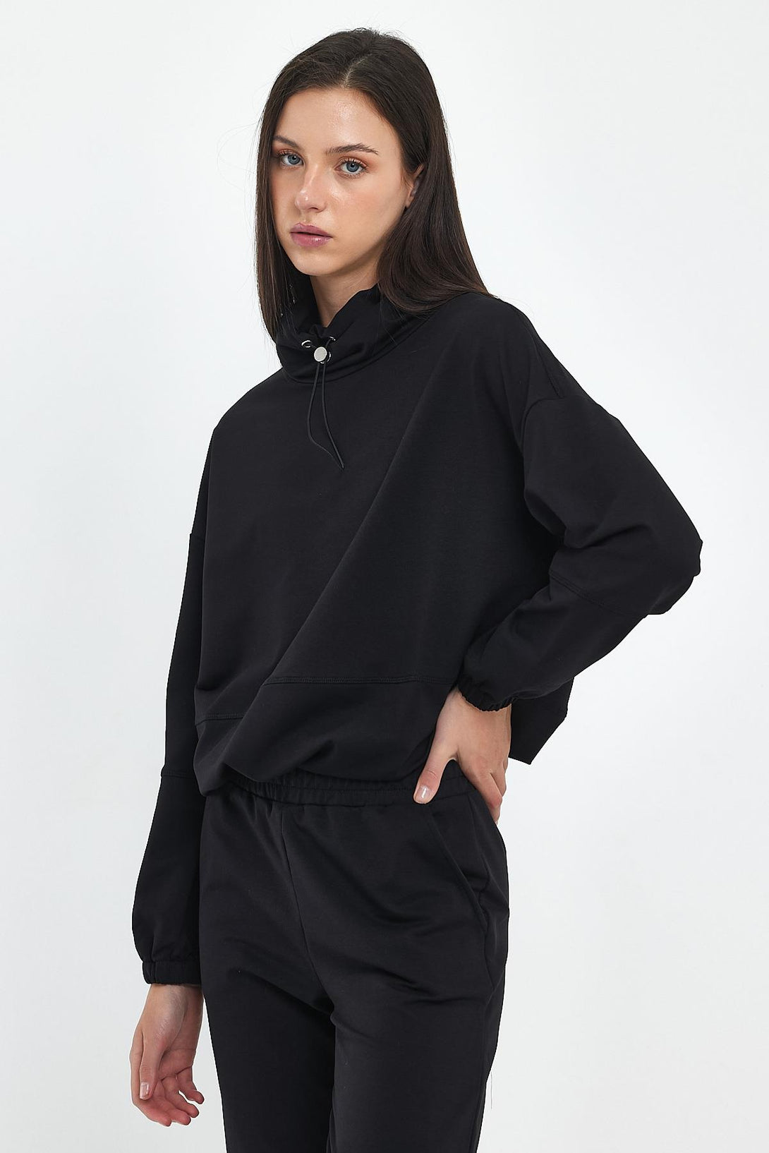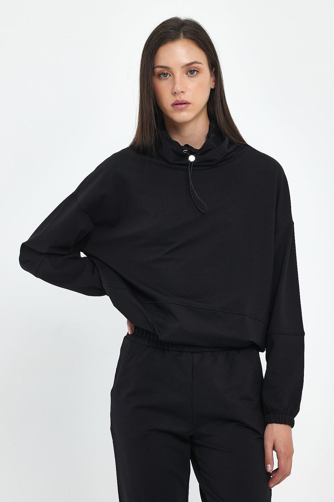 Norah Yakası Detaylı Regular Fit Sweatshirt-Siyah