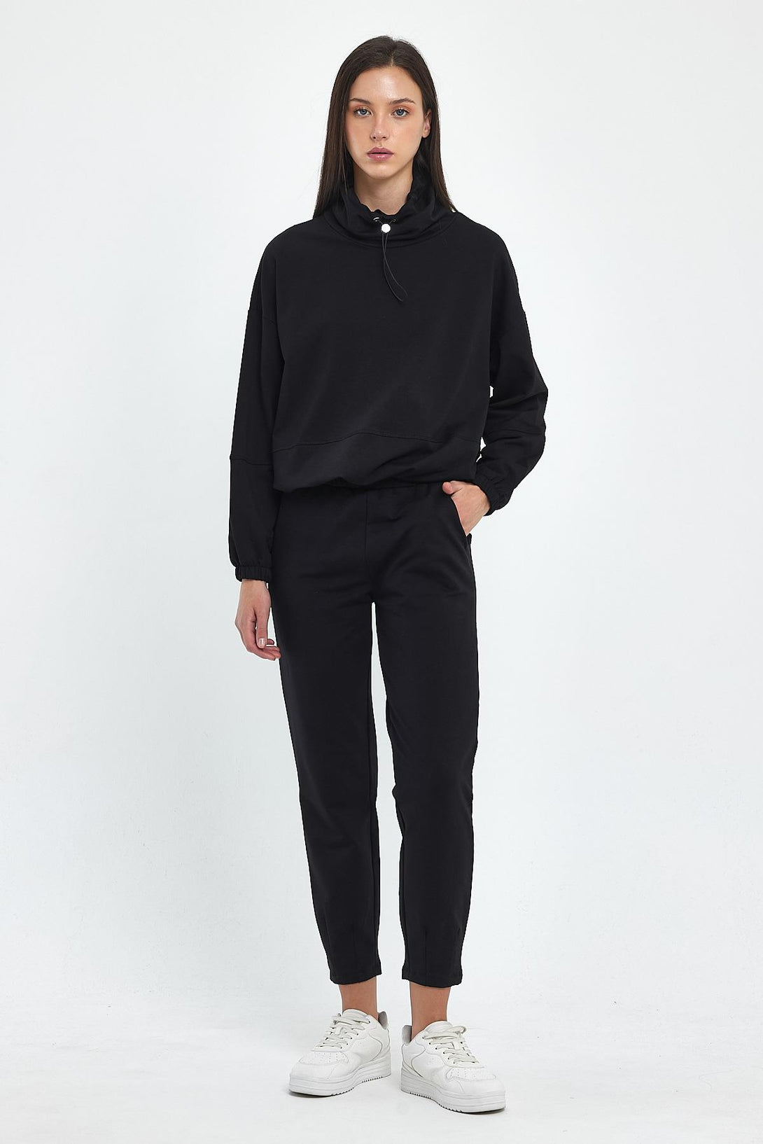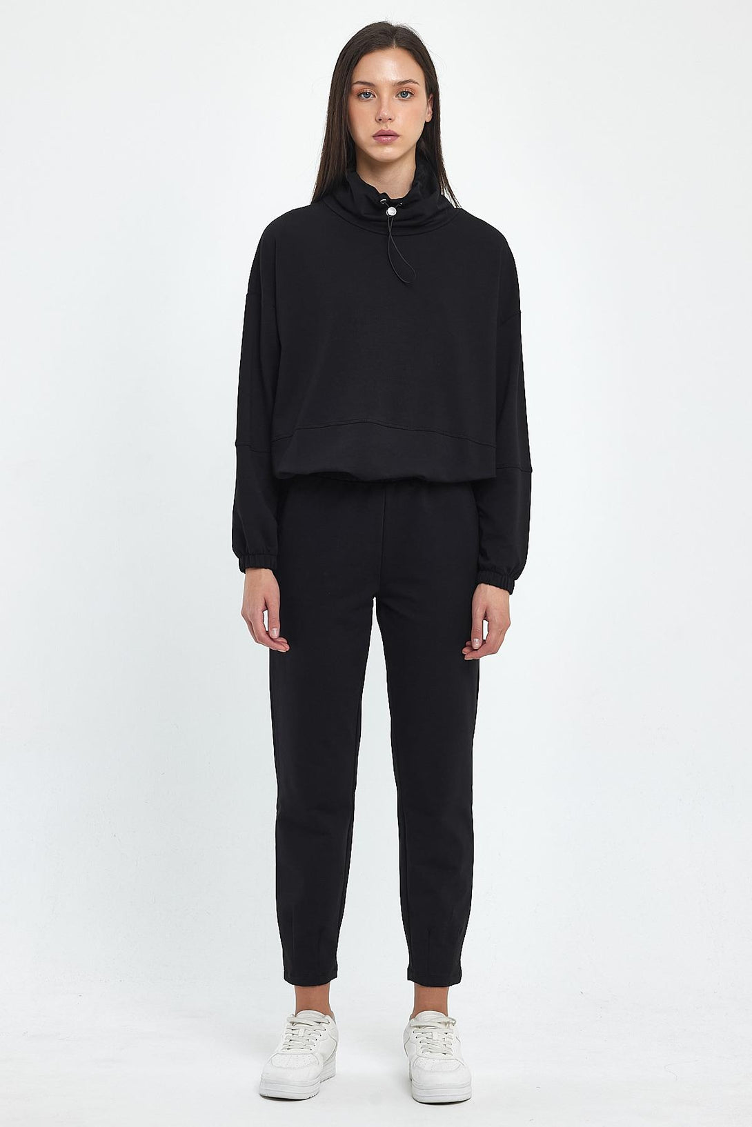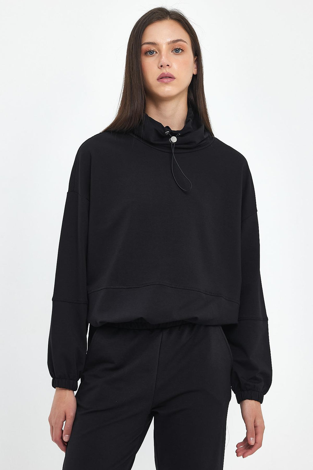 Norah Yakası Detaylı Regular Fit Sweatshirt-Siyah