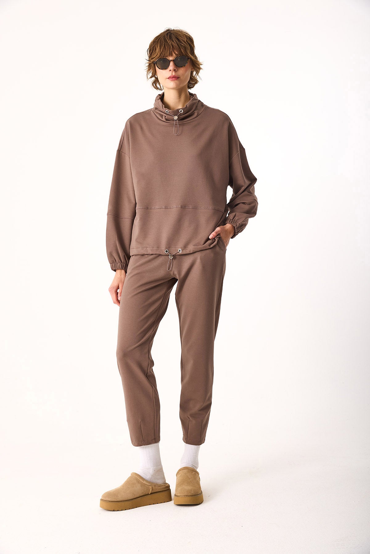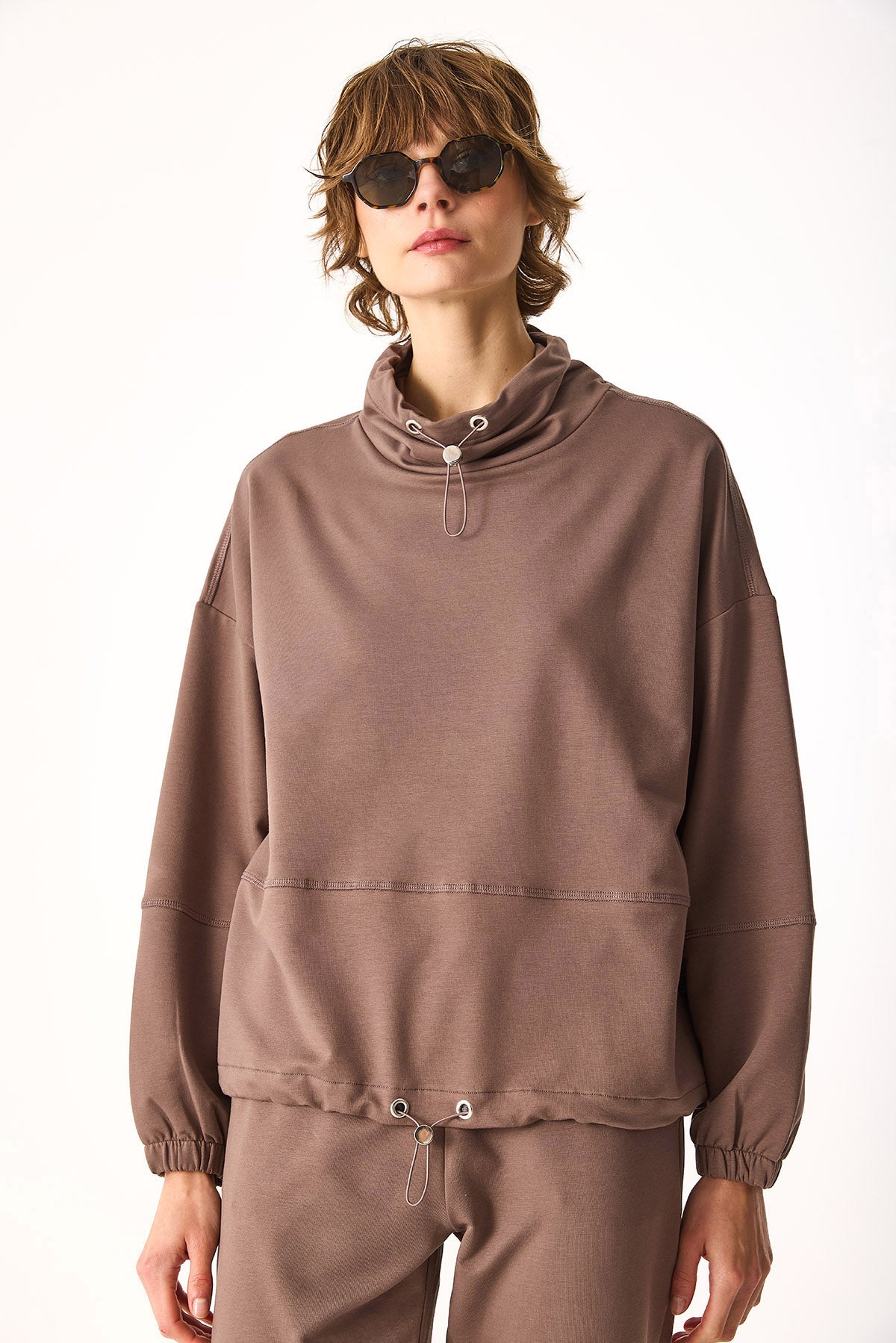 Kadın Norah Yakası Detaylı Regular Fit Sweatshirt - Vizon
