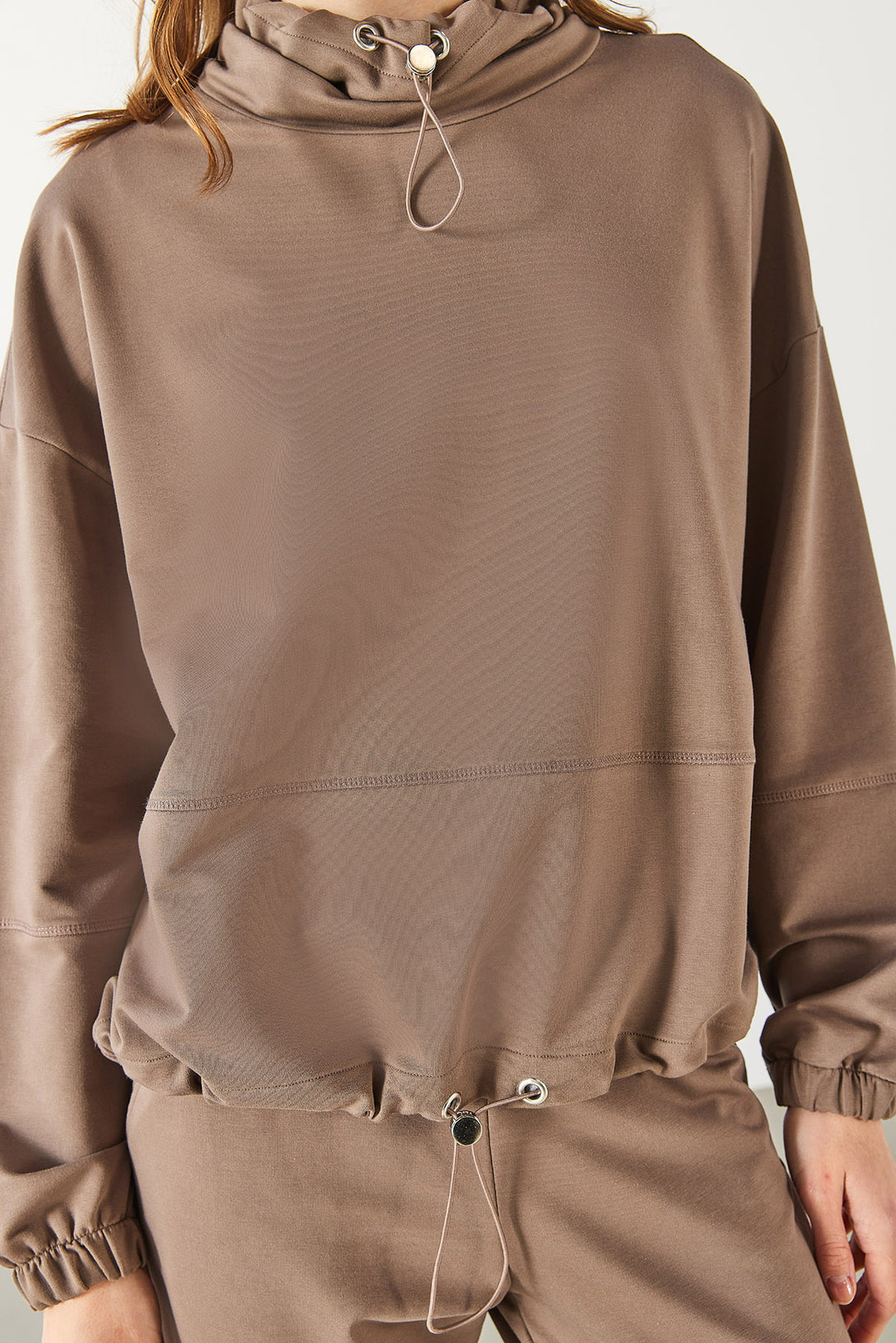Norah Yakası Detaylı Regular Fit Sweatshirt - VİZON