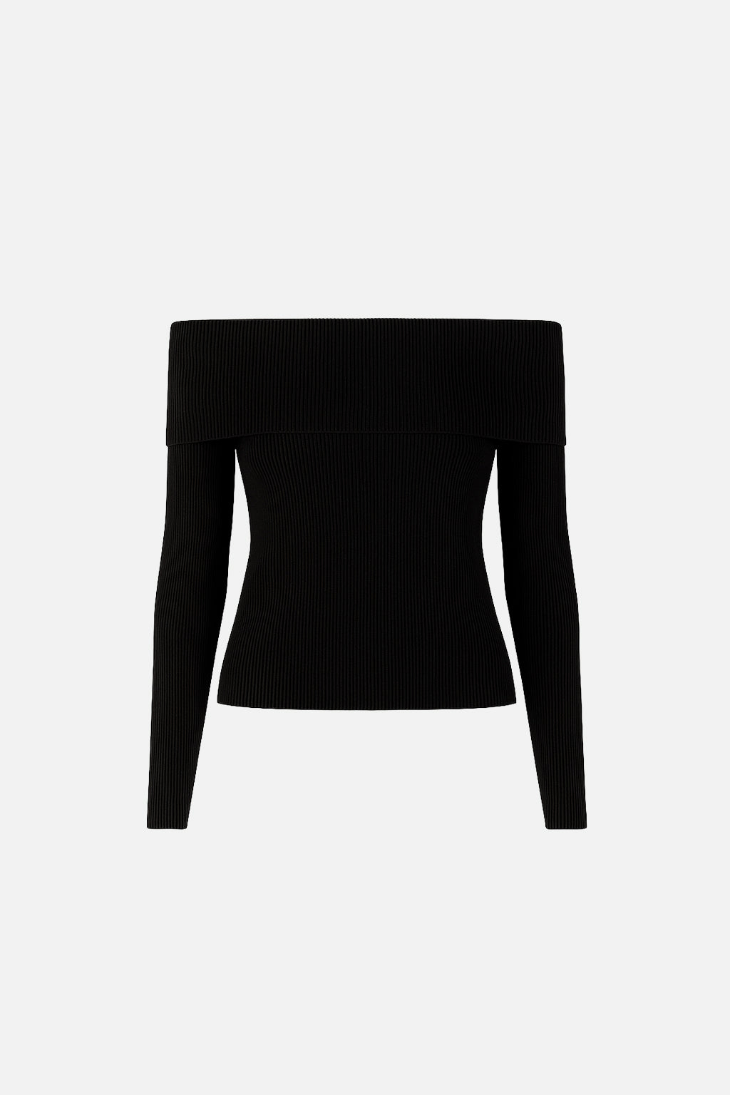 Kadın Omzu Açık Detaylı Triko - Siyah