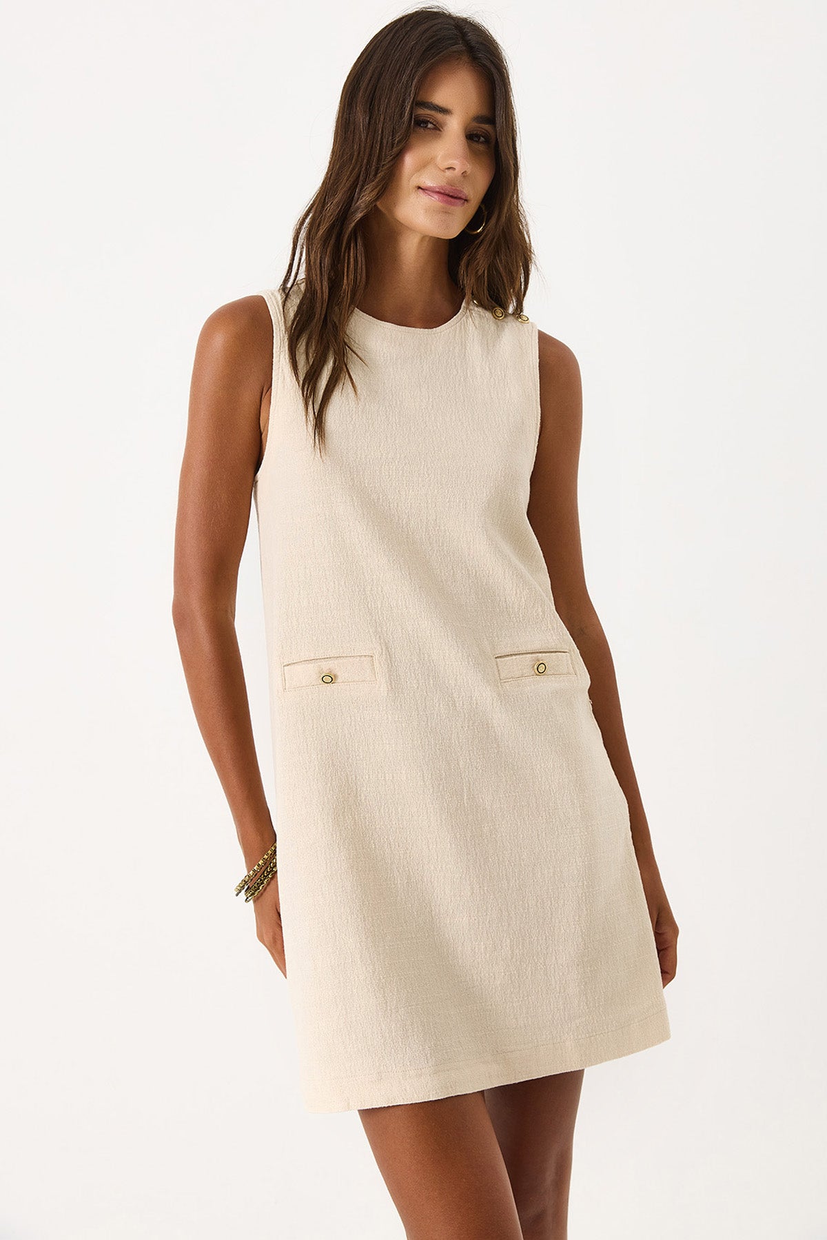 Kadın Omzu Düğme Detaylı Elbise - Naturel
