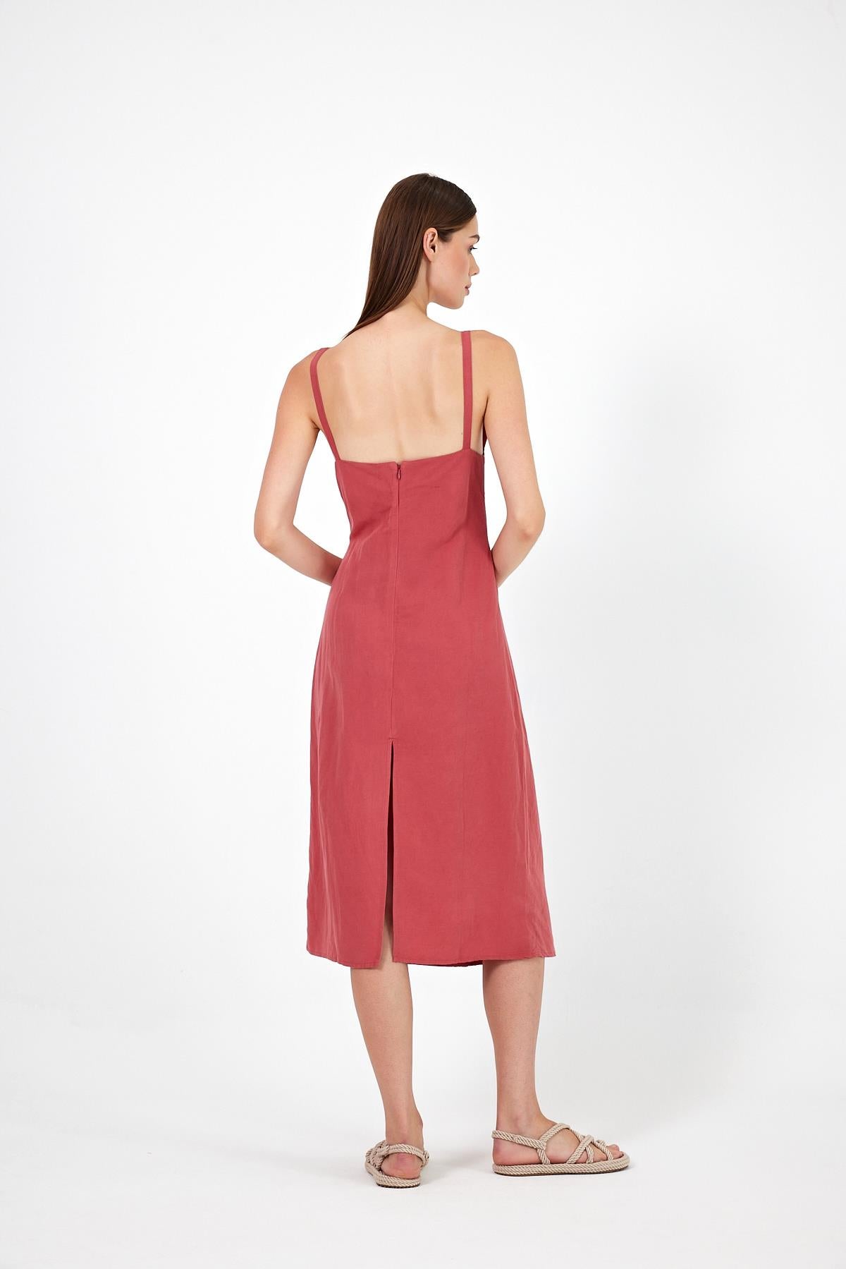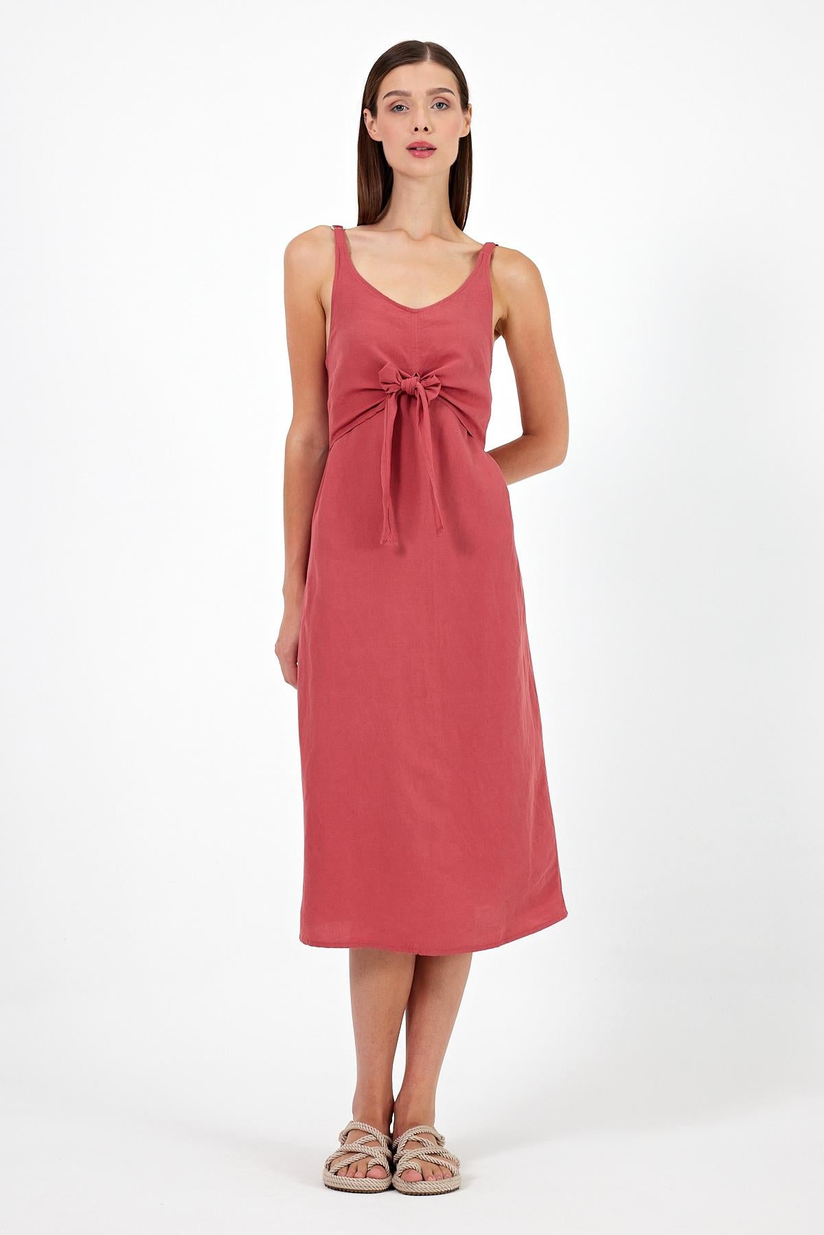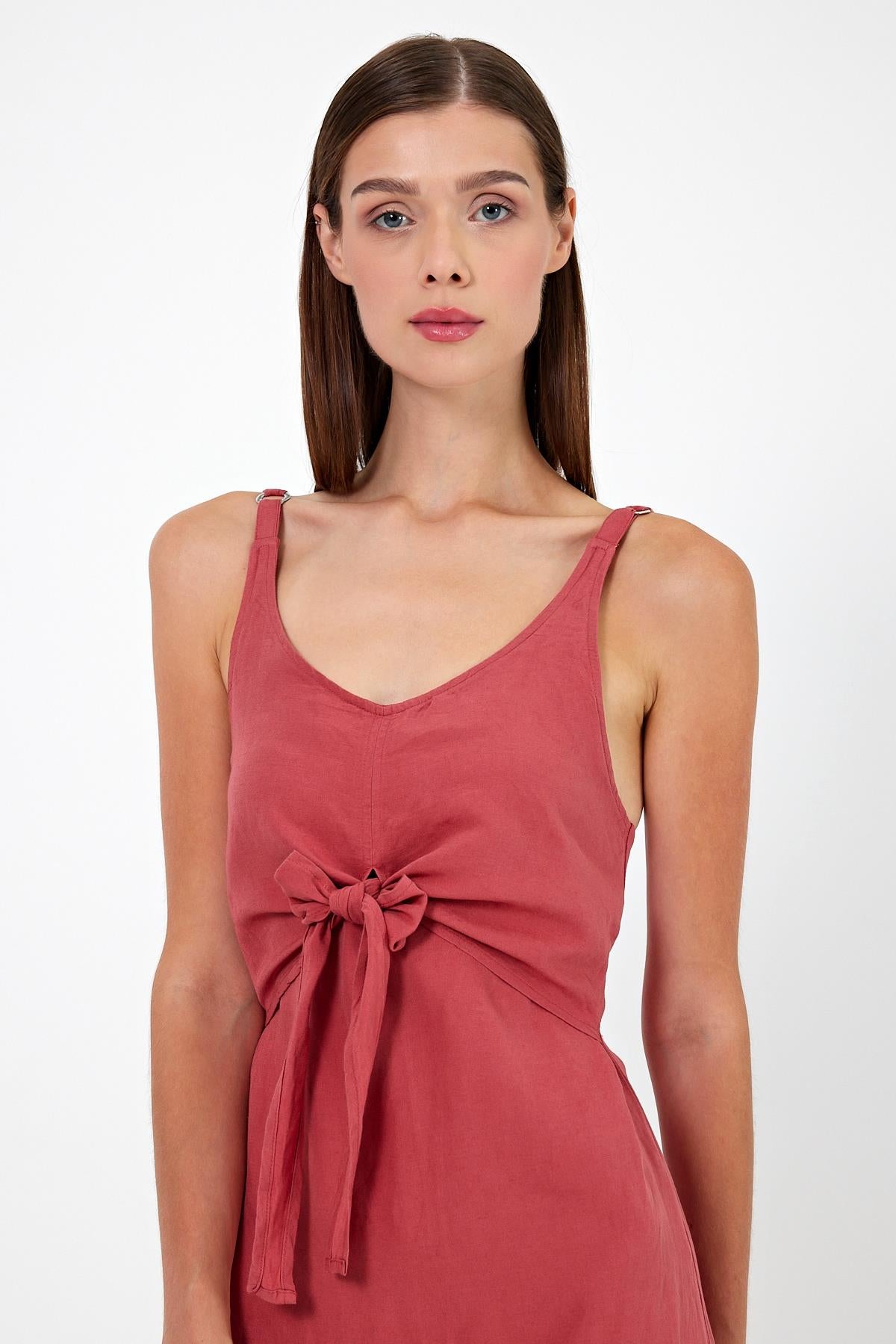 Kadın Önden Bağlamalı Keten Elbise - Gülkurusu