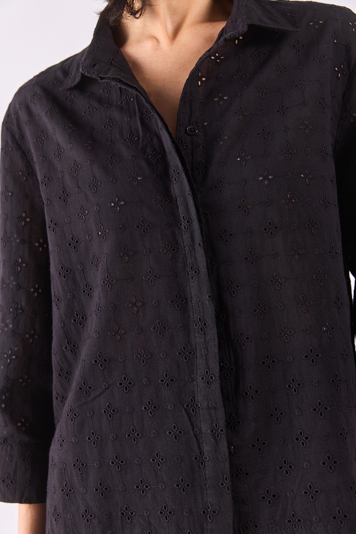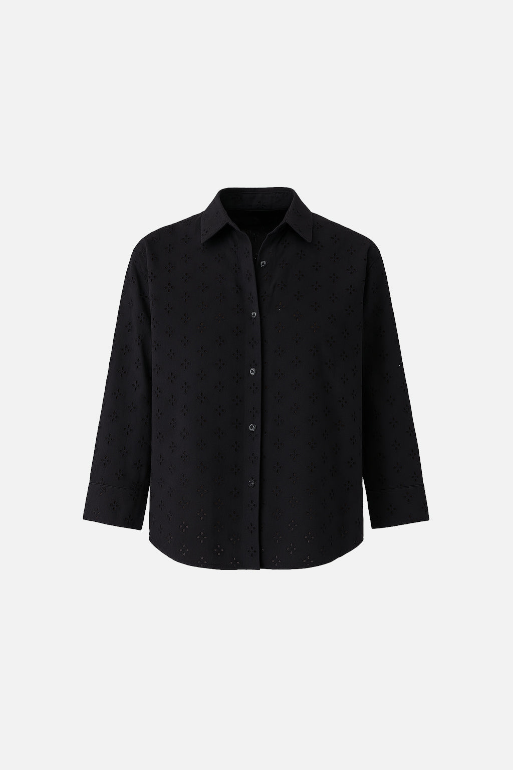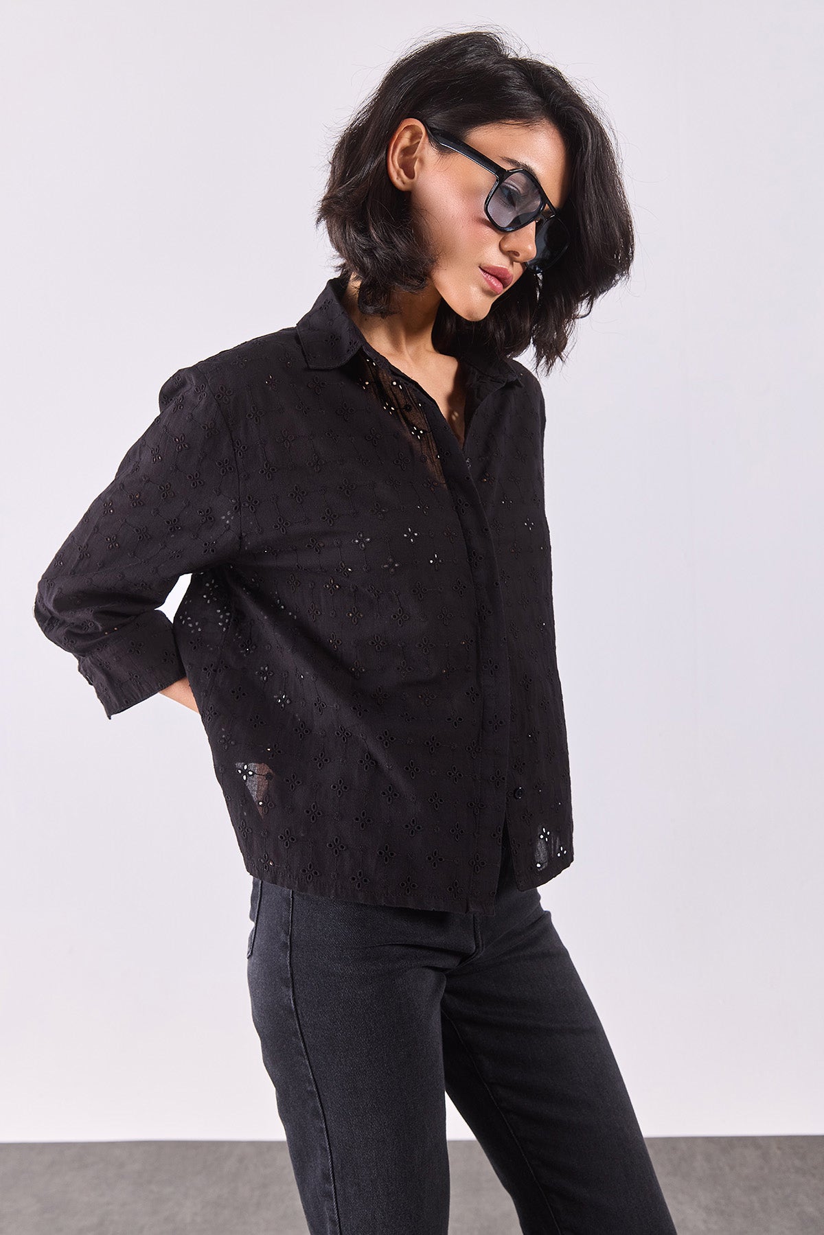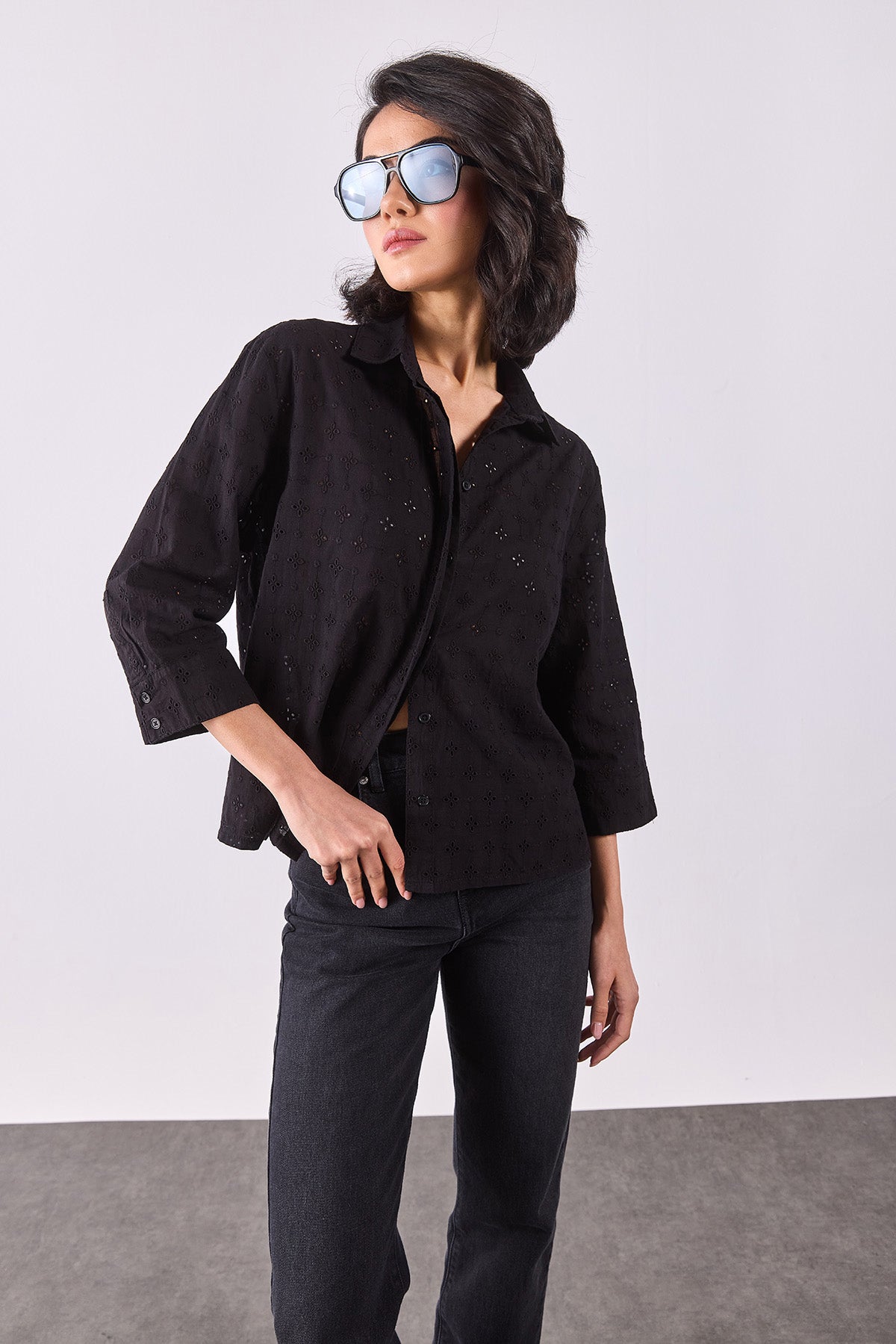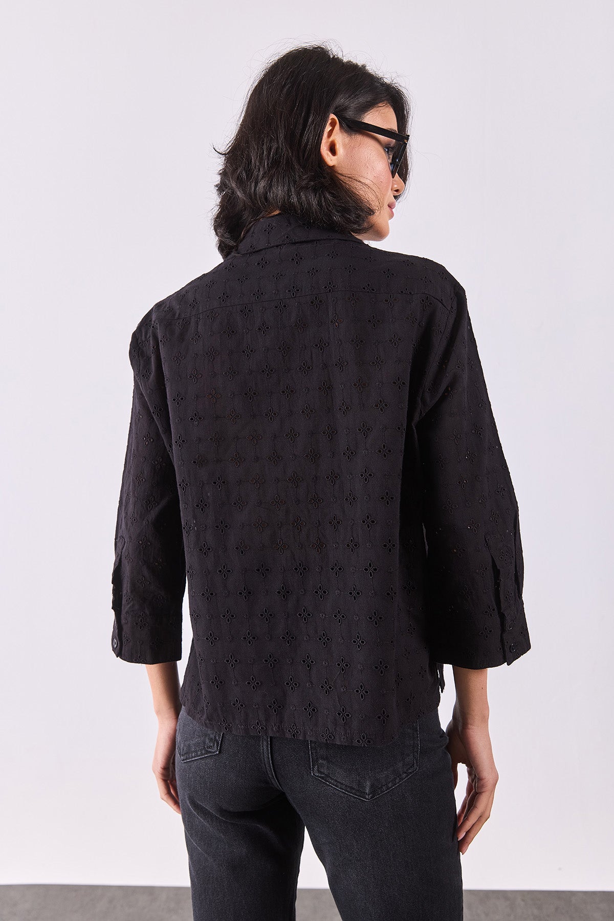 Kadın Önü Düğmeli İşlemeli Bluz - Siyah