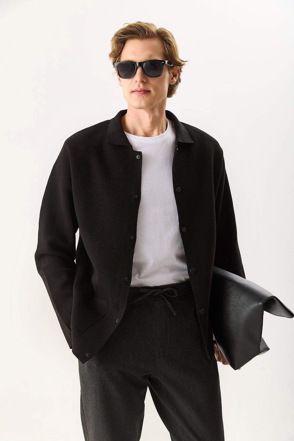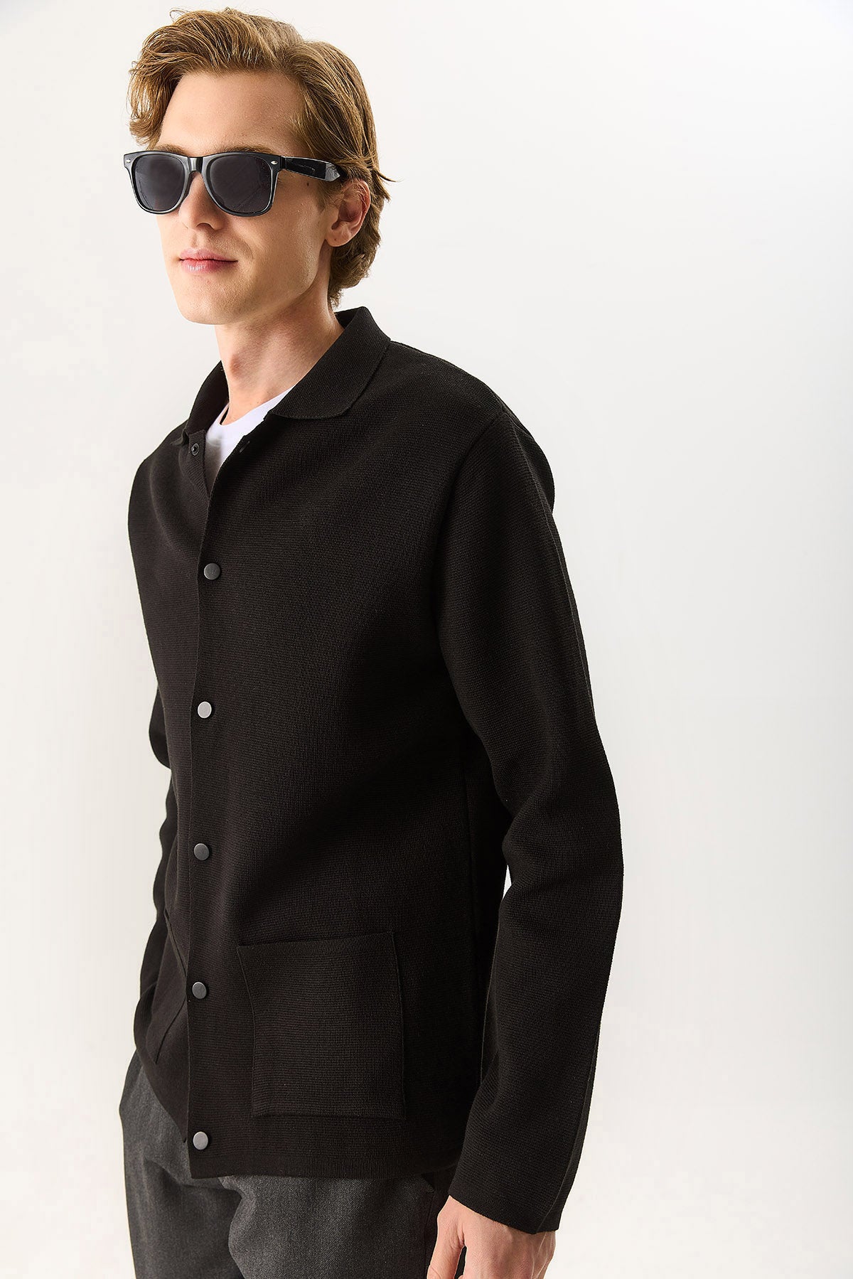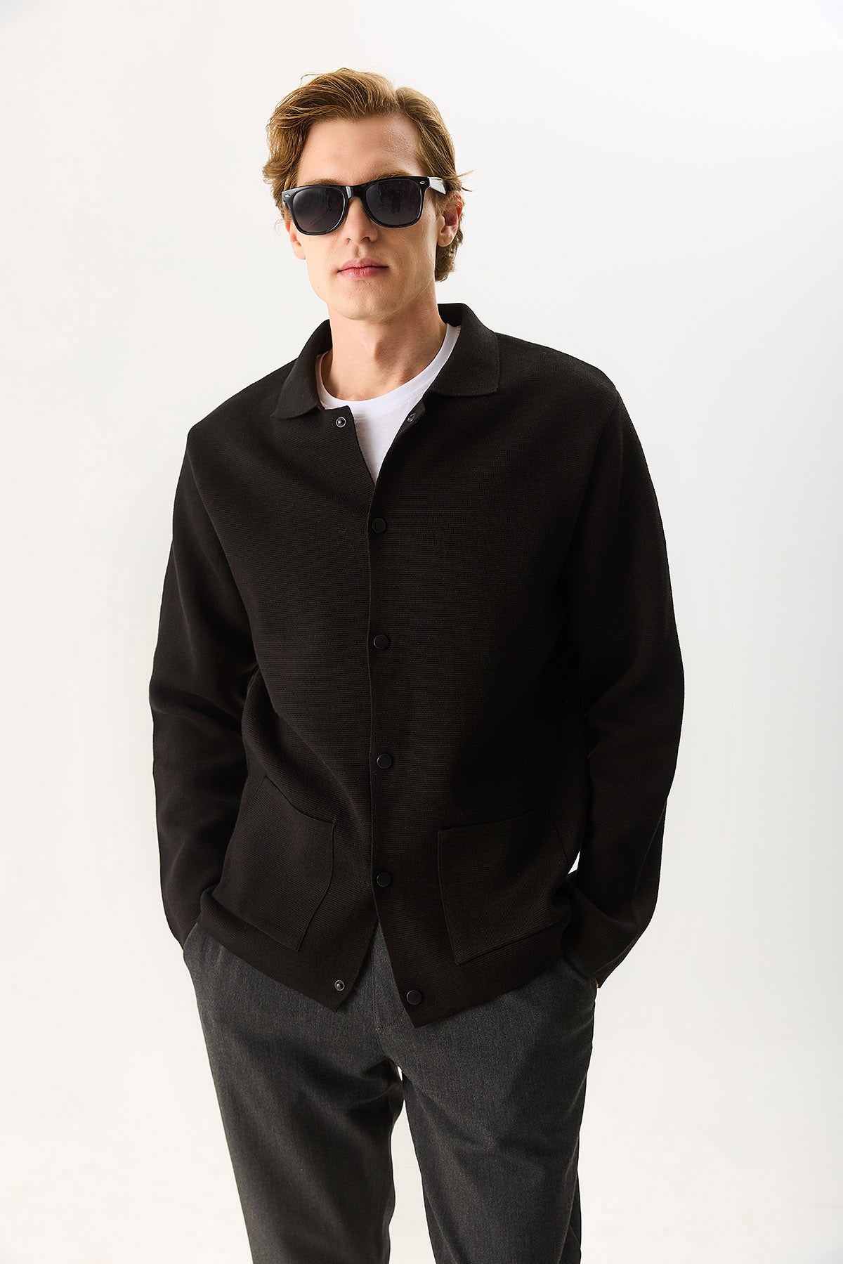 Erkek Önü Düğmeli Triko Hırka - Siyah