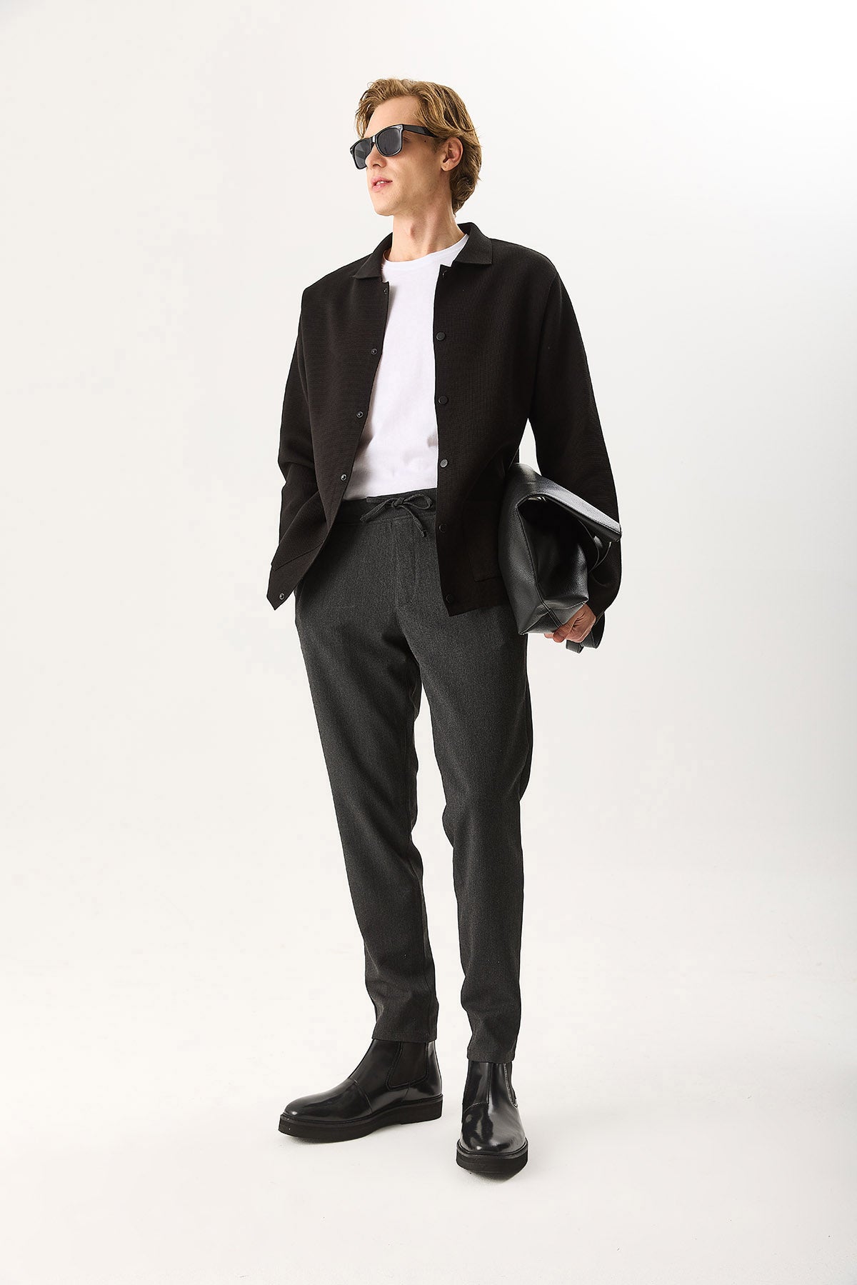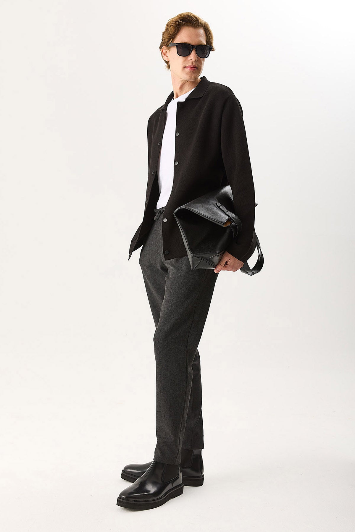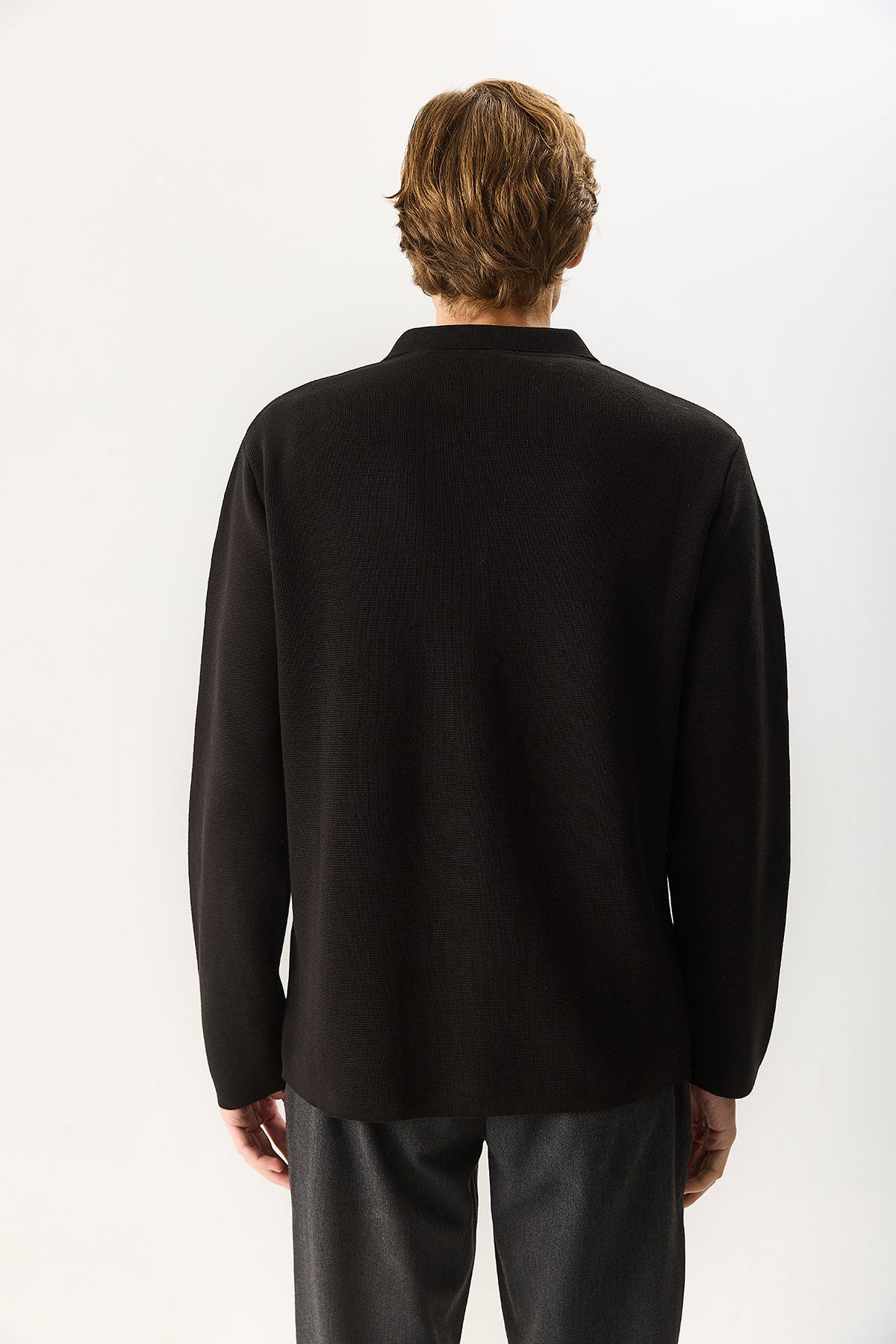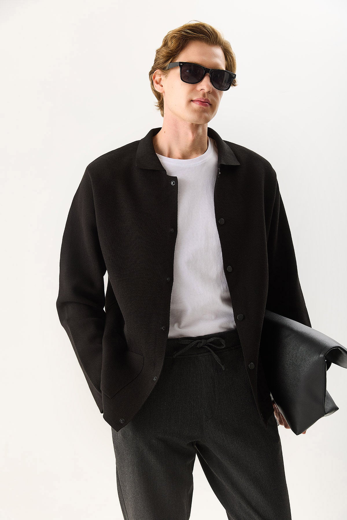 Erkek Önü Düğmeli Triko Hırka - Siyah