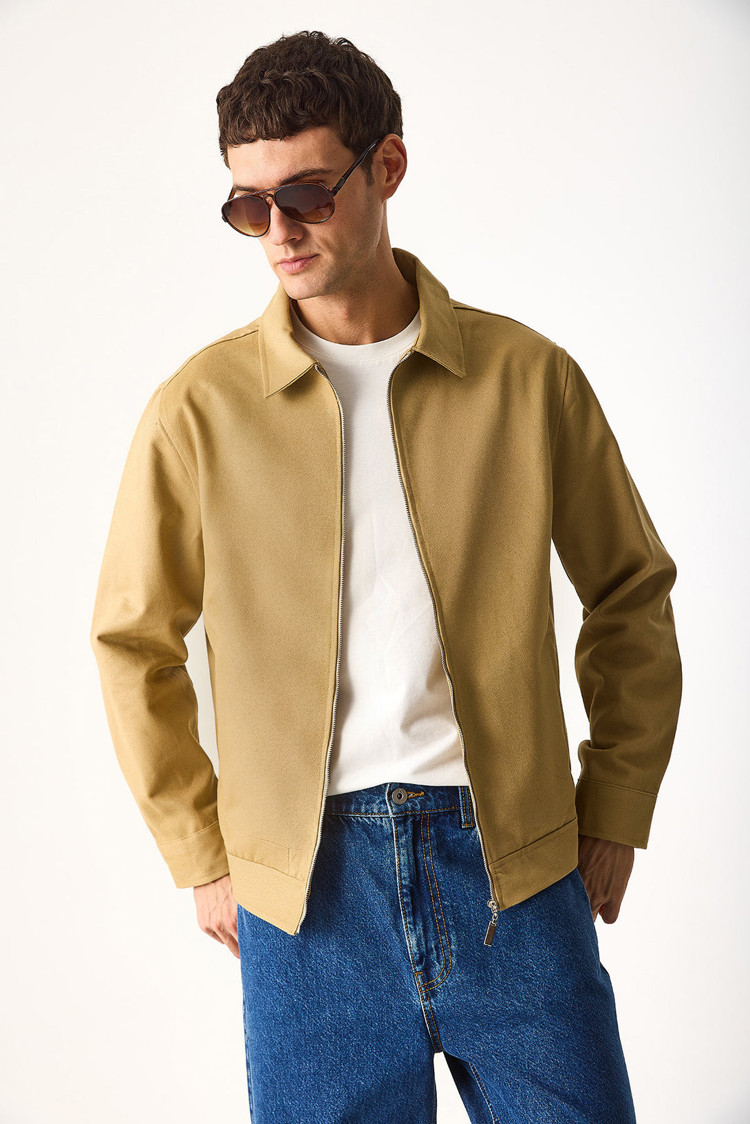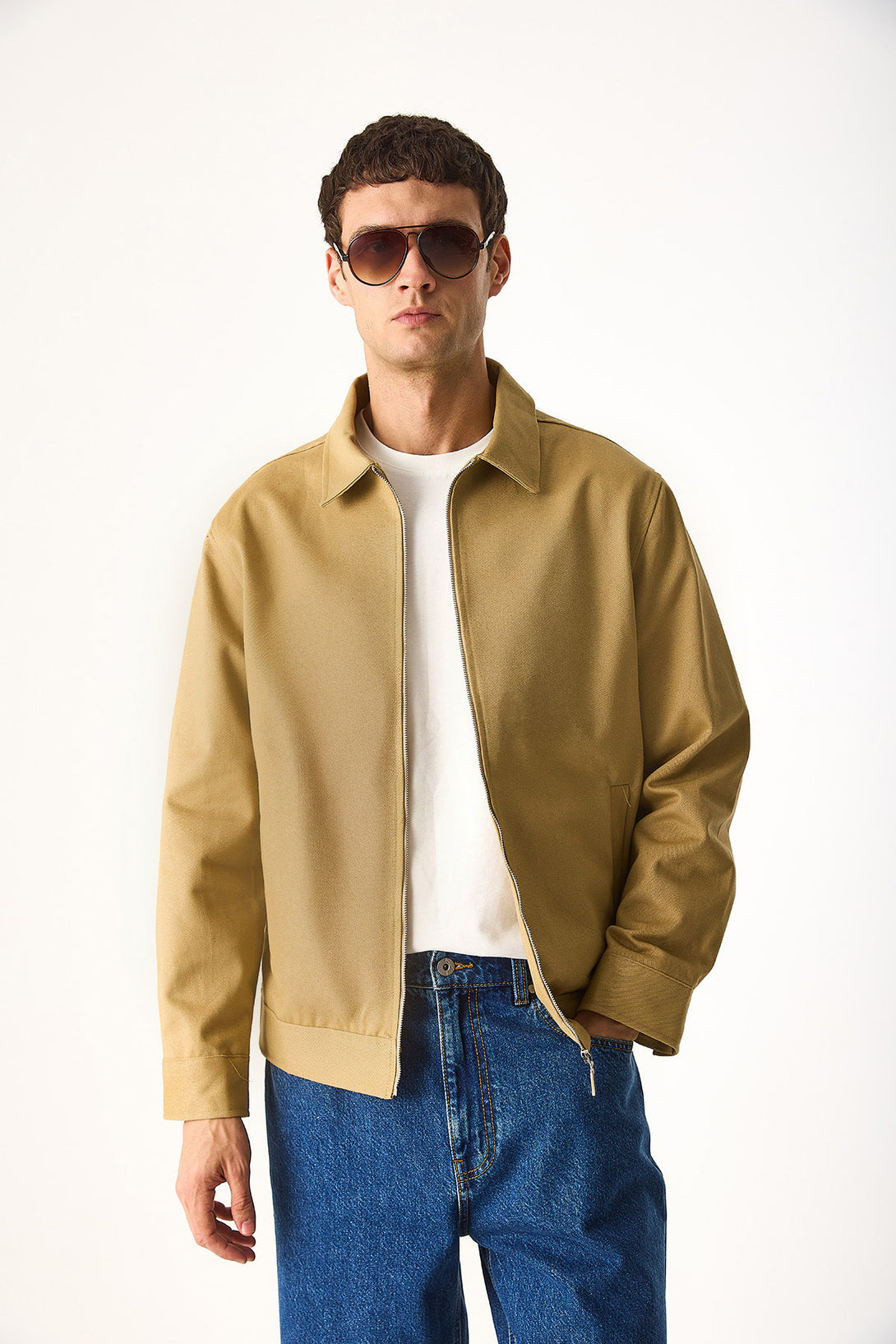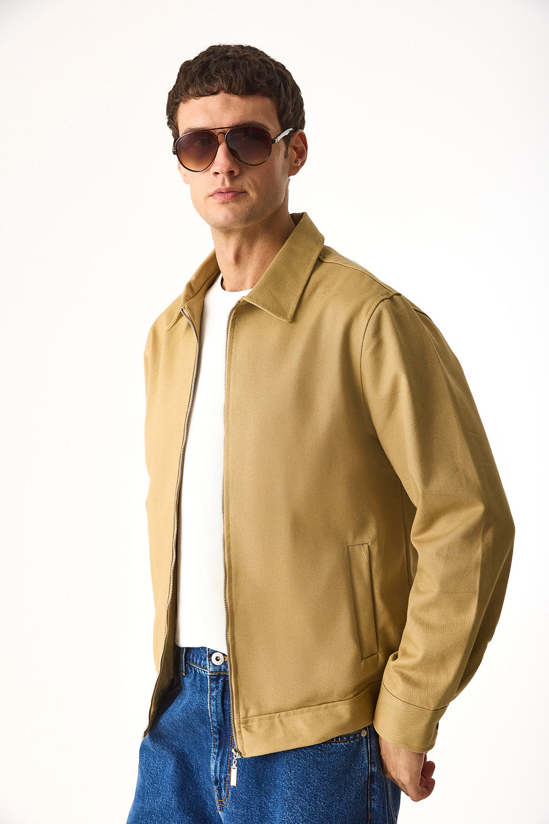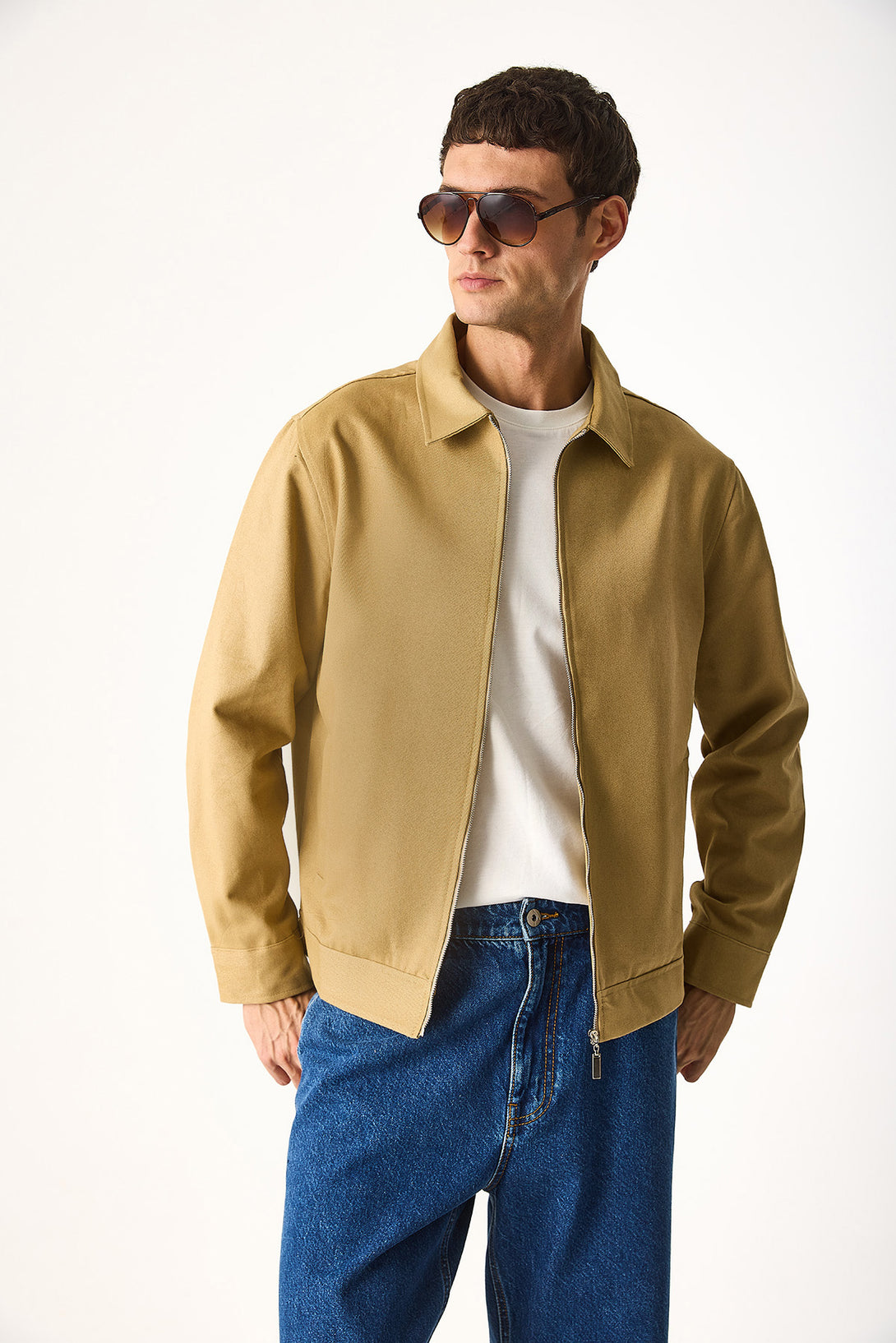 Önü Fermuarlı Regular Fit Kaşe %100 Pamuk Ceket