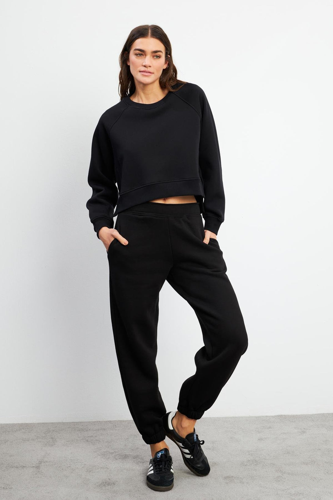 Kadın Önü Kısa Arkası Uzun Balon Kollu Sweatshirt - Siyah