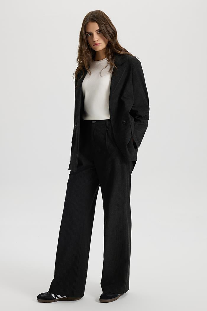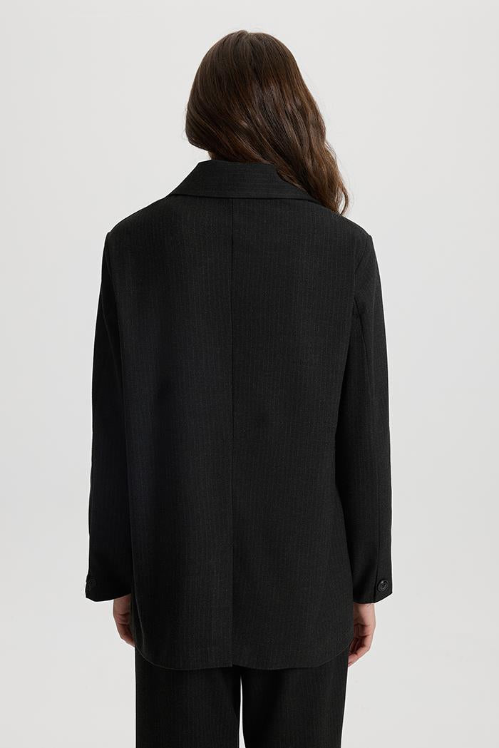 Kadın Oversize Çizgili Blazer Ceket - Siyah Çizgili