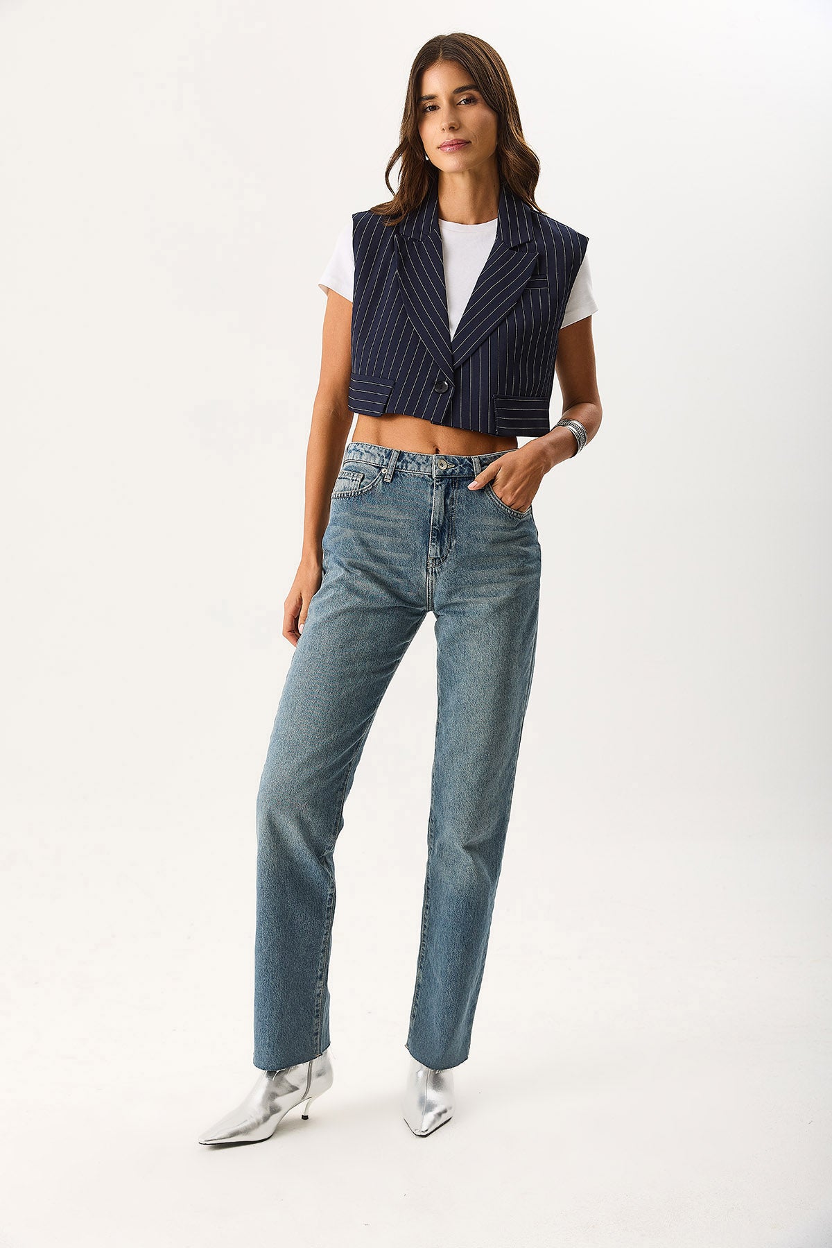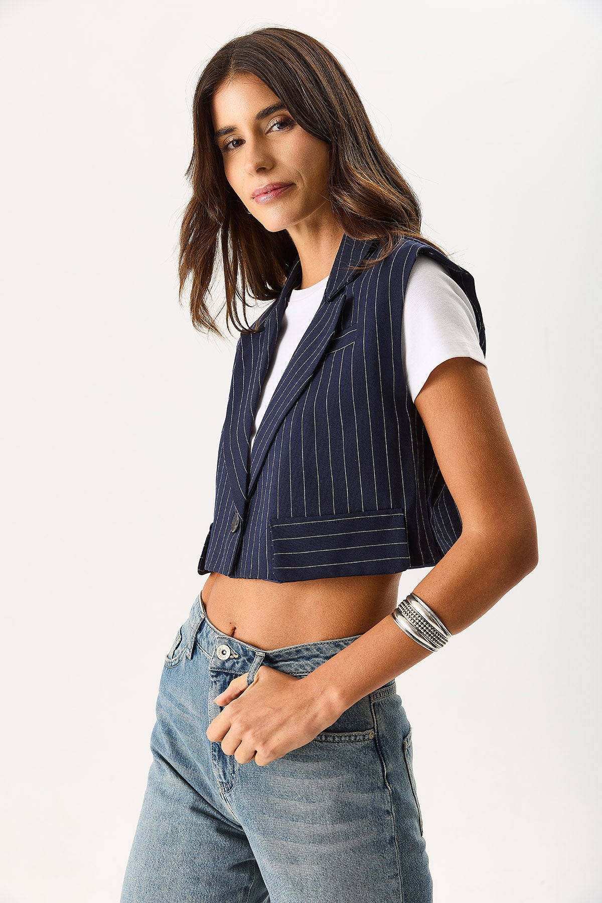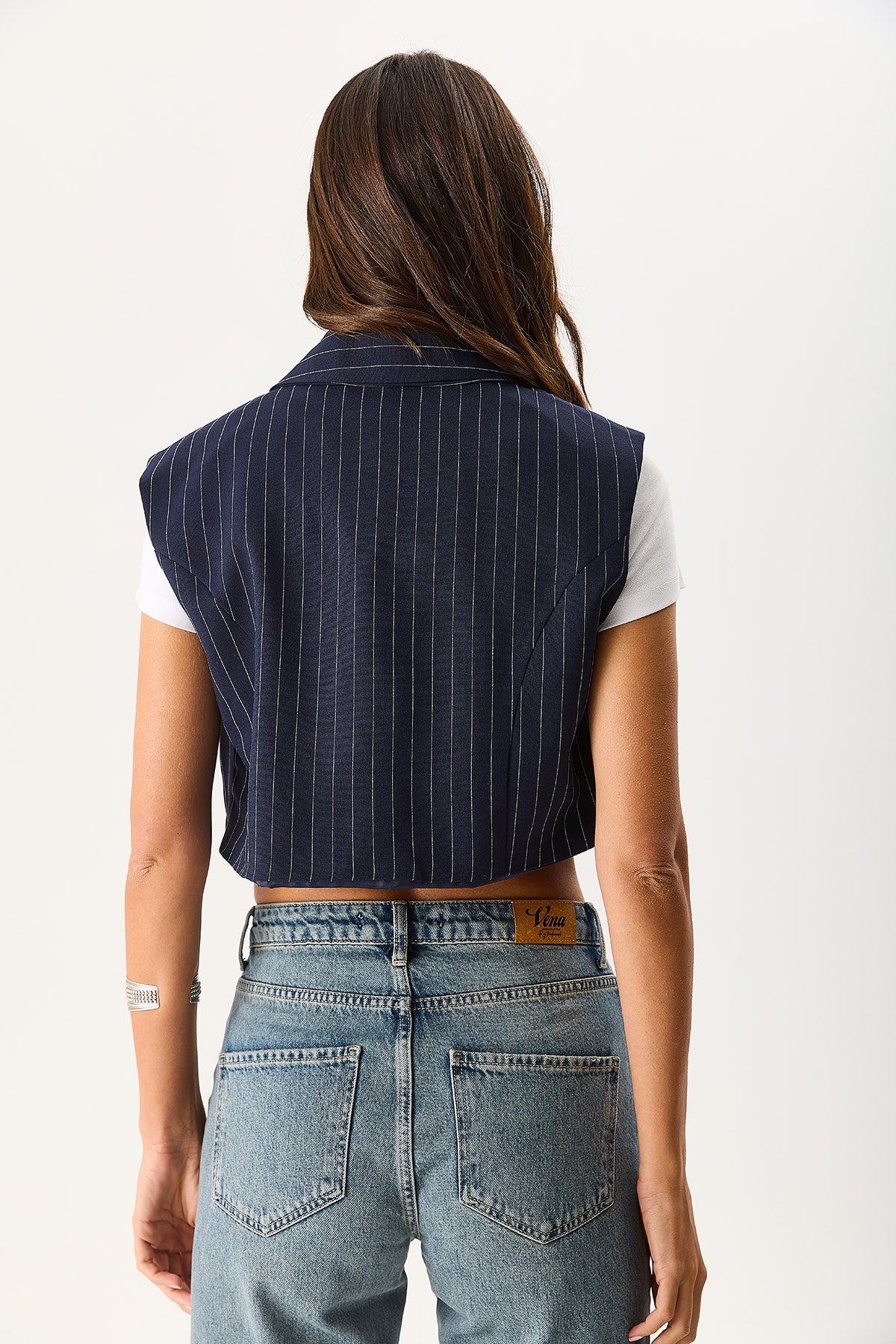 Kadın Oversize Çizgili Yelek - LACİVERT-BEYAZ