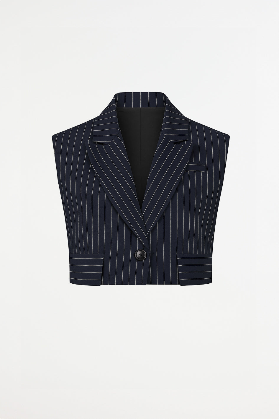 Kadın Oversize Çizgili Yelek - Lacivert-Beyaz