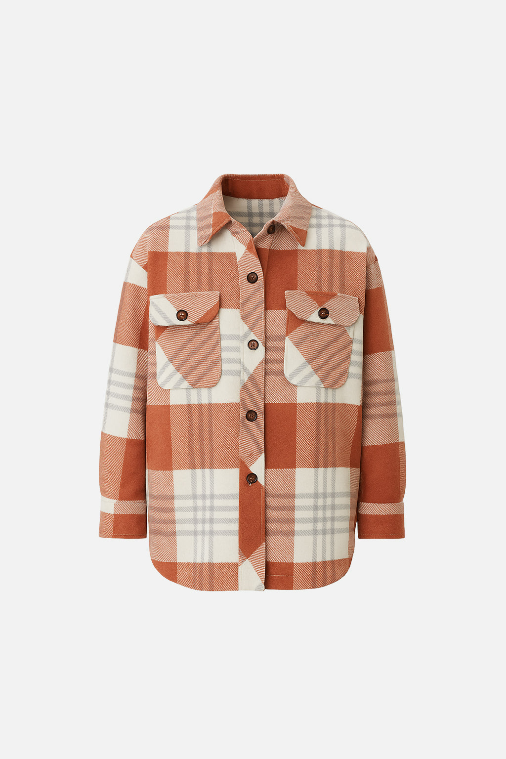 Kadın Oversize Ekose Gömlek Ceket - KIRMIZI-SİYAH