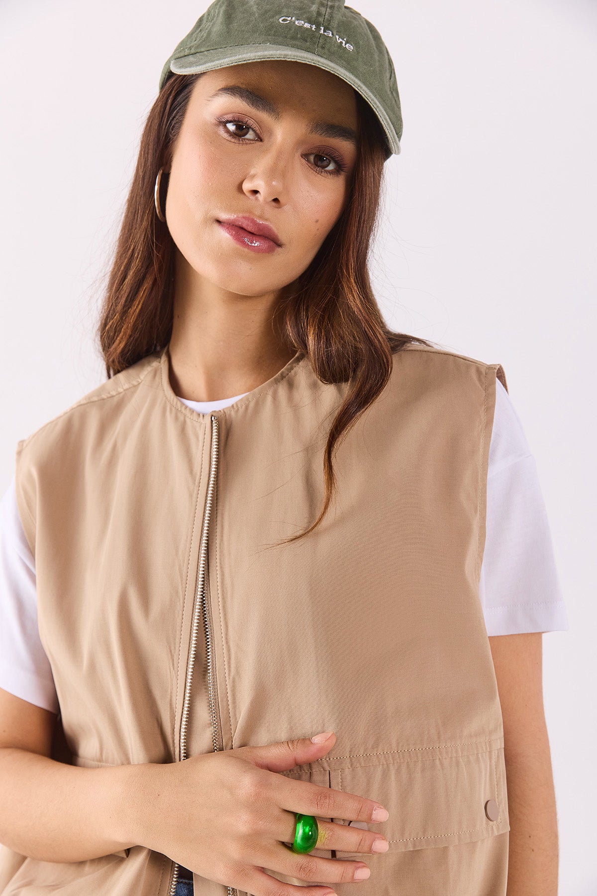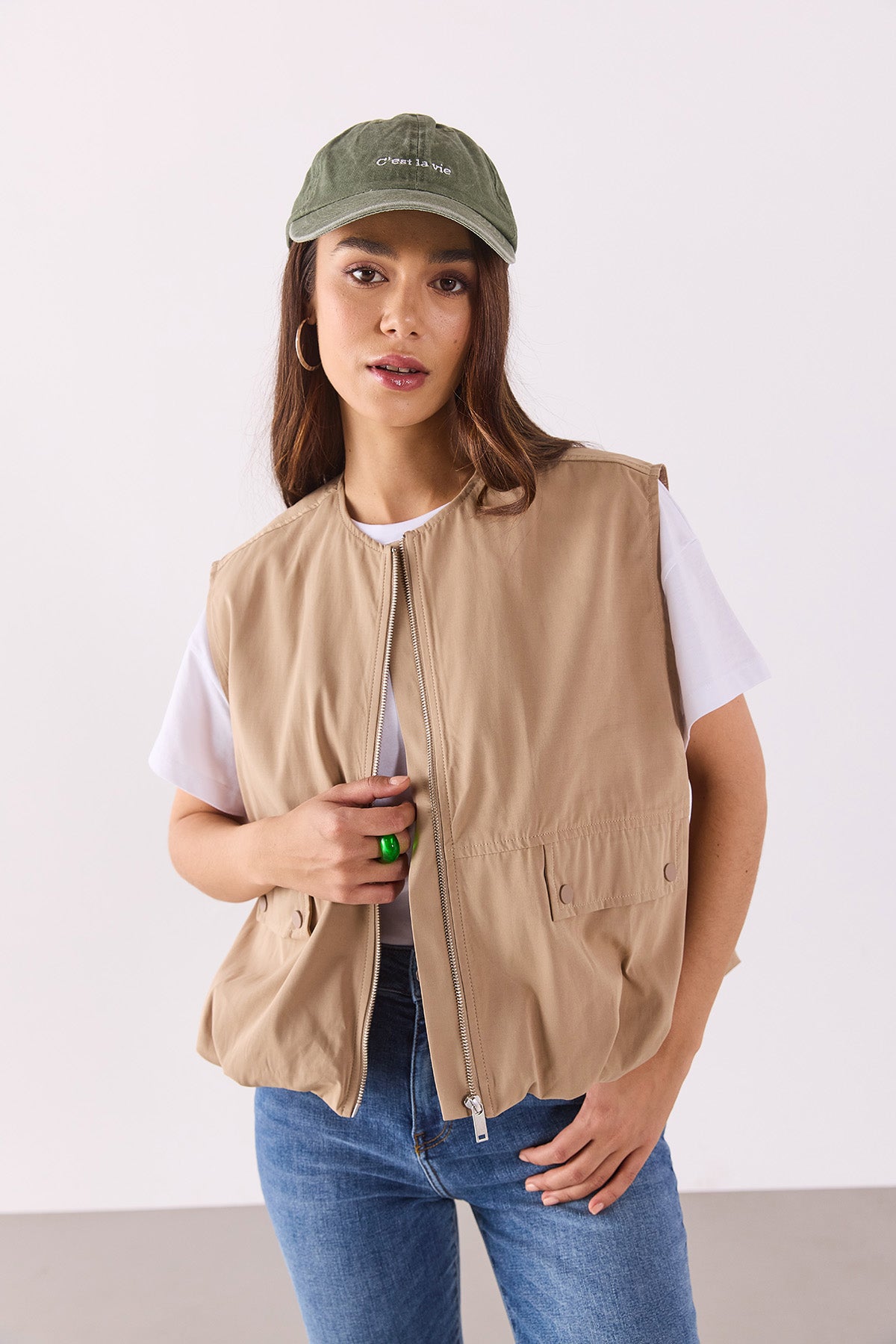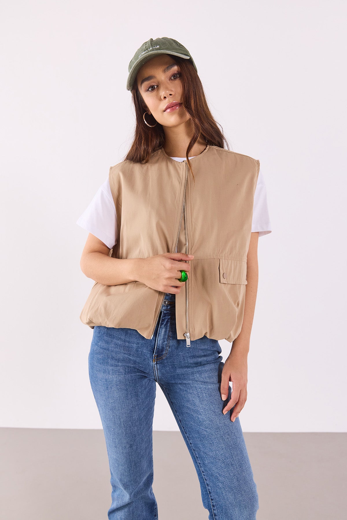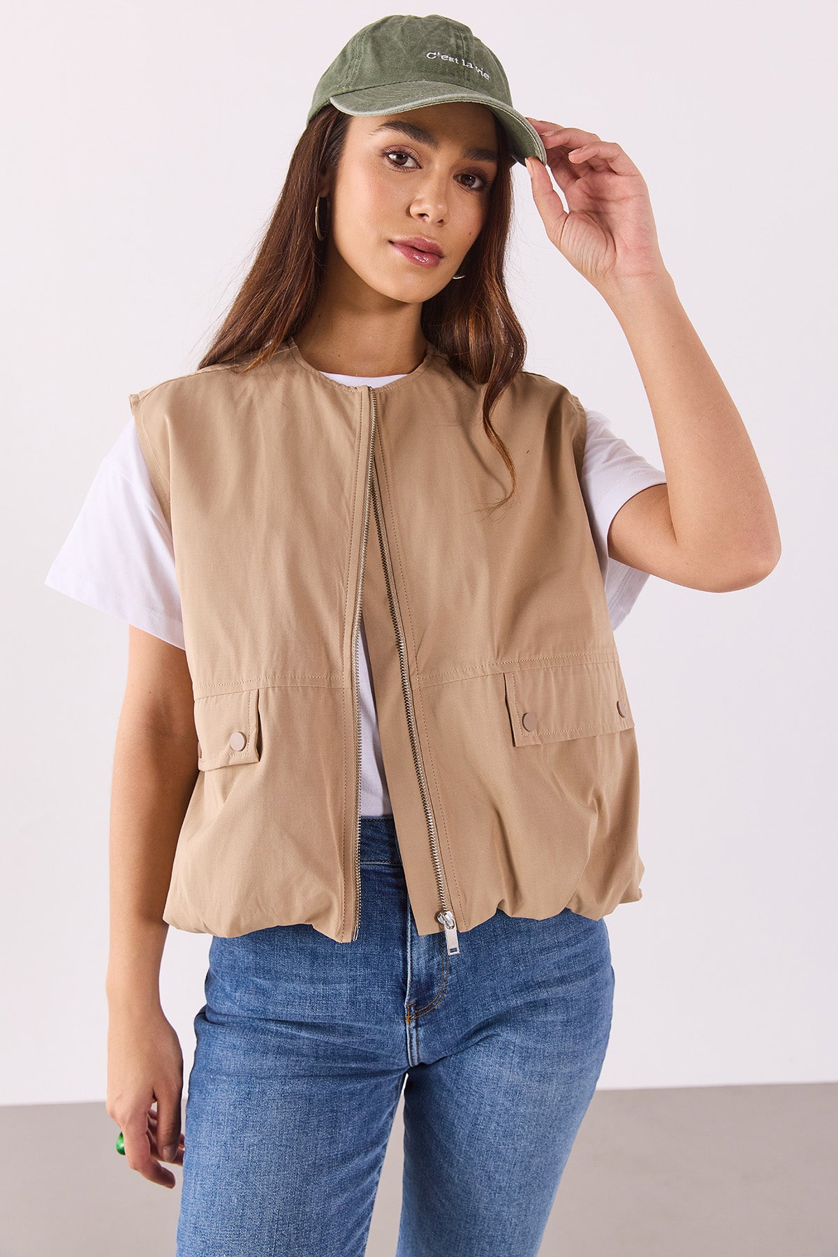Kadın Paraşüt Bomber Yelek - Taba