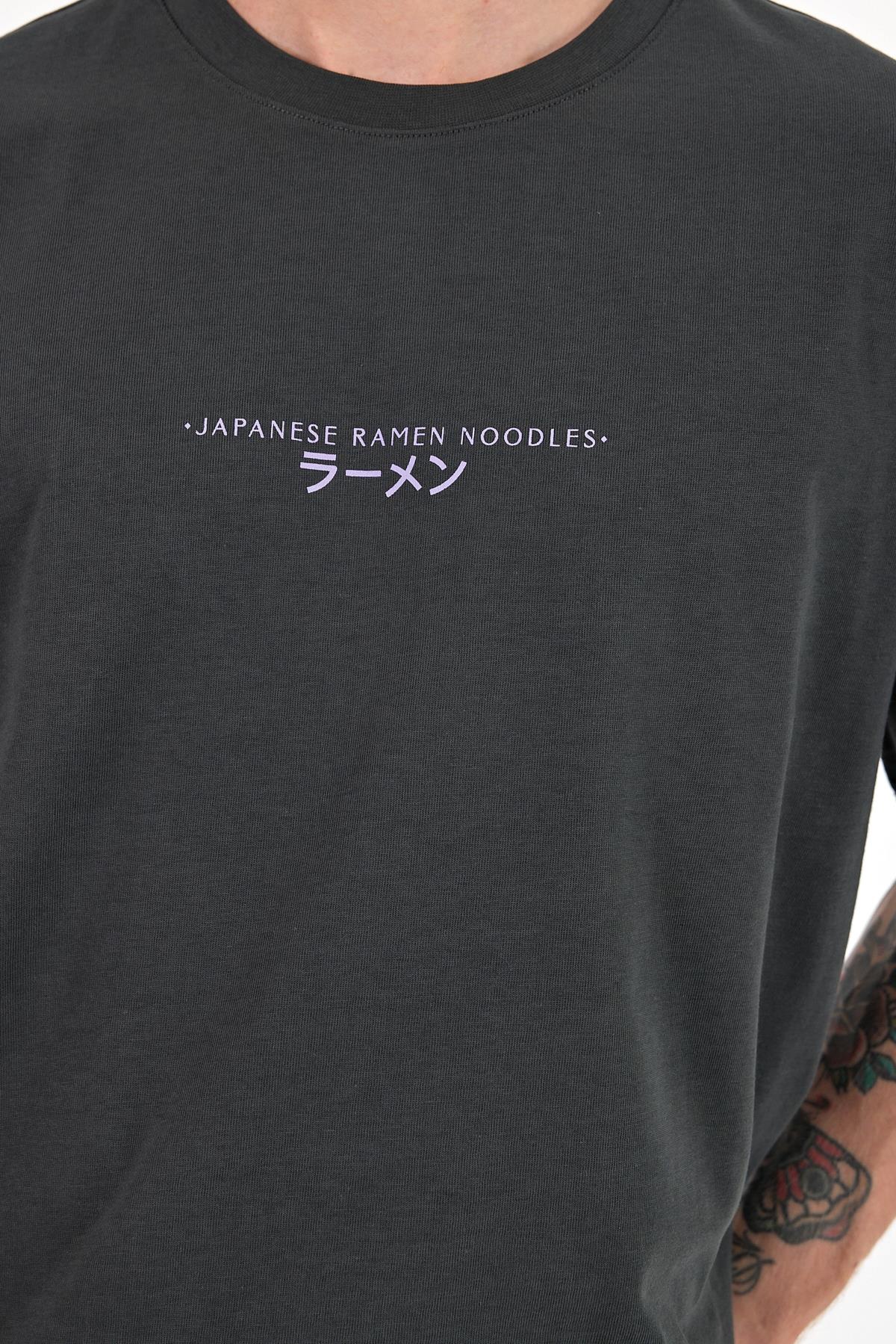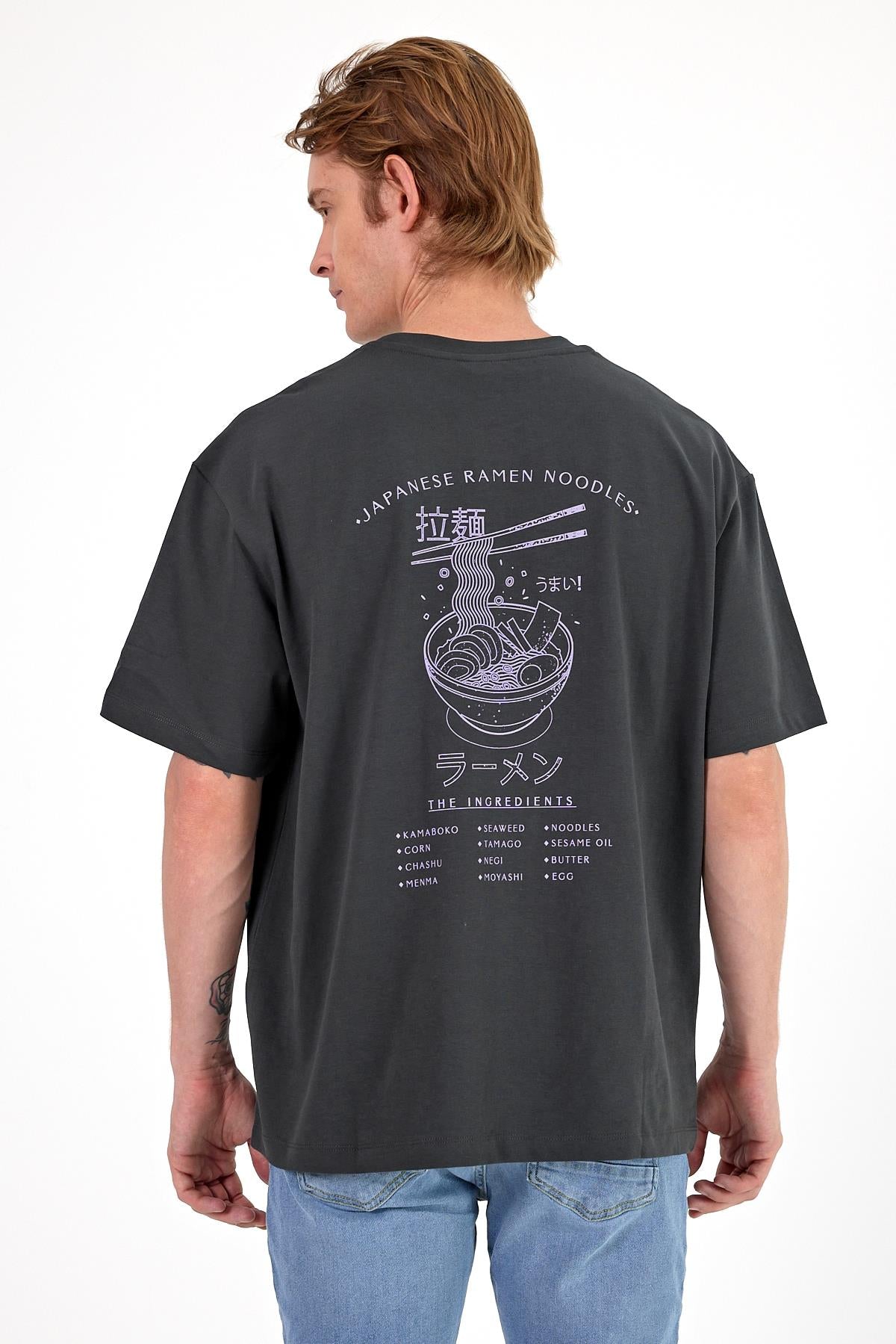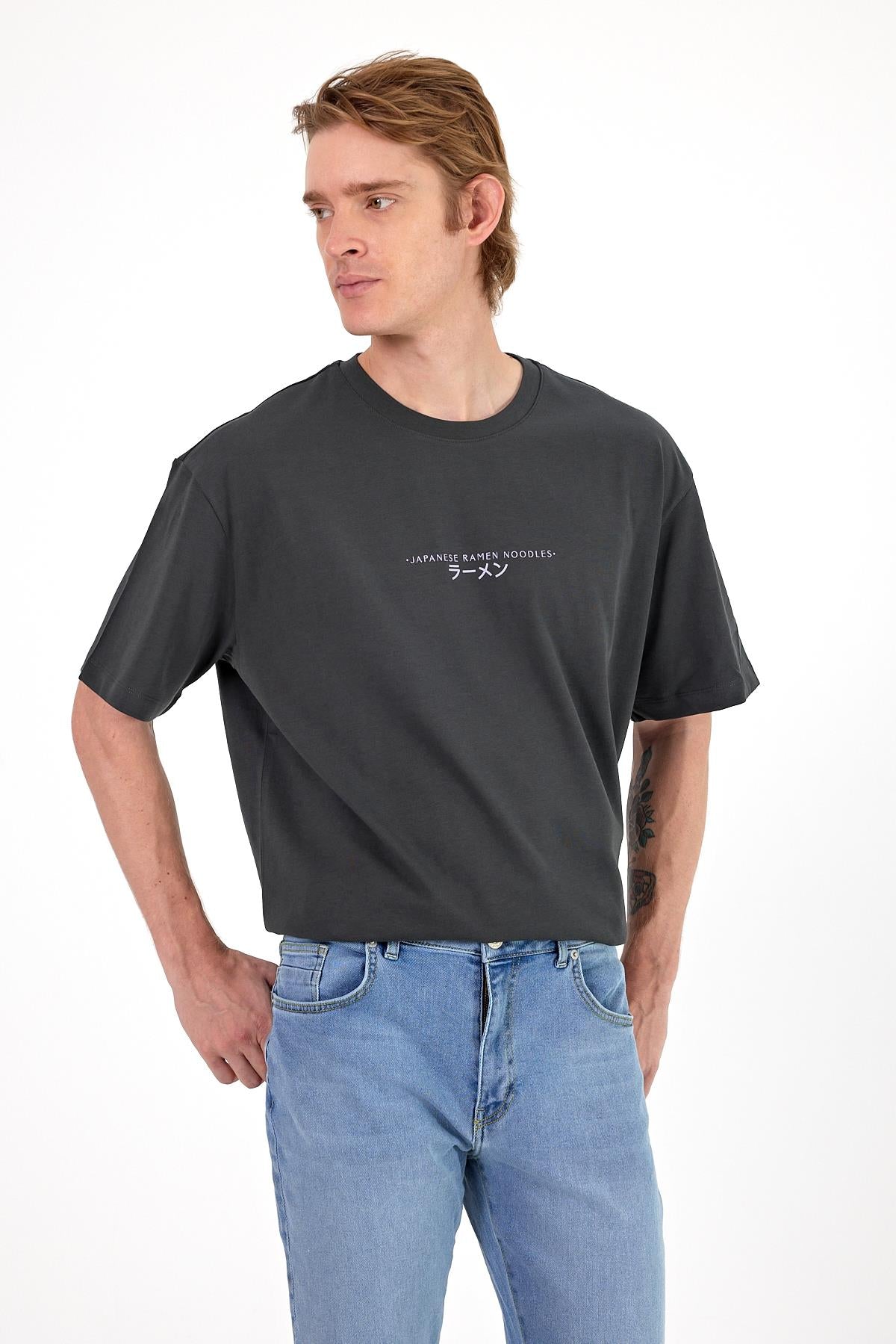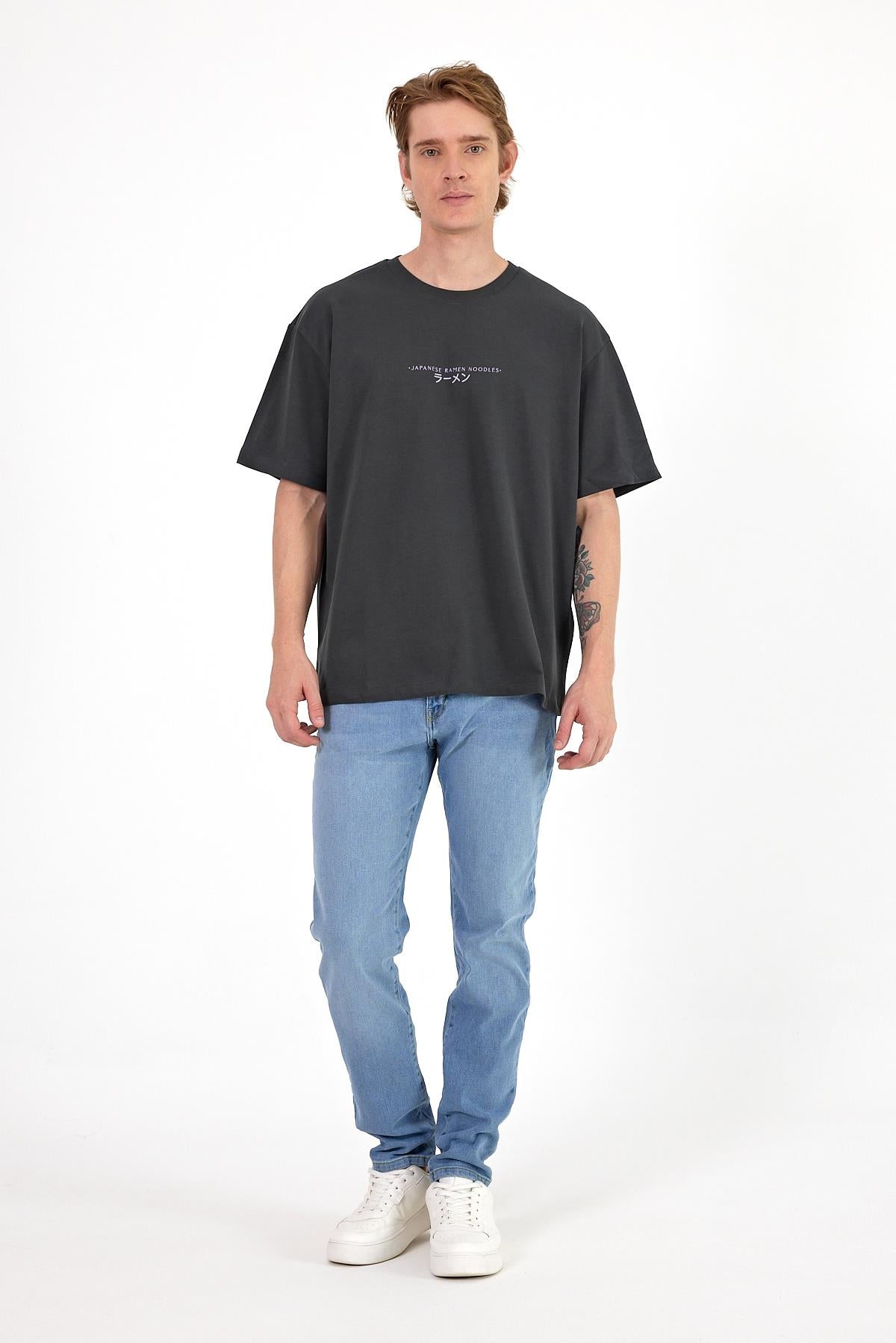 Erkek Paul Sırtı Baskılı Bisiklet Yaka Regular Fit Tişört %100 Pamuk - Antrasit