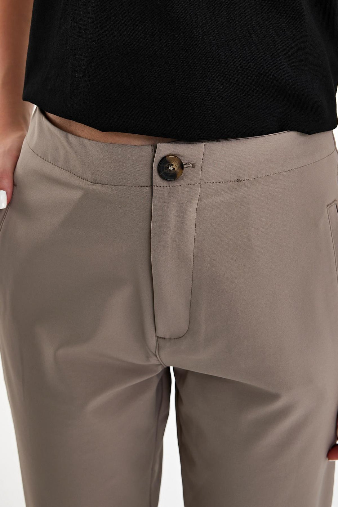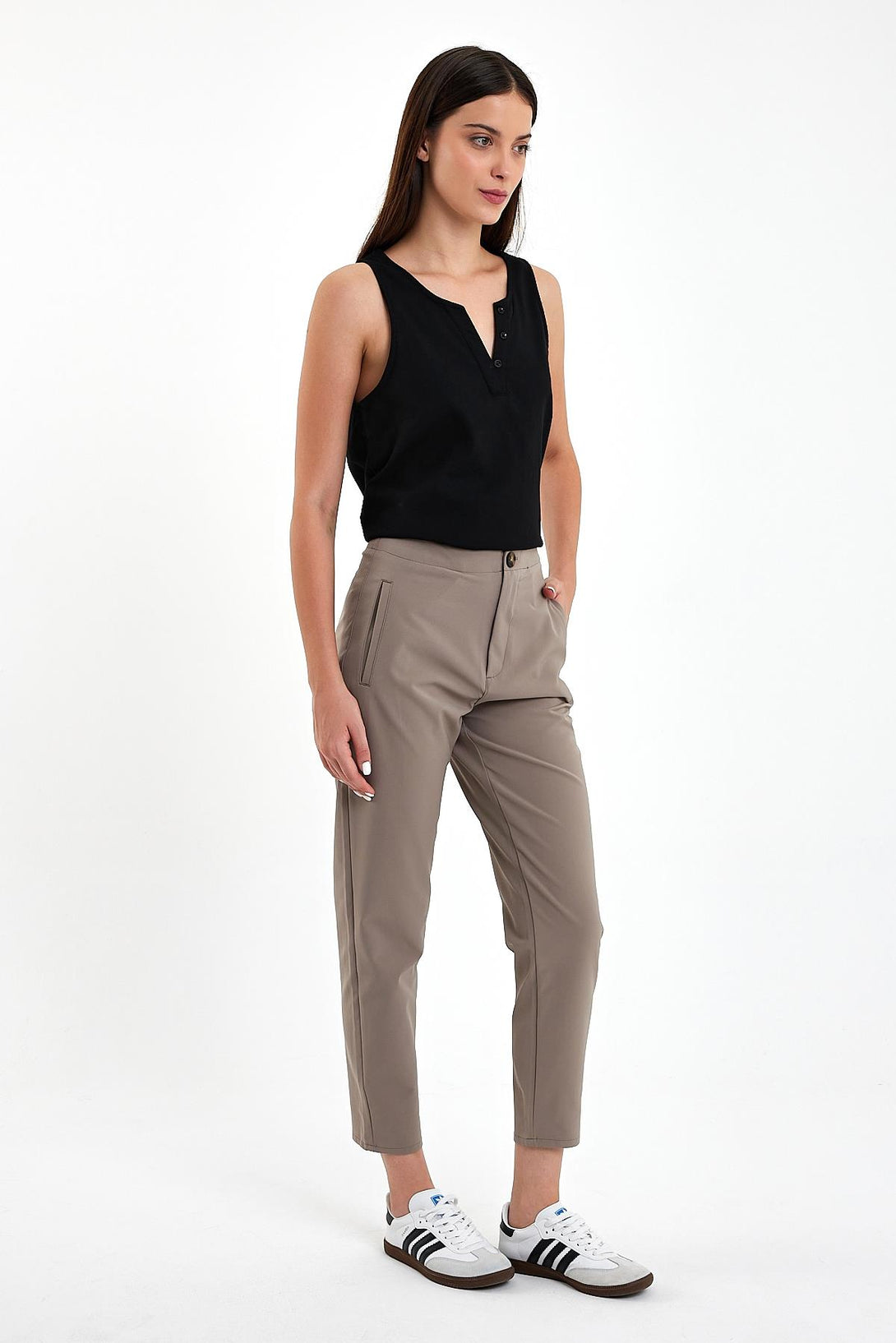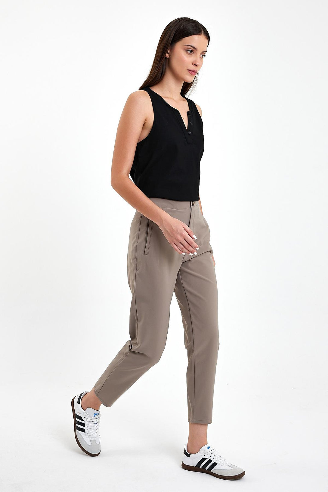 Kadın Paula Vizon Paçası Detaylı Teknik Chino Pantolon