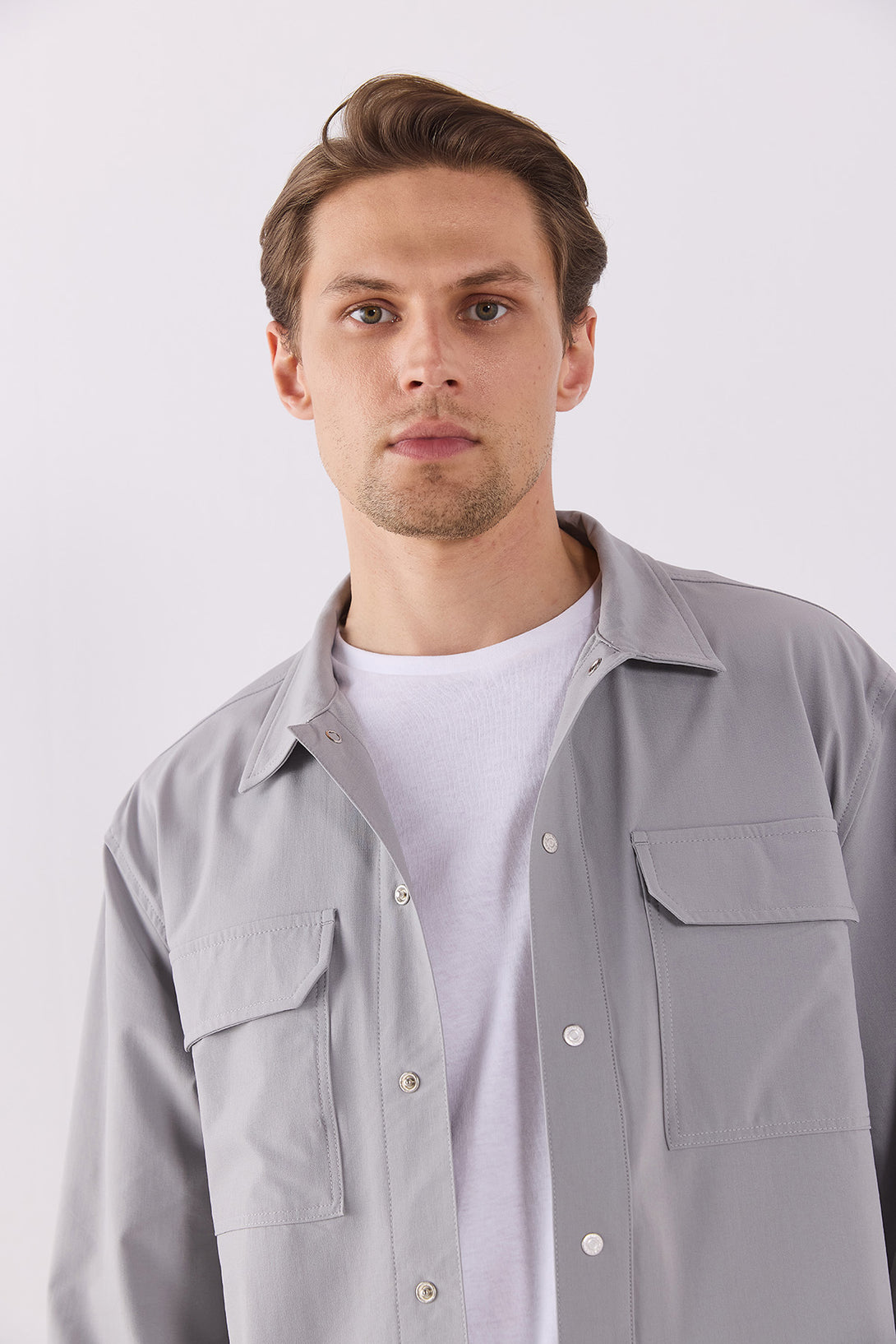 Buz gri tonuyla fonksiyonel şıklığı bir araya getiren Pedro Paraşüt Ceket, %92 poliamid ve %8 elastan karışımı tasarımıyla hem esnek hem hafif bir kullanım sunar. Makinede 30?°C’de yıkanabilen, ütü gerektirmeyen yapısıyla kullanım kolaylığı sağlarken, modern kesimi günlük ve hafif dış mekan kombinlerine ideal uyum sağlar.