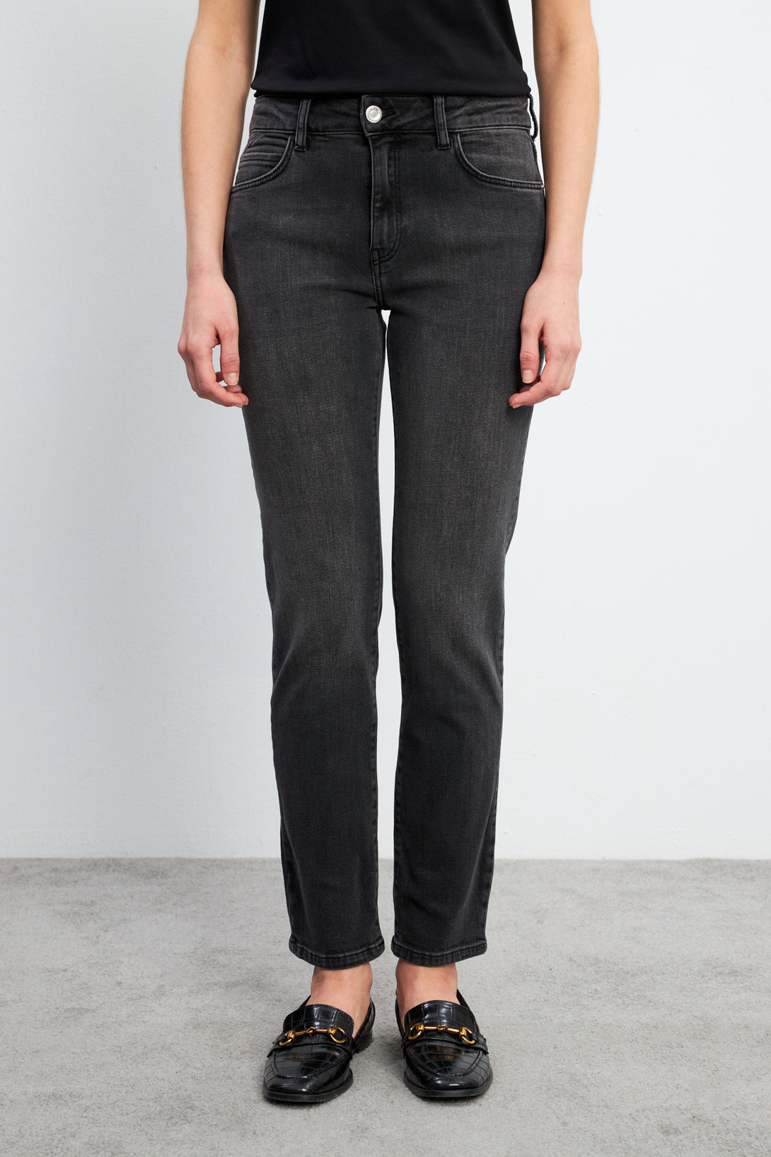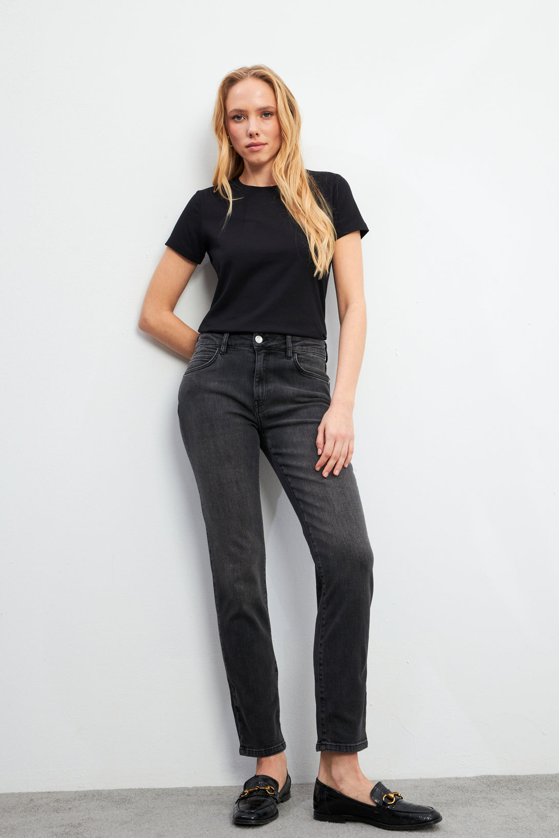Petra, siyah renkli kadın boyfriend jean pantolon, %98,7 pamuk ve %1,3 elastan karışımıyla üretilmiştir. Boyfriend kesim, orta bel ve daralan paça detaylarına sahiptir. Mankenin ölçüleri: Boy 178 cm, Bel 62 cm, Göğüs 90 cm, Kalça 89 cm. Ürün bedeni: 26 Boy: 28. Makine yıkamaya uygundur (Ilık - 40C veya 105F). Normal ısıda ütülenebilir. Şıklığı ve rahatlığı bir araya getiren Petra boyfriend jean, modern stilinizi tamamlar!