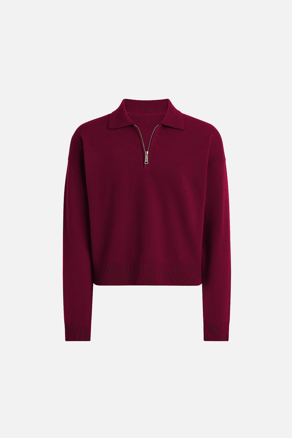 Kadın Polo Yakalı Fermuarlı Triko - Bordo