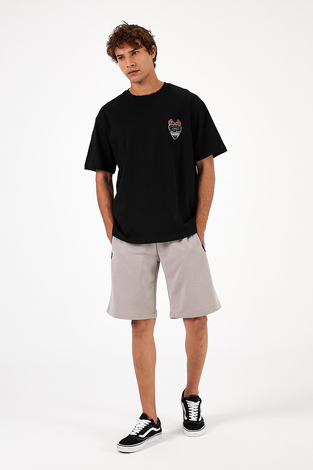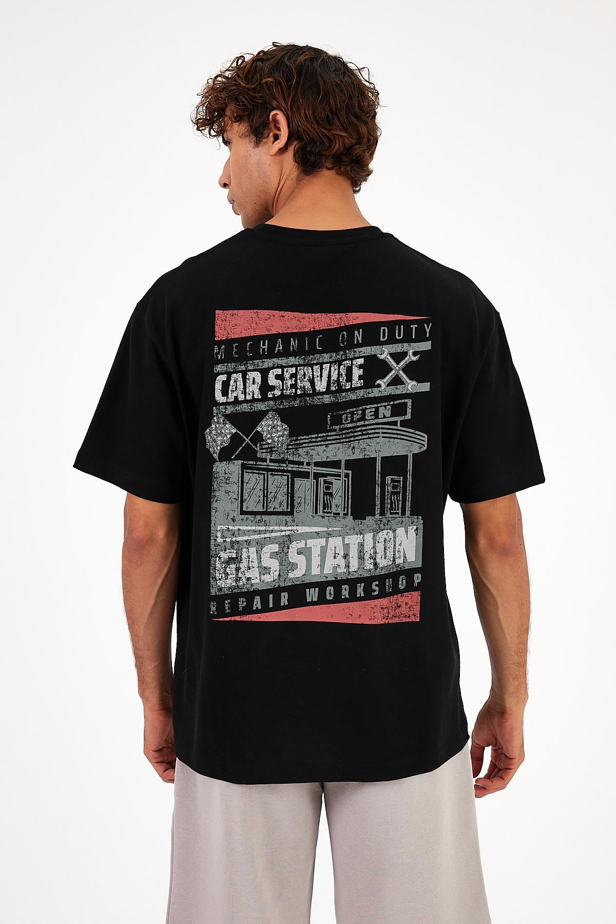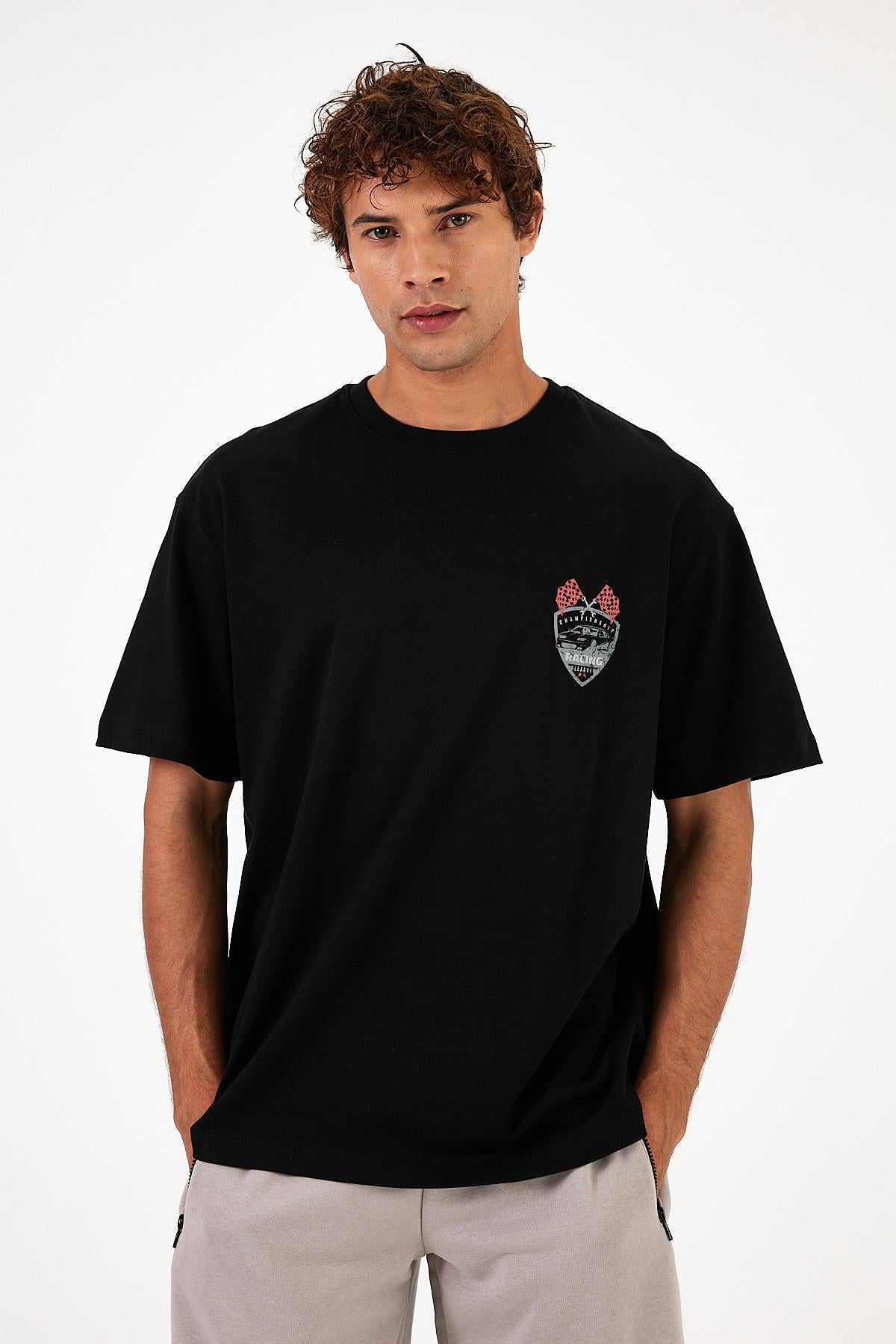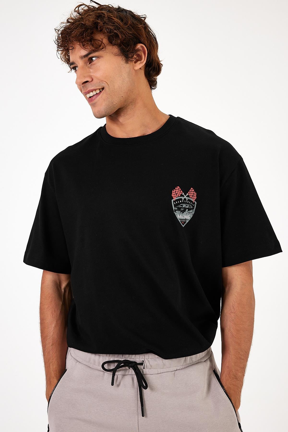 Erkek Race Sırtı Baskılı Bisiklet Yaka Regular Fit Tişört %100 Pamuk - Siyah