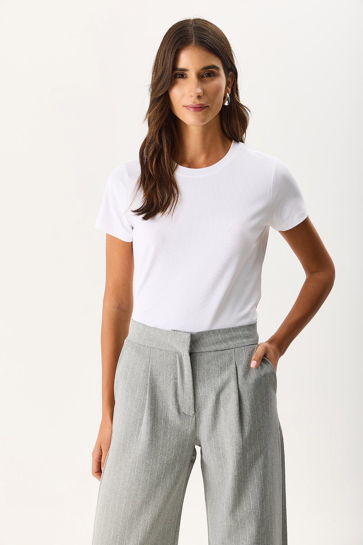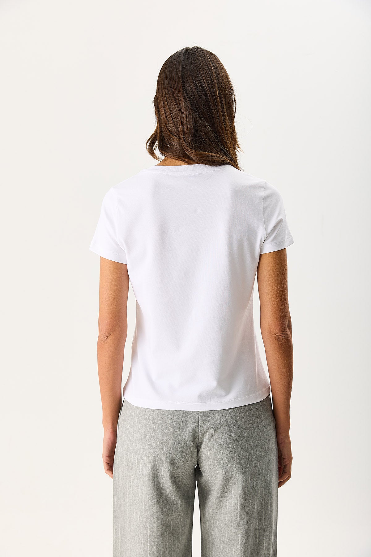 Kadın Rachel Bisiklet Yaka Slim Fit Basic Tişört - Beyaz