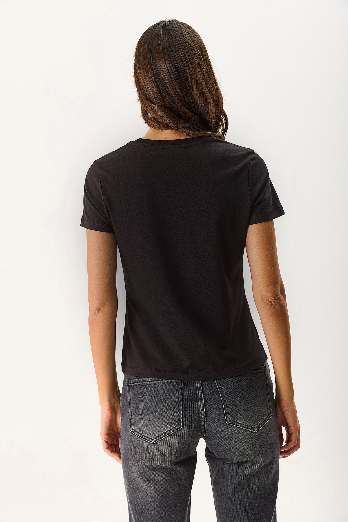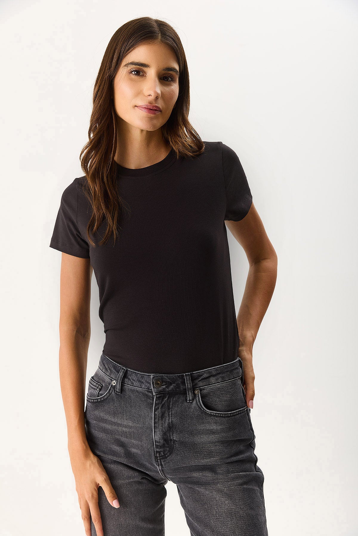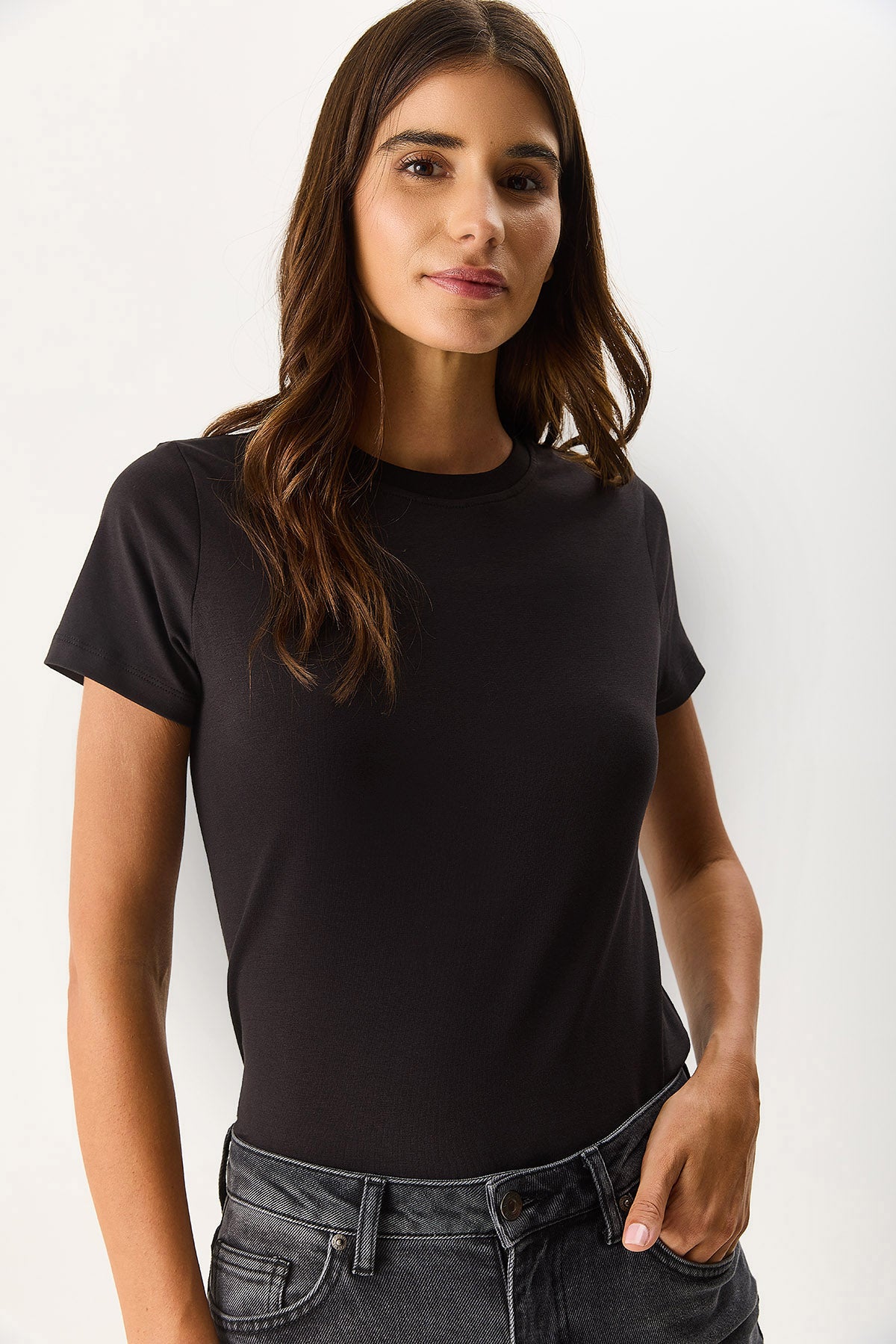 Kadın Rachel Bisiklet Yaka Slim Fit Basic Tişört - Siyah