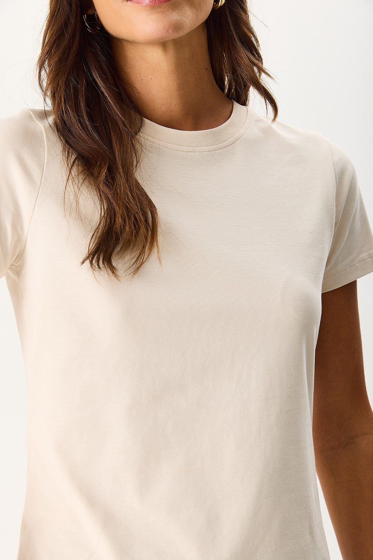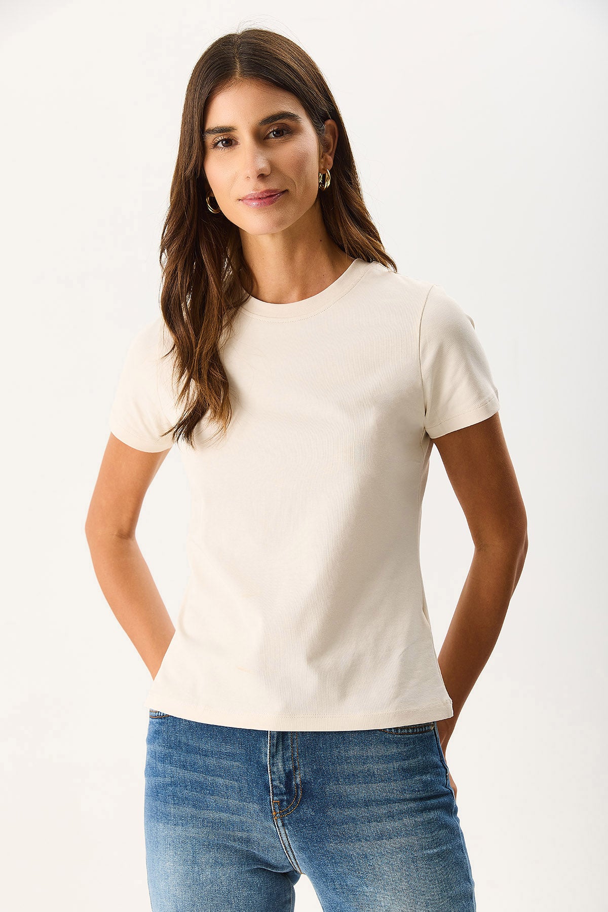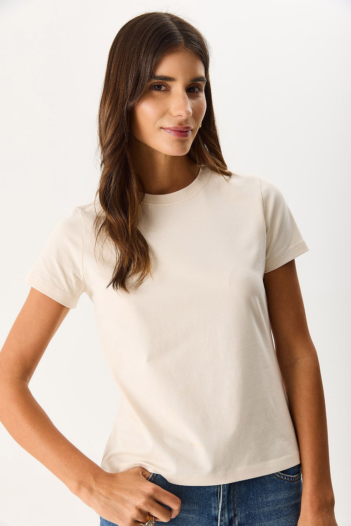Kadın Rachel Bisiklet Yaka Slim Fit Basic Tişört - Taş