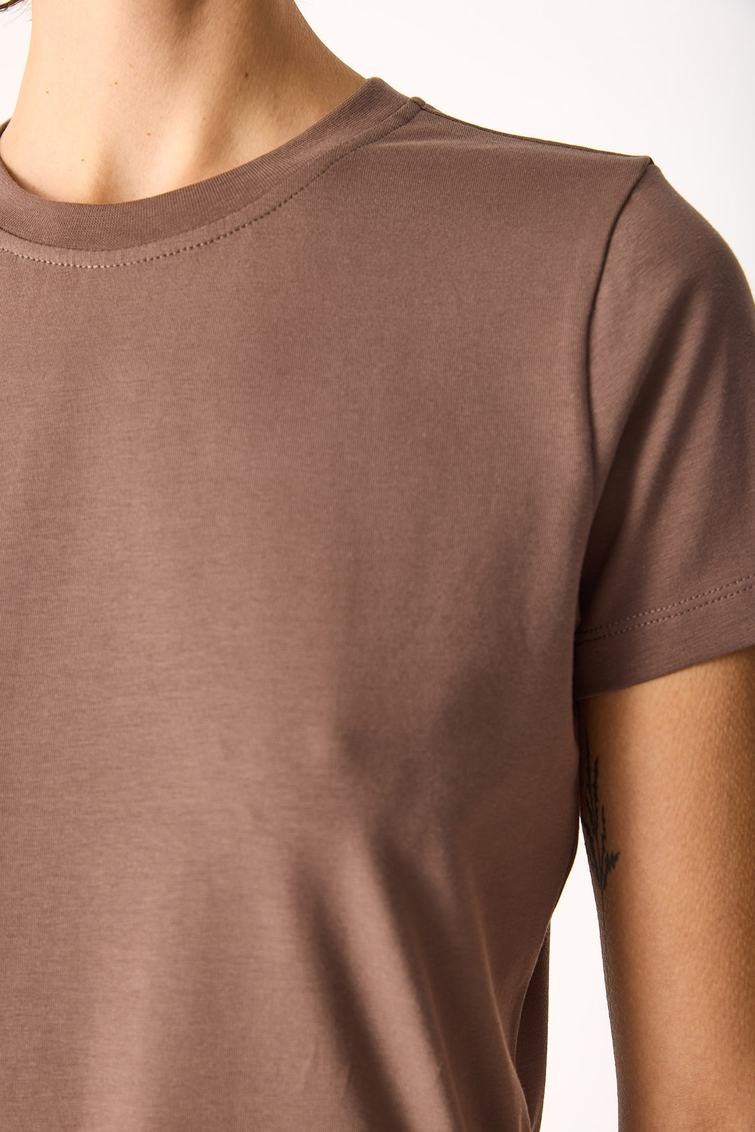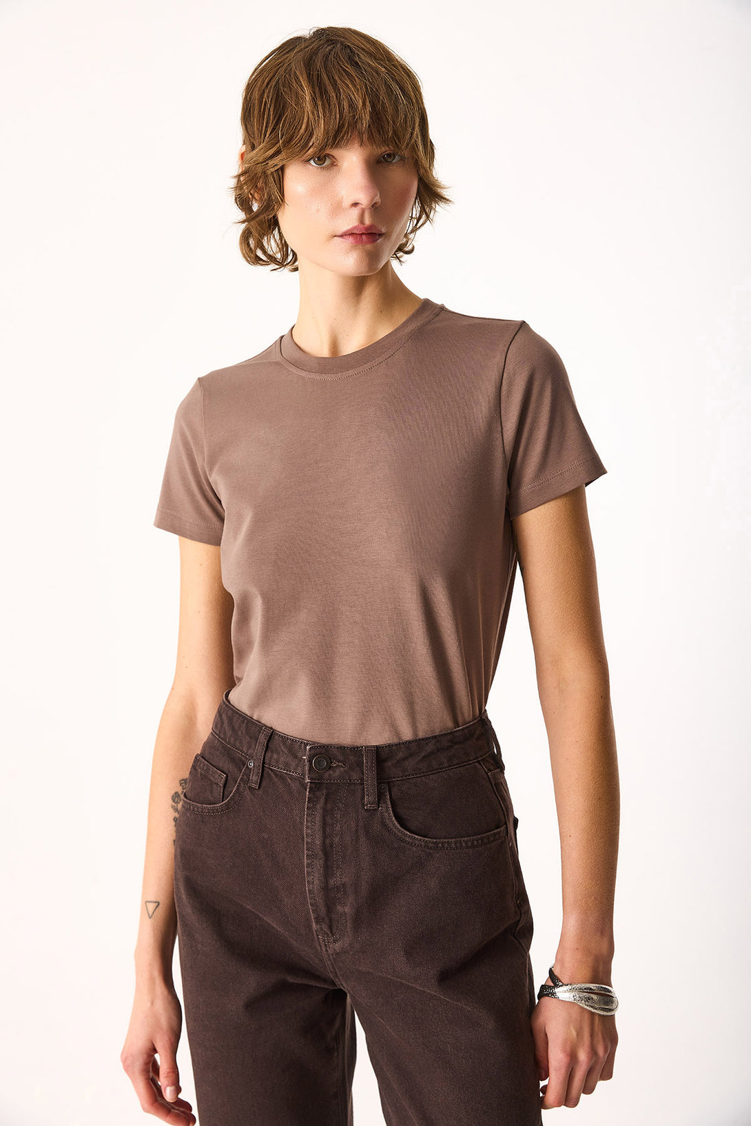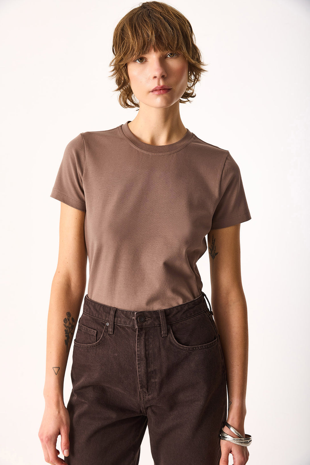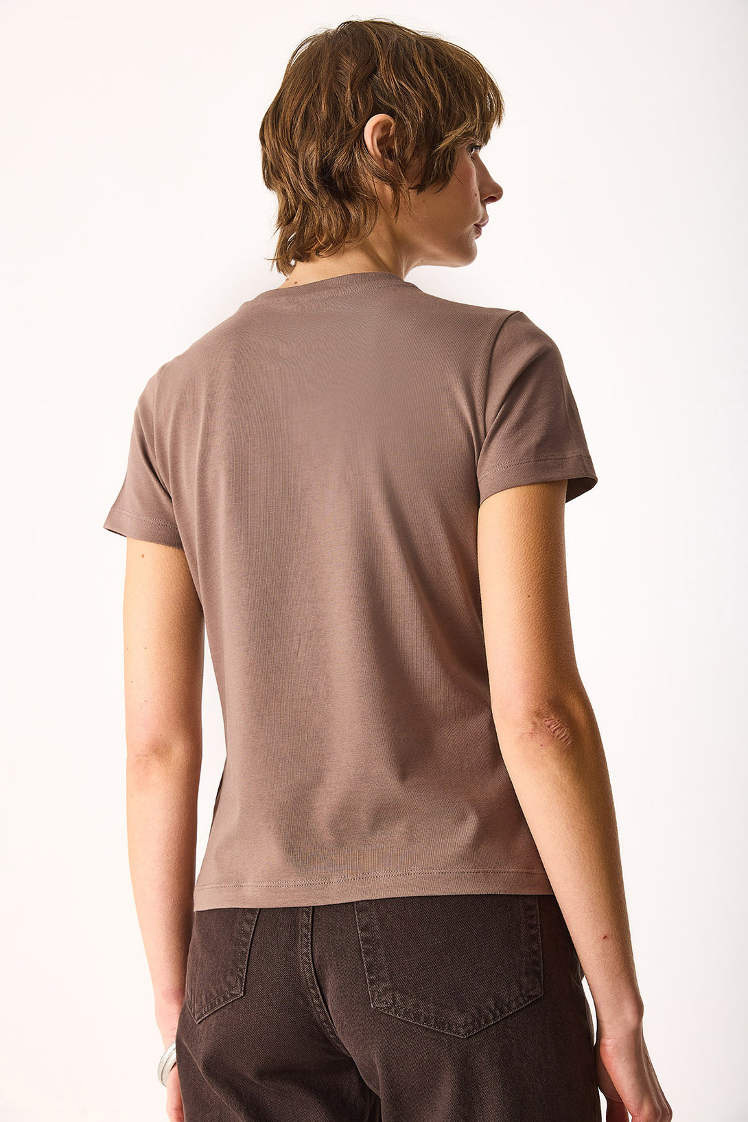 Rachel Bisiklet Yaka Slim Fit Basic Tişört-VİZON