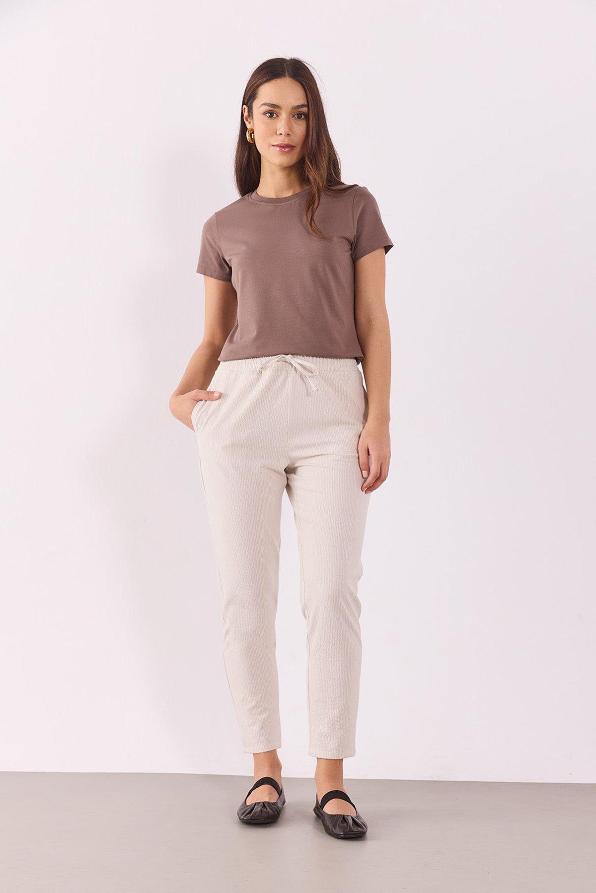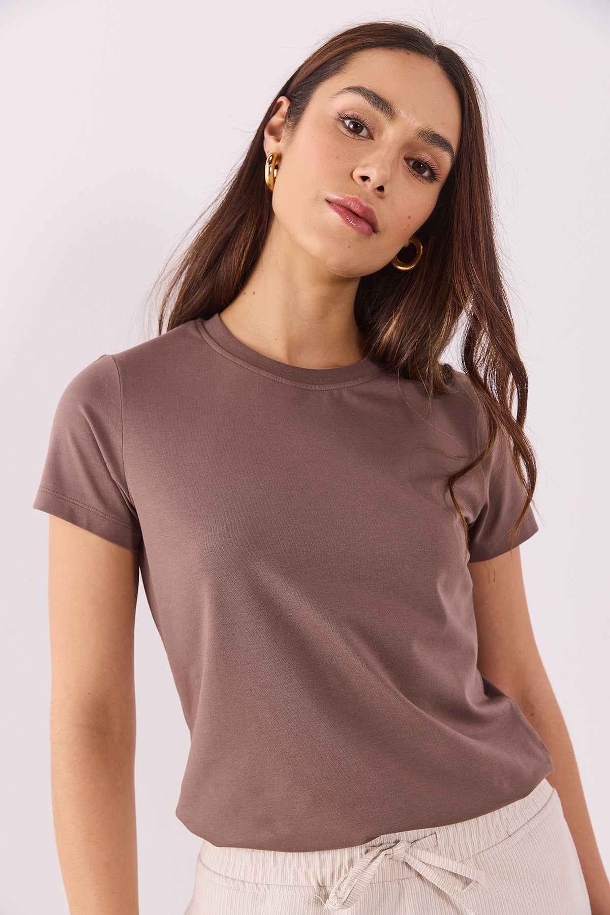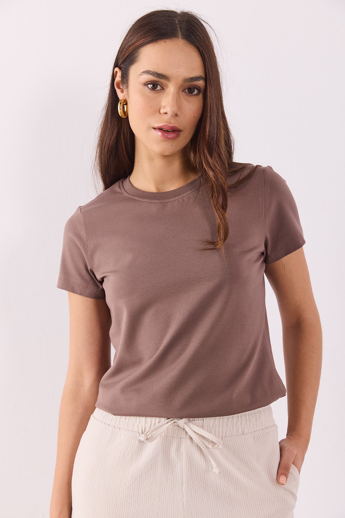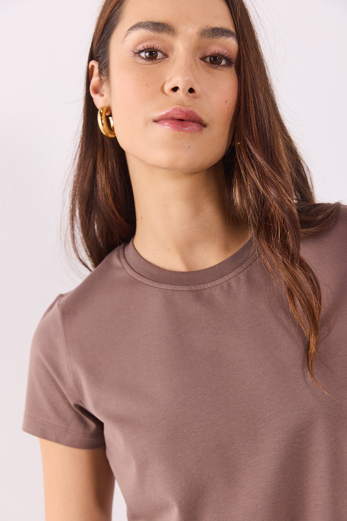 Kadın Rachel Bisiklet Yaka Slim Fit Basic Tişört - Vizon