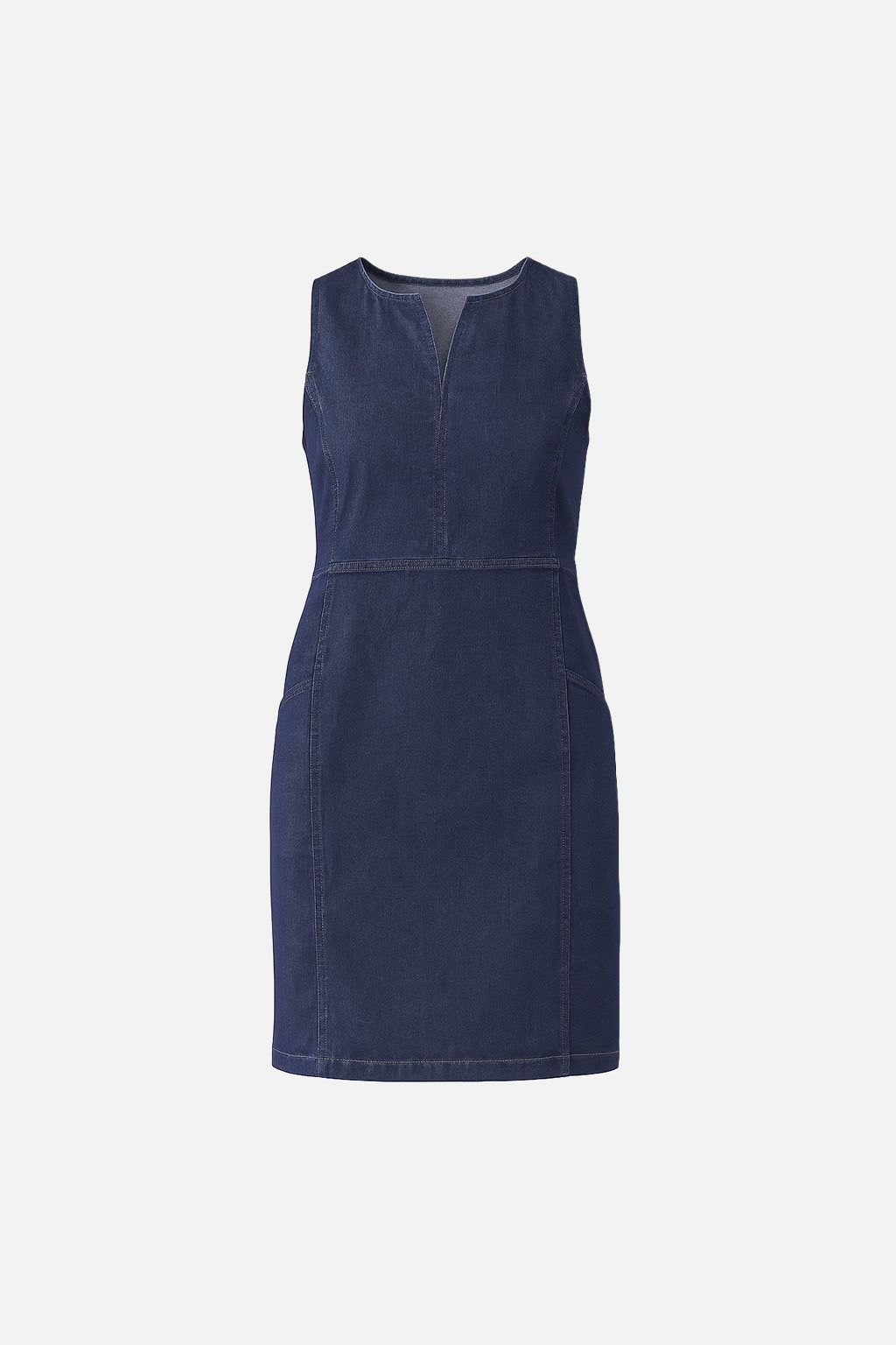 Kadın Rain Dark Blue Slim Fit Kolsuz Jean Elbise - Dark Blue