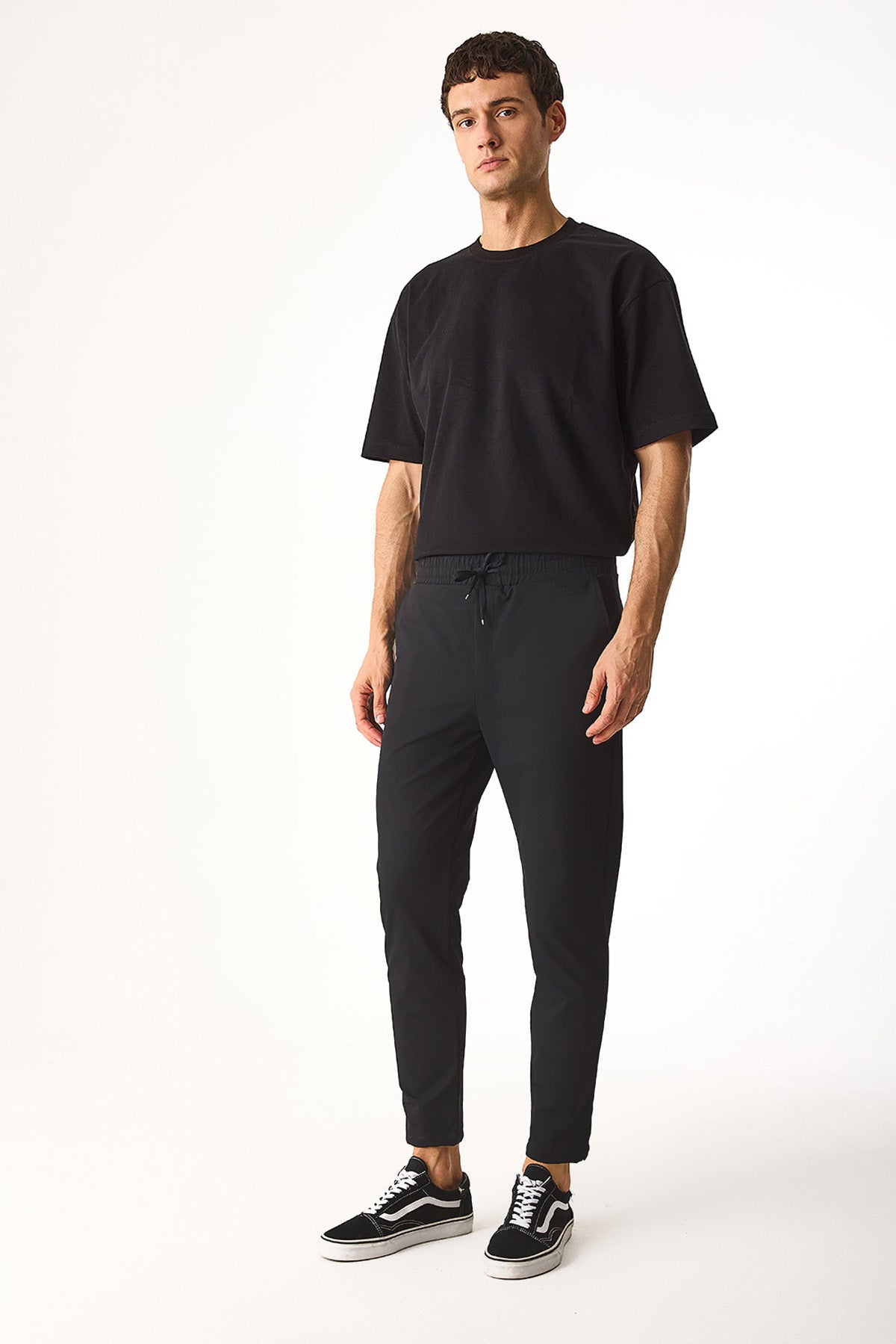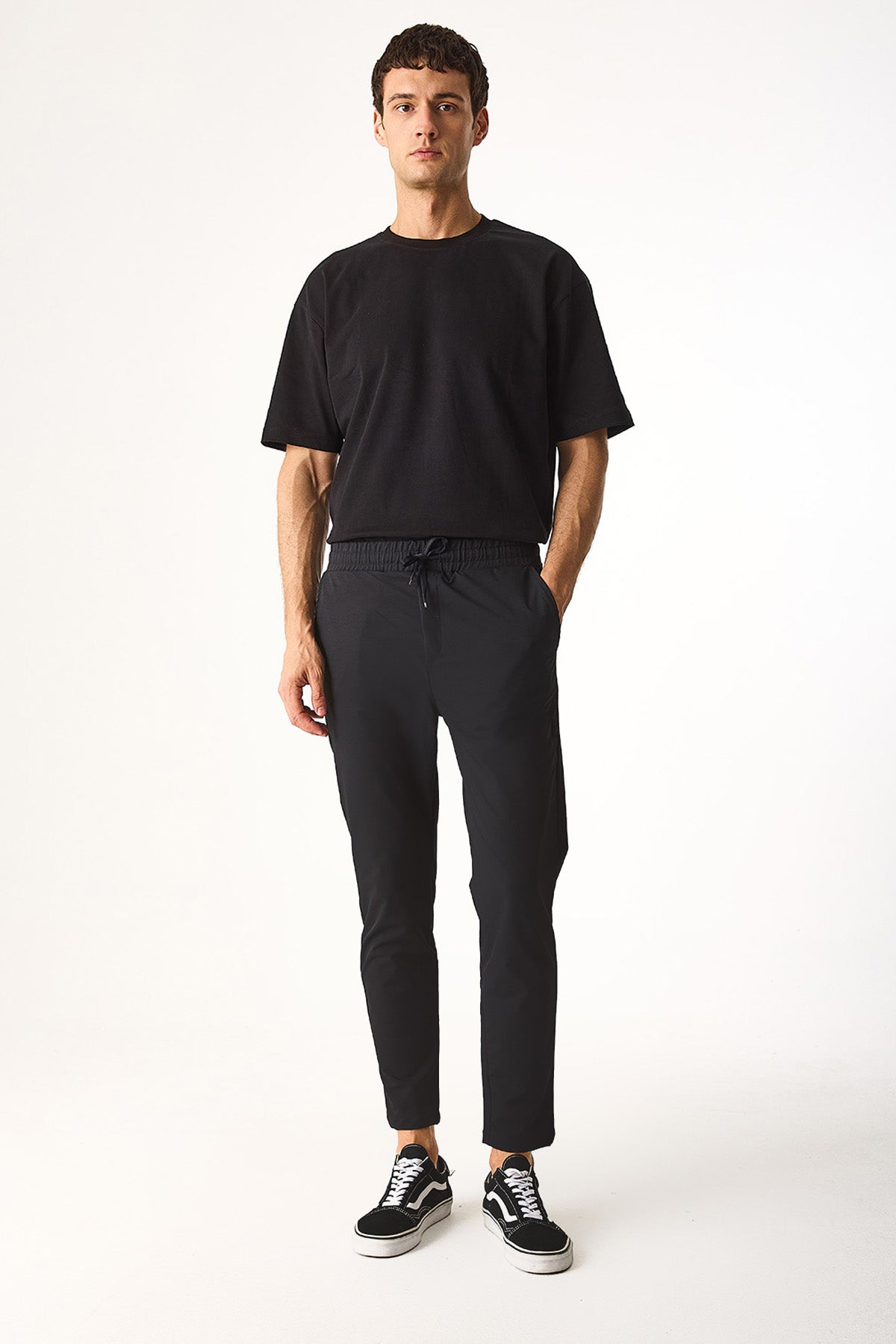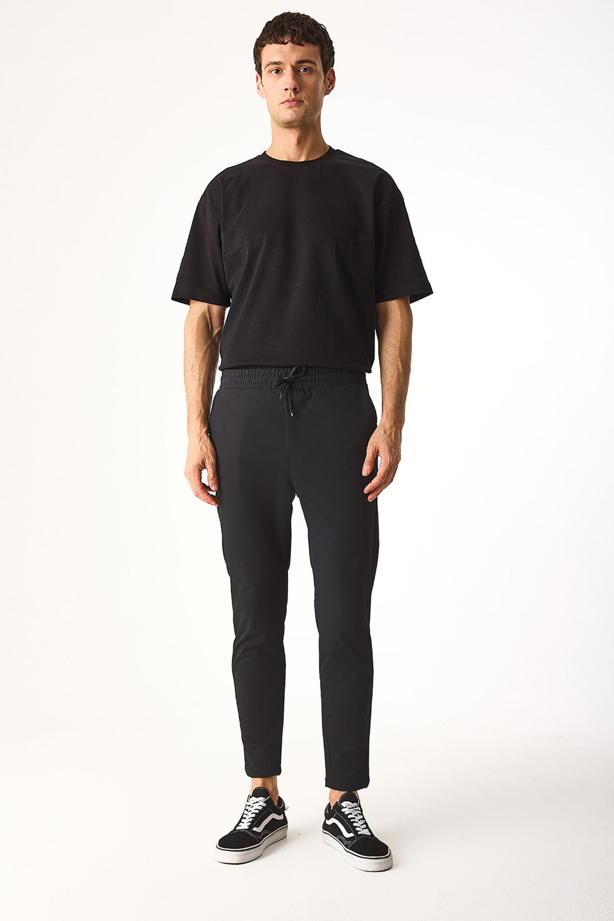 Erkek Regular Fit Beli Lastikli Teknik Pantolon - Siyah