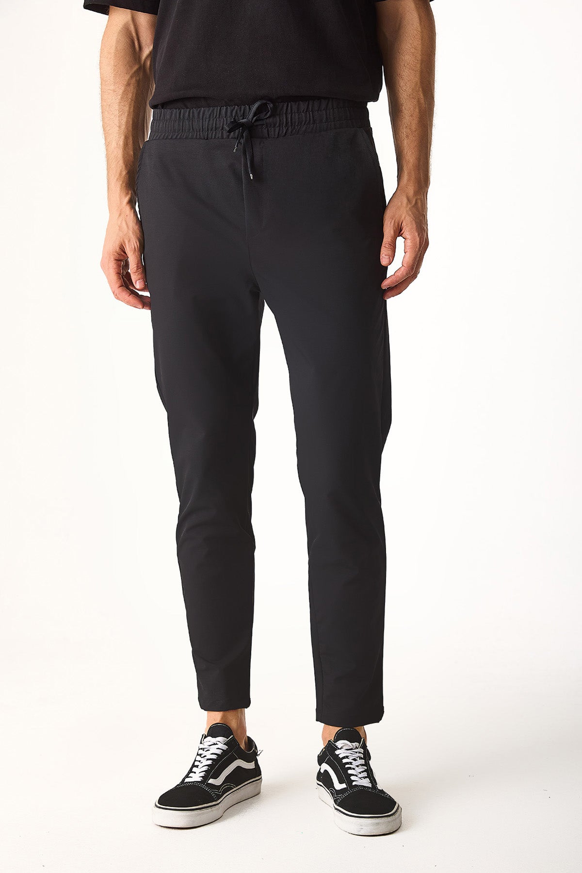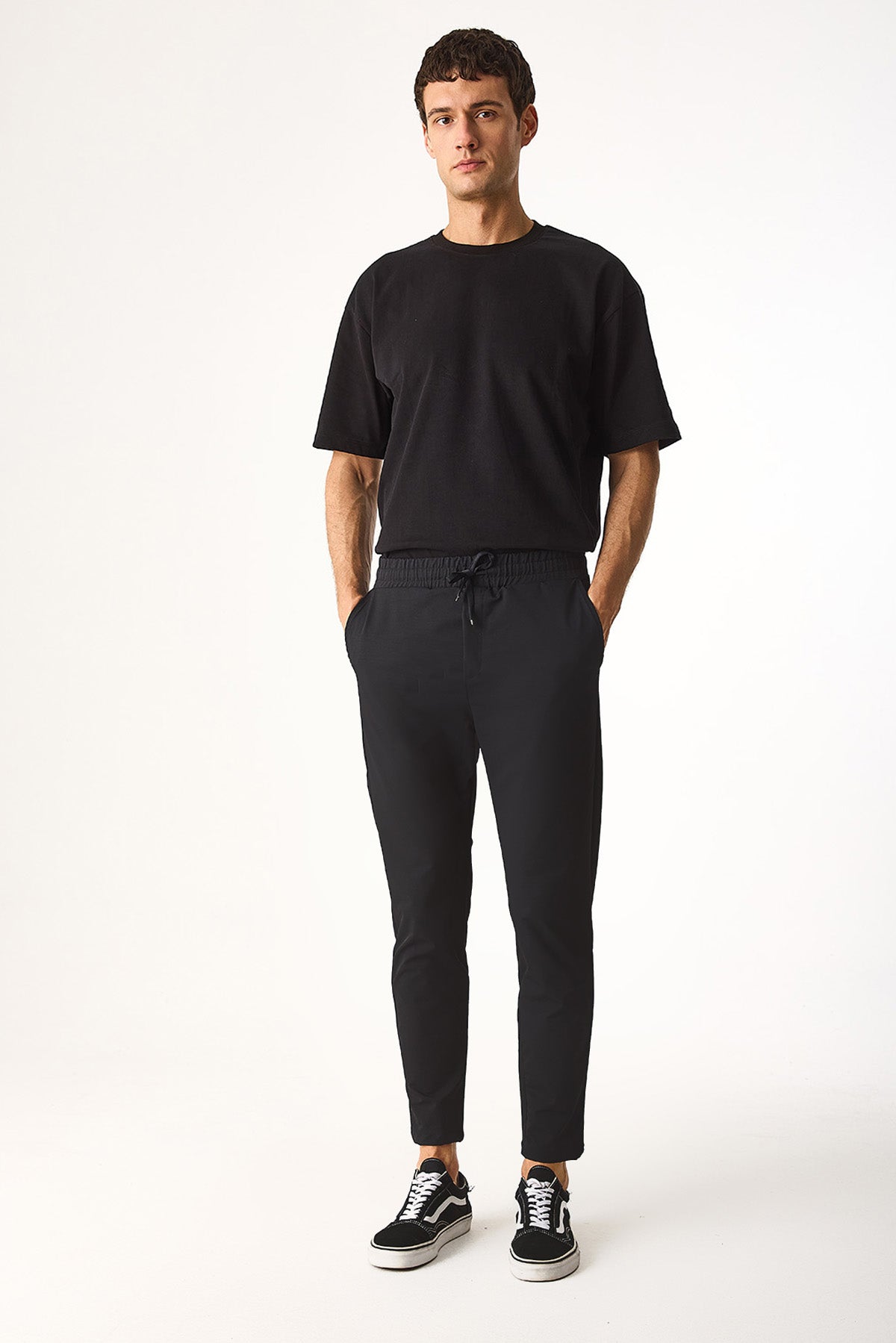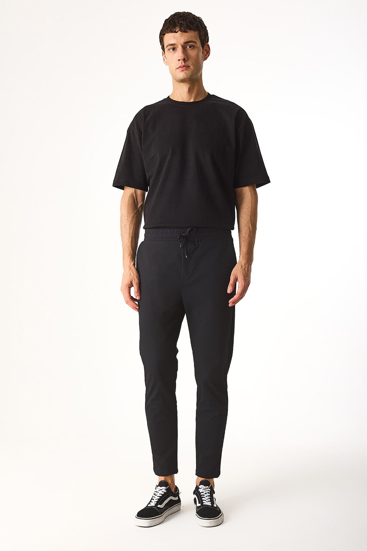 Erkek Regular Fit Beli Lastikli Teknik Pantolon - Siyah