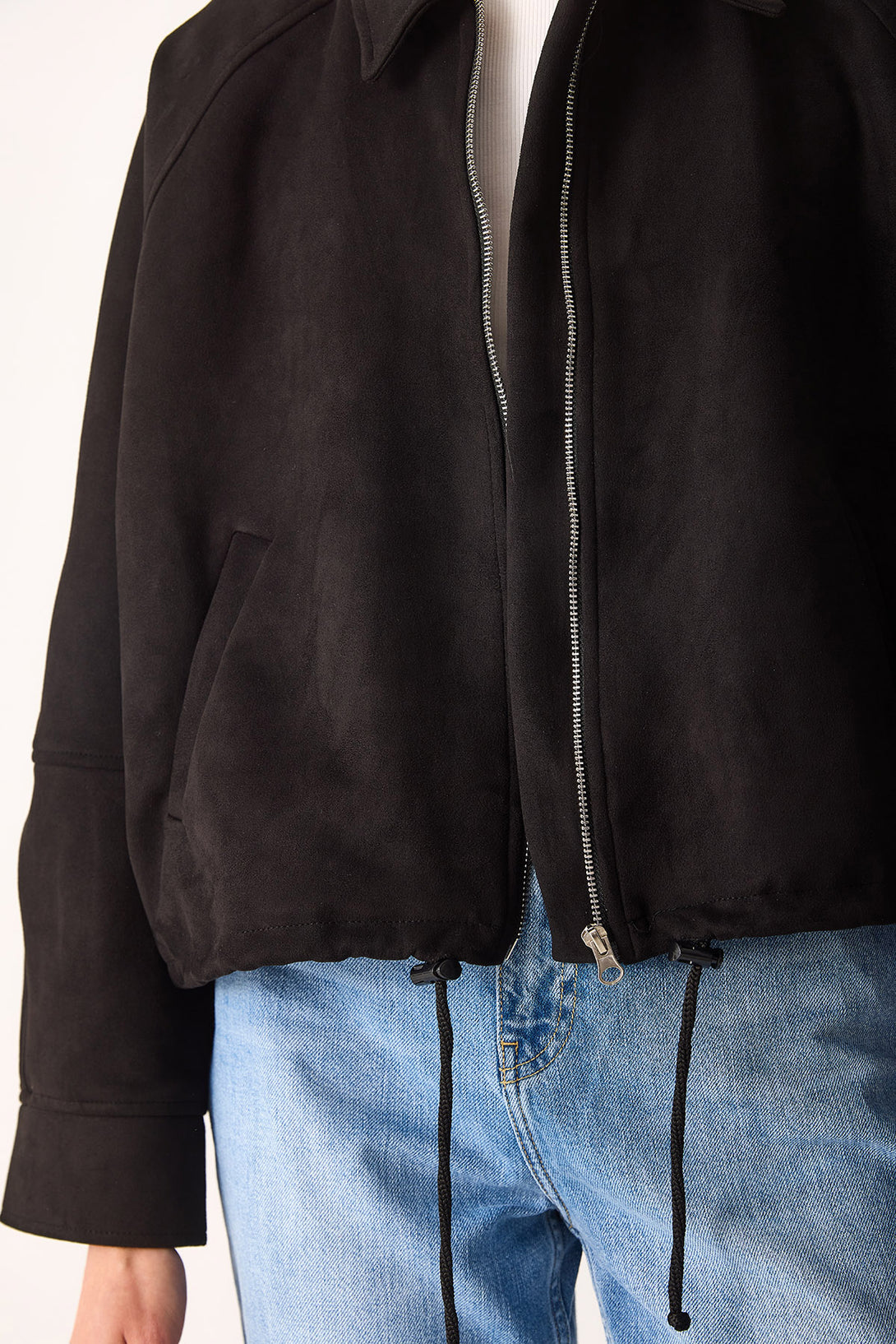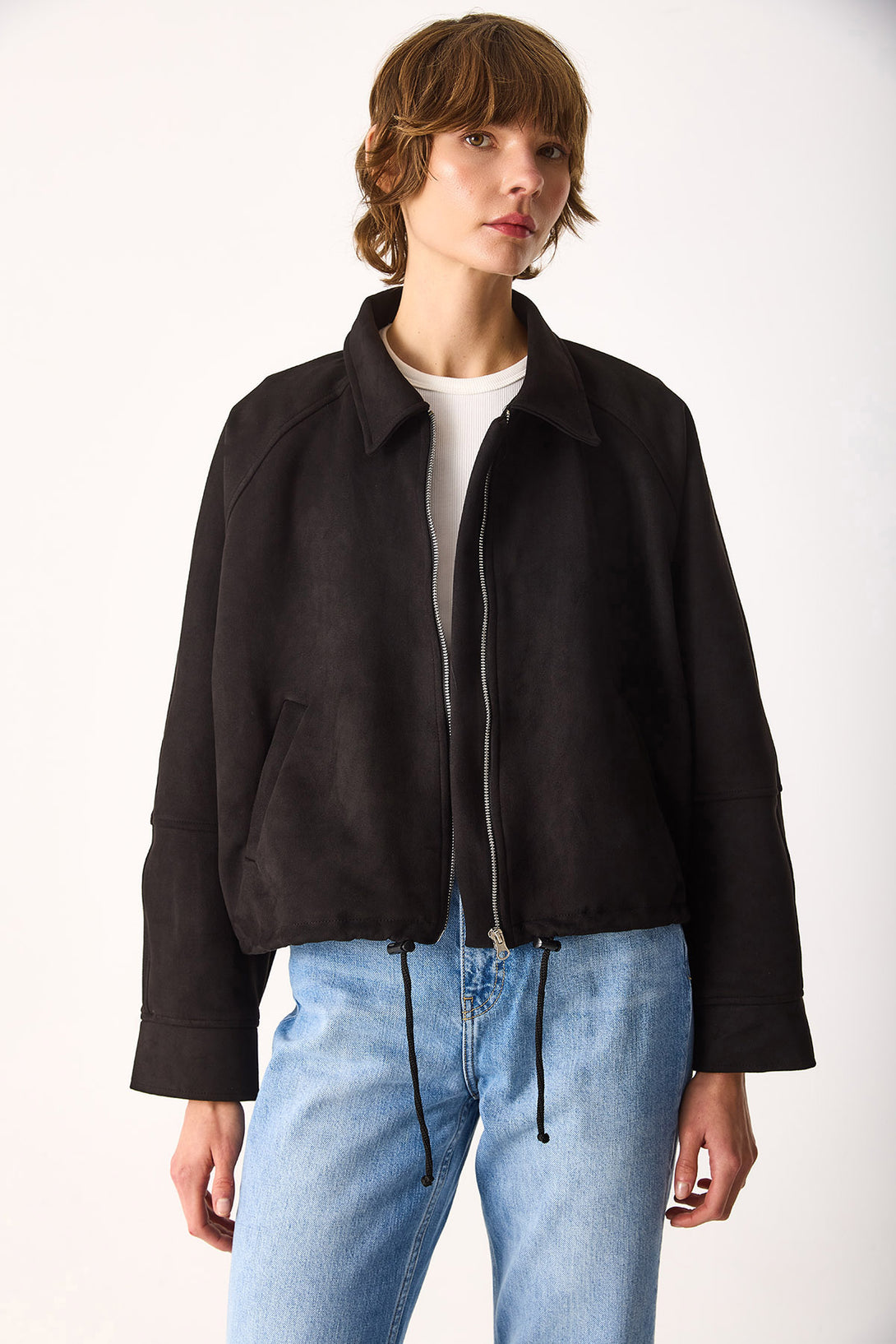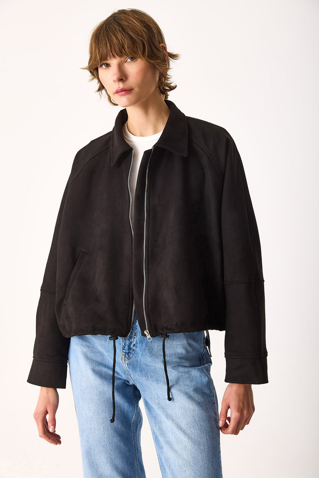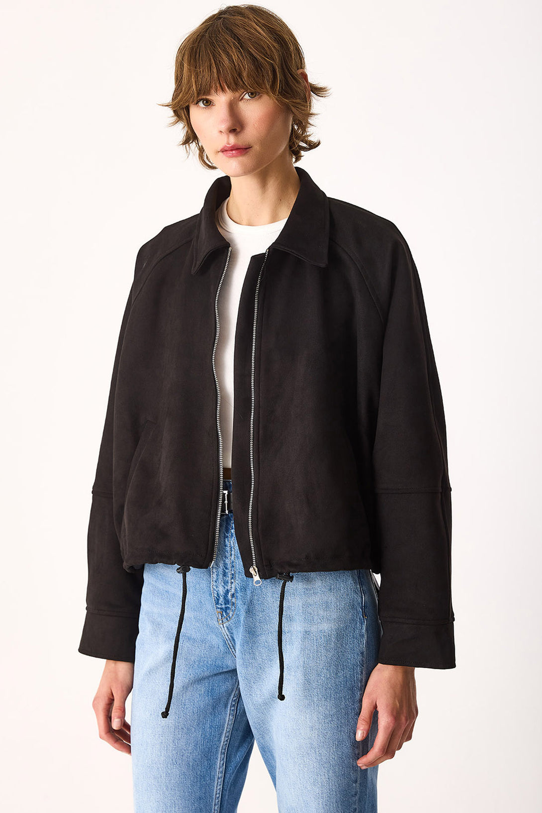 Regular Fit Crop Süet Ceket-SİYAH