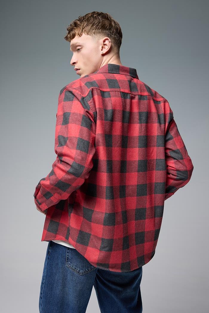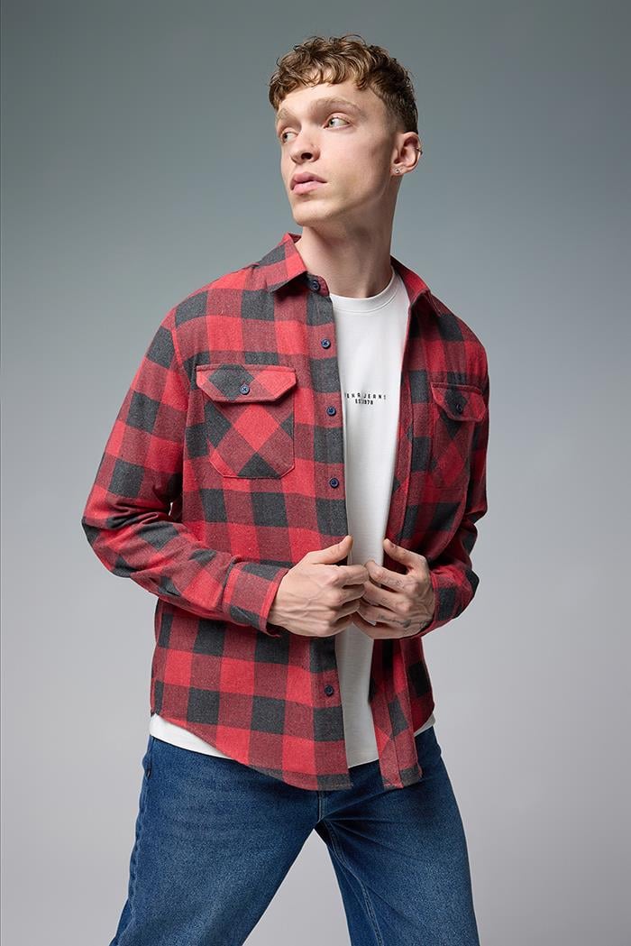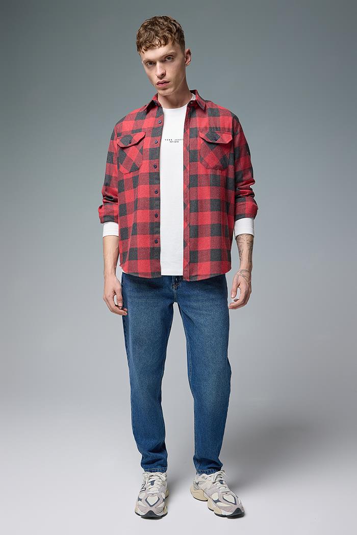 Erkek Regular Fit Kırmızı Ekose Flanel Gömlek