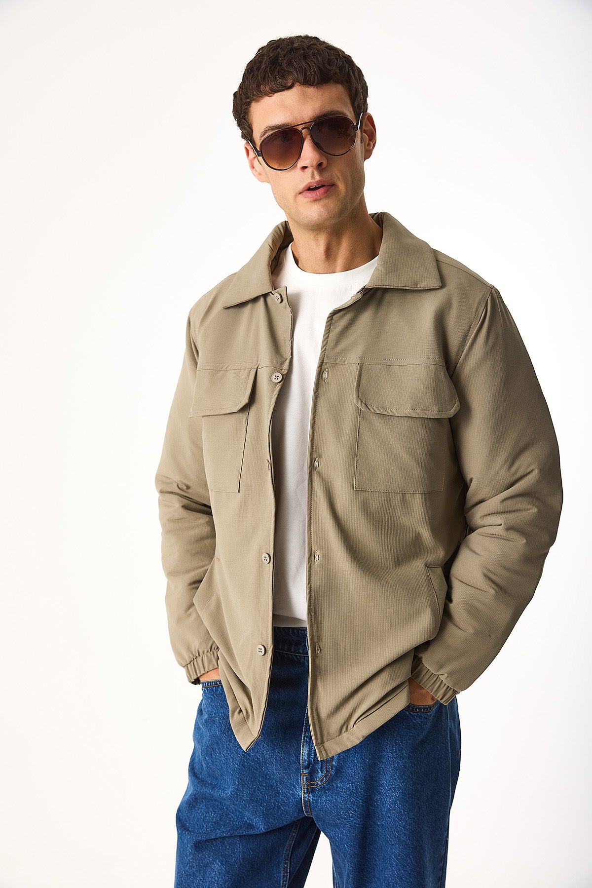 Erkek Regular Fit İçi Kapitoneli Teknik Ceket - Bej