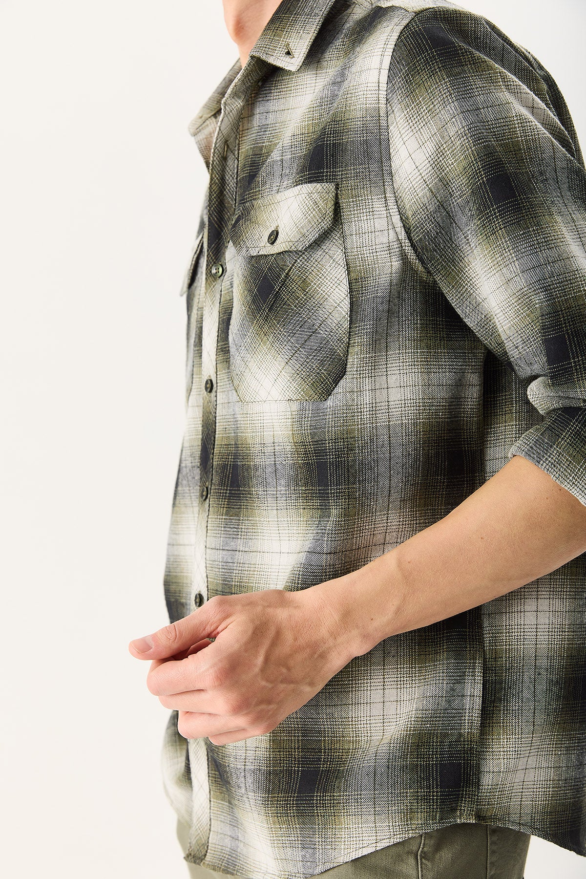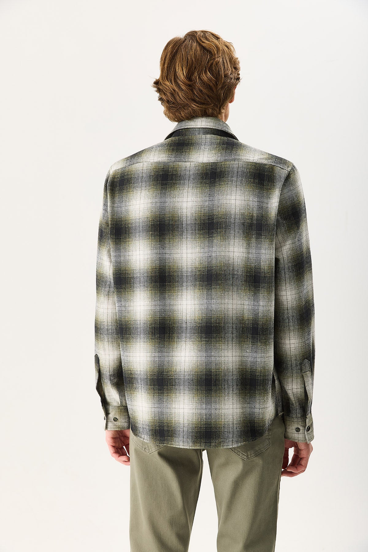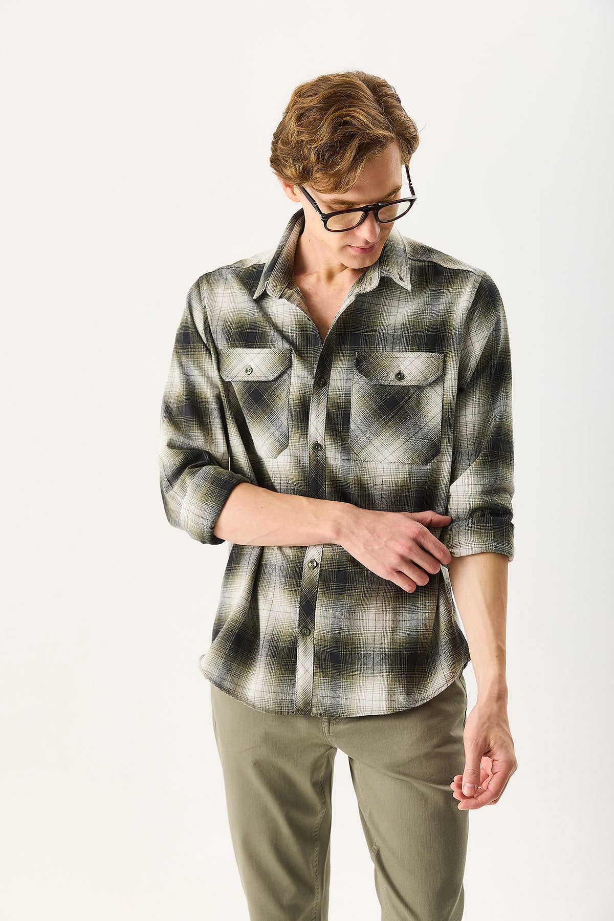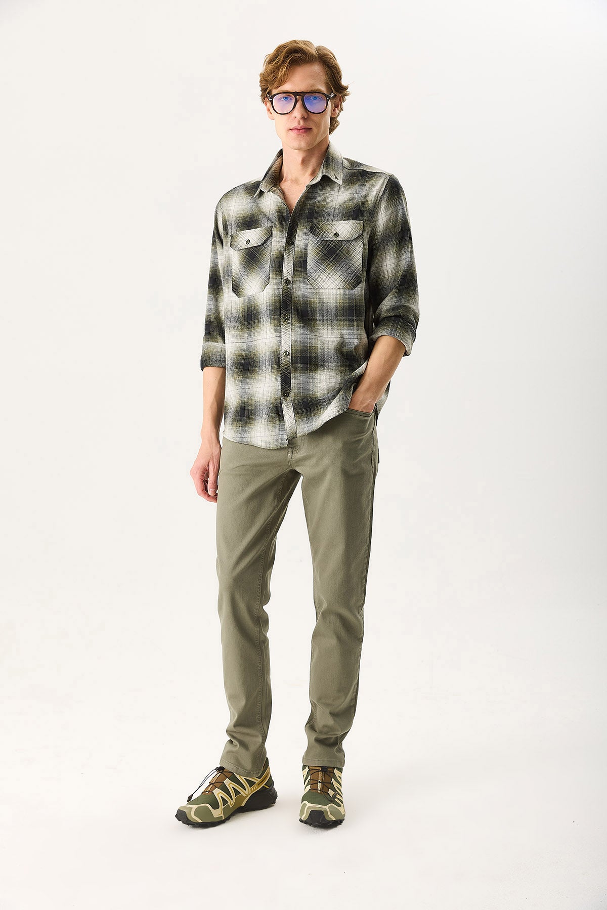 Erkek Regular Fit Kapaklı Cepli Ekose Gömlek - Haki