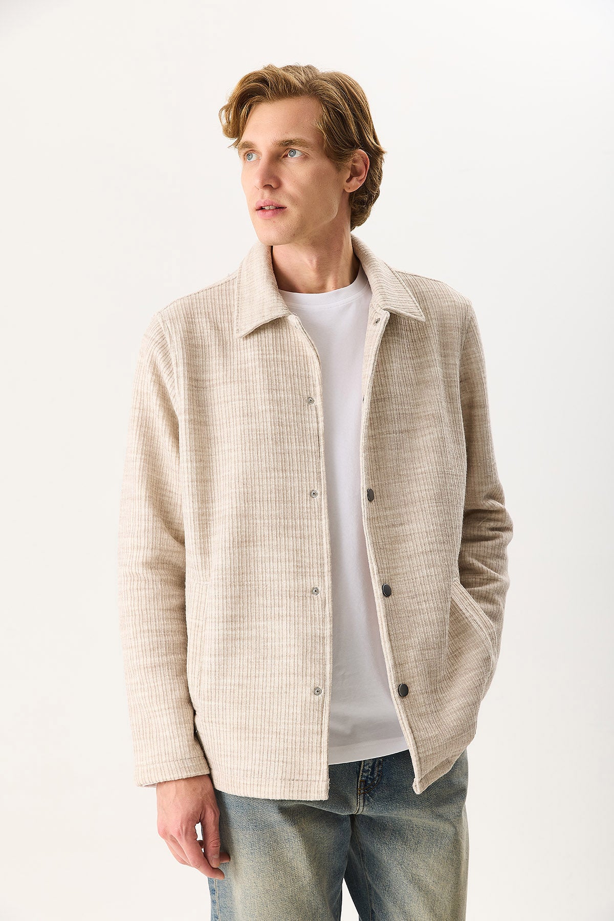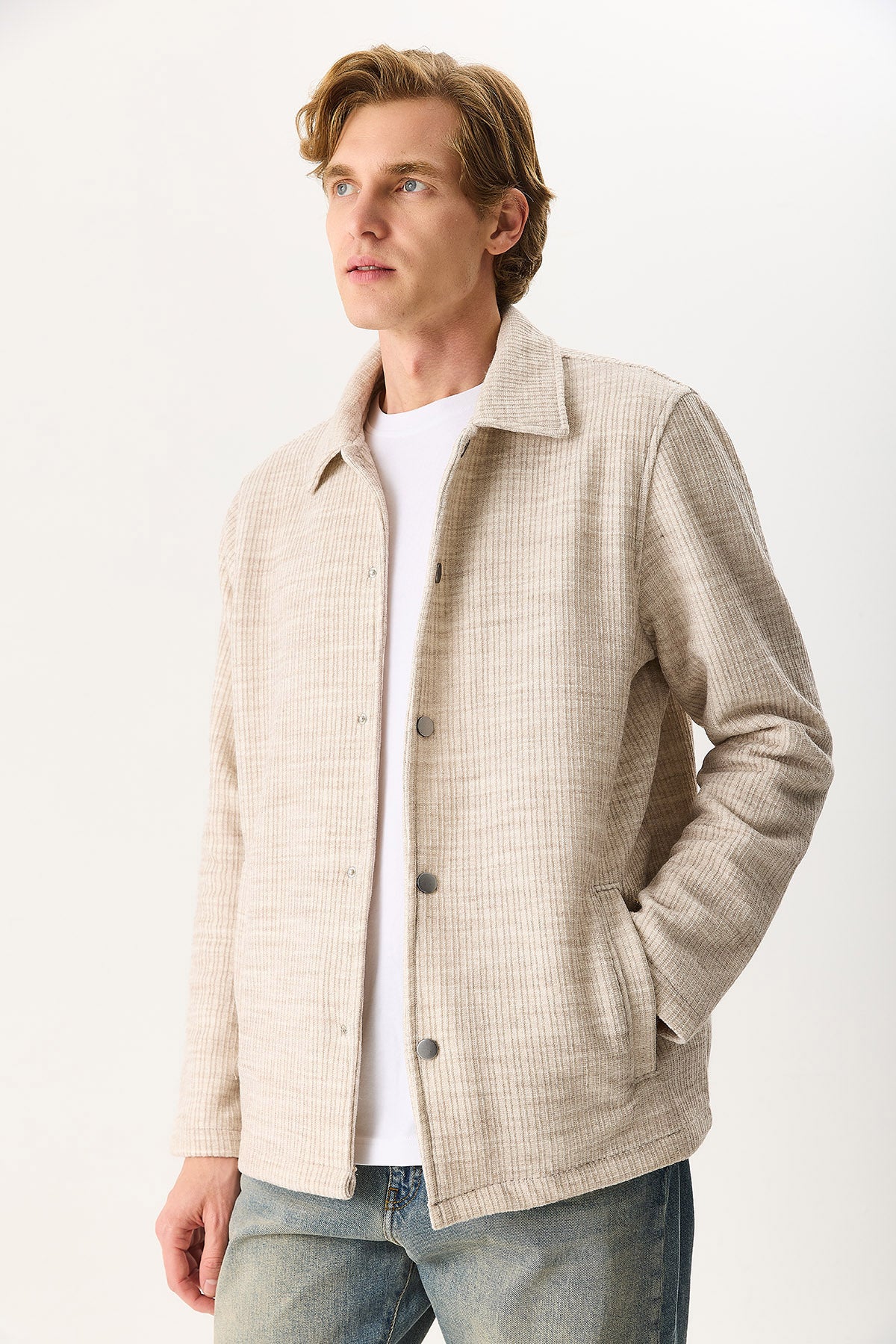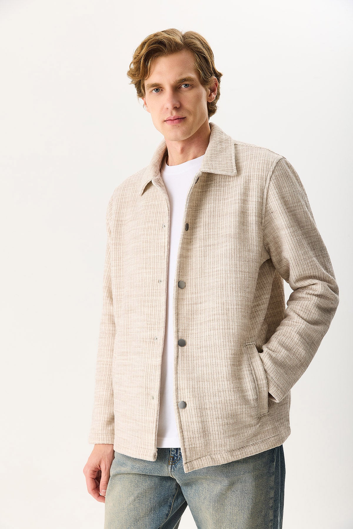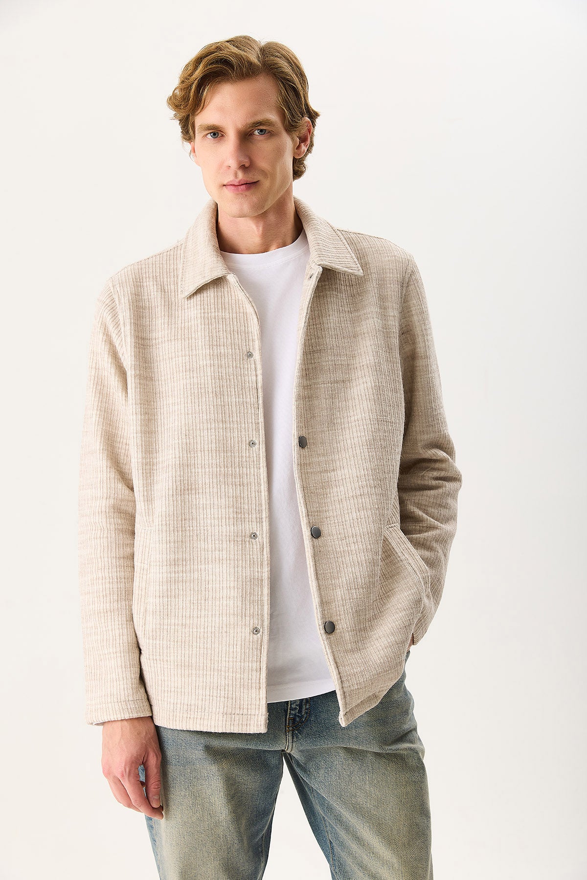 Regular Fit Önü Çıtçıtlı Yünlü Ceket ile stilinizi tamamlayın. %15 Yün %85 Polyester kumaştan üretilmiştir ve gün boyu konfor sağlar. Yünlü yapısı sayesinde dayanıklı ve uzun ömürlüdür. Regular kesimi ile vücuda uyum sağlar. Günlük ve smart casual kombinler için uygundur.