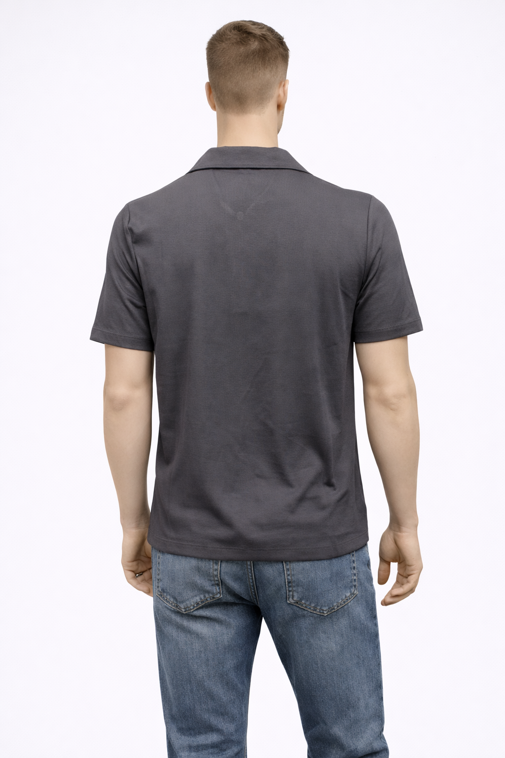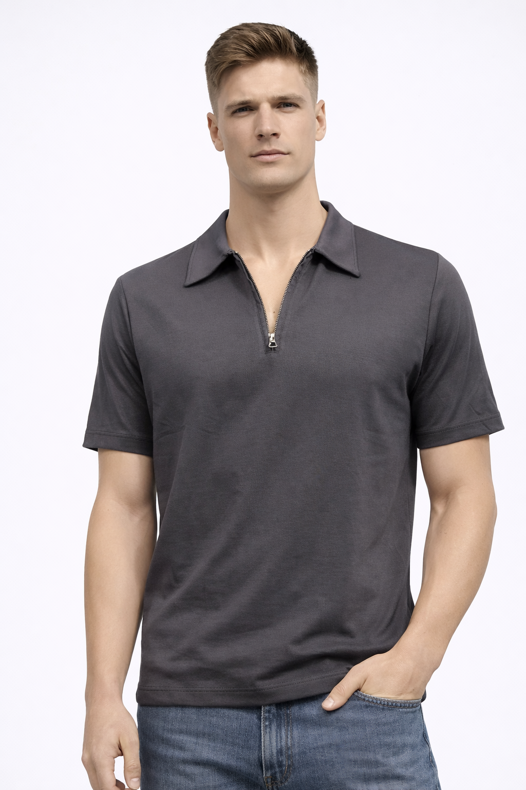 Regular Fit Polo Yaka Fermuar Detaylı Tişört-Indigo