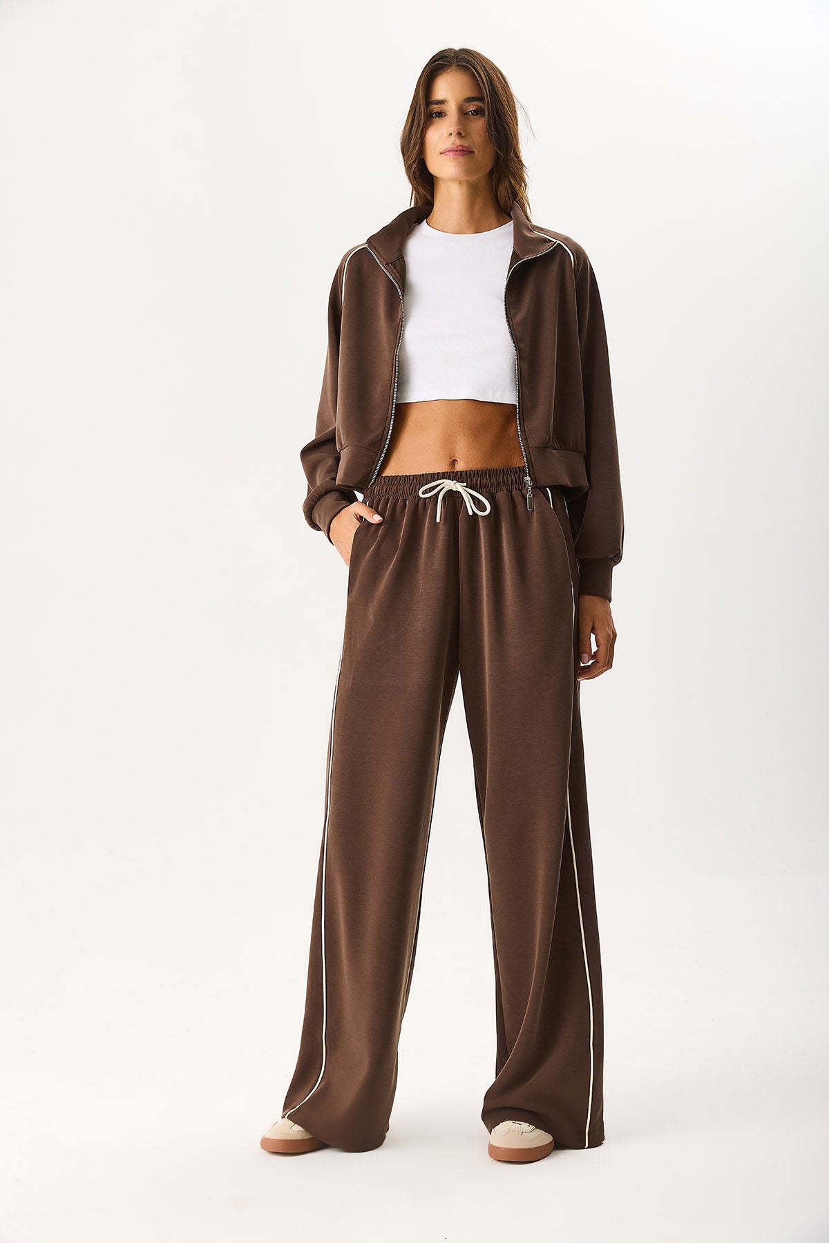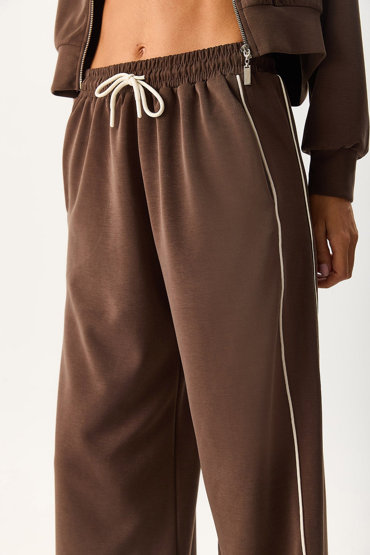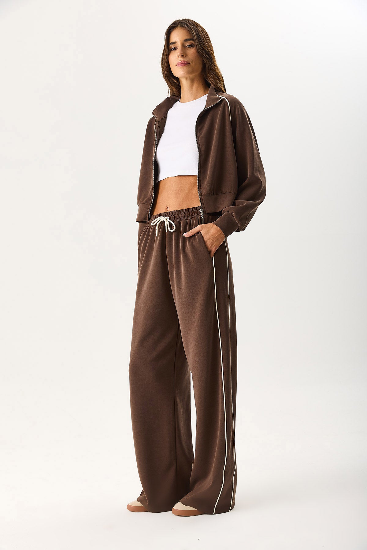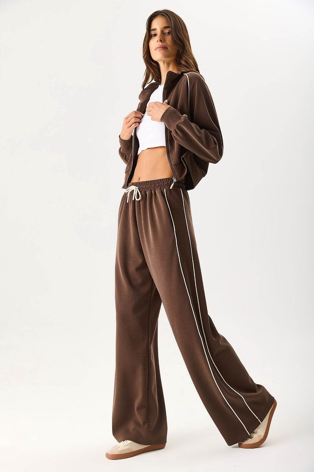 Kadın Regular Fit Yanı Yırtmaçlı Yumuşak Dokulu Jogging Pantolon (CUPRO) - Kahverengi