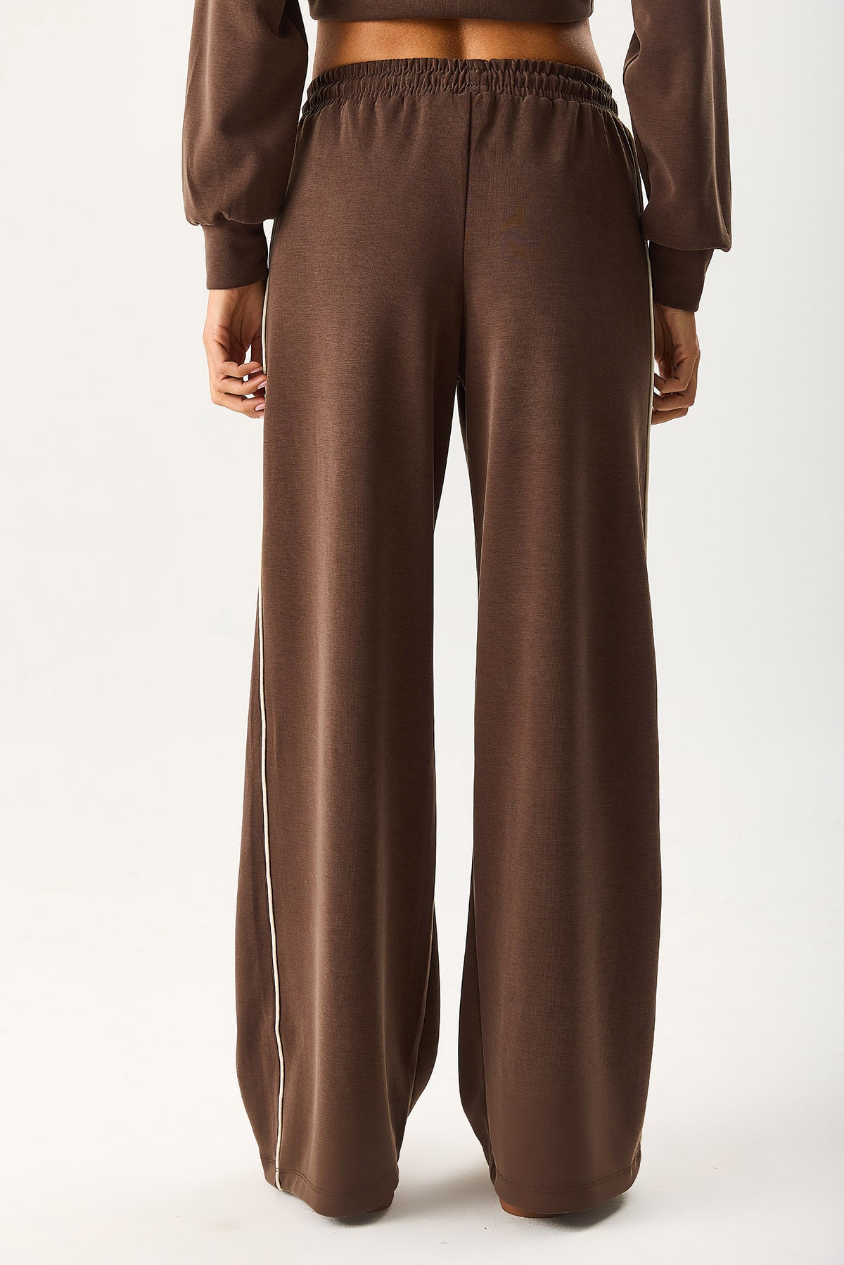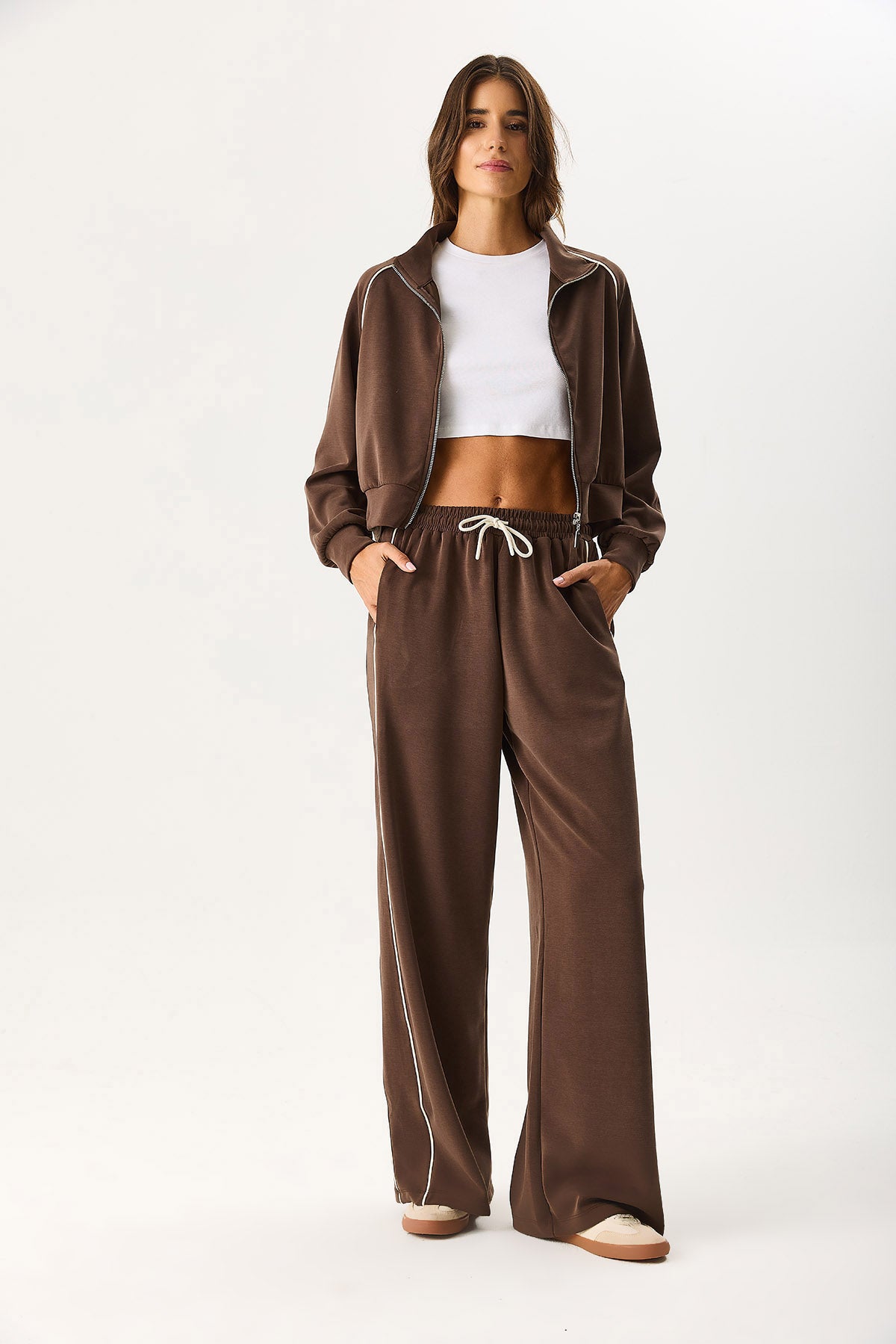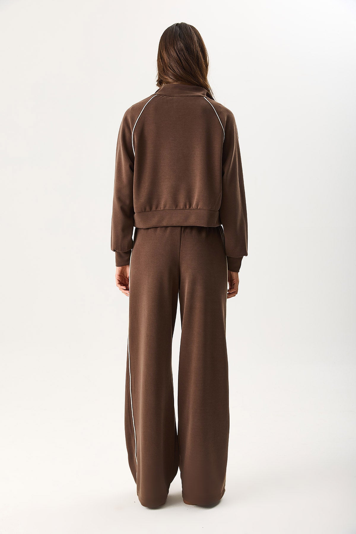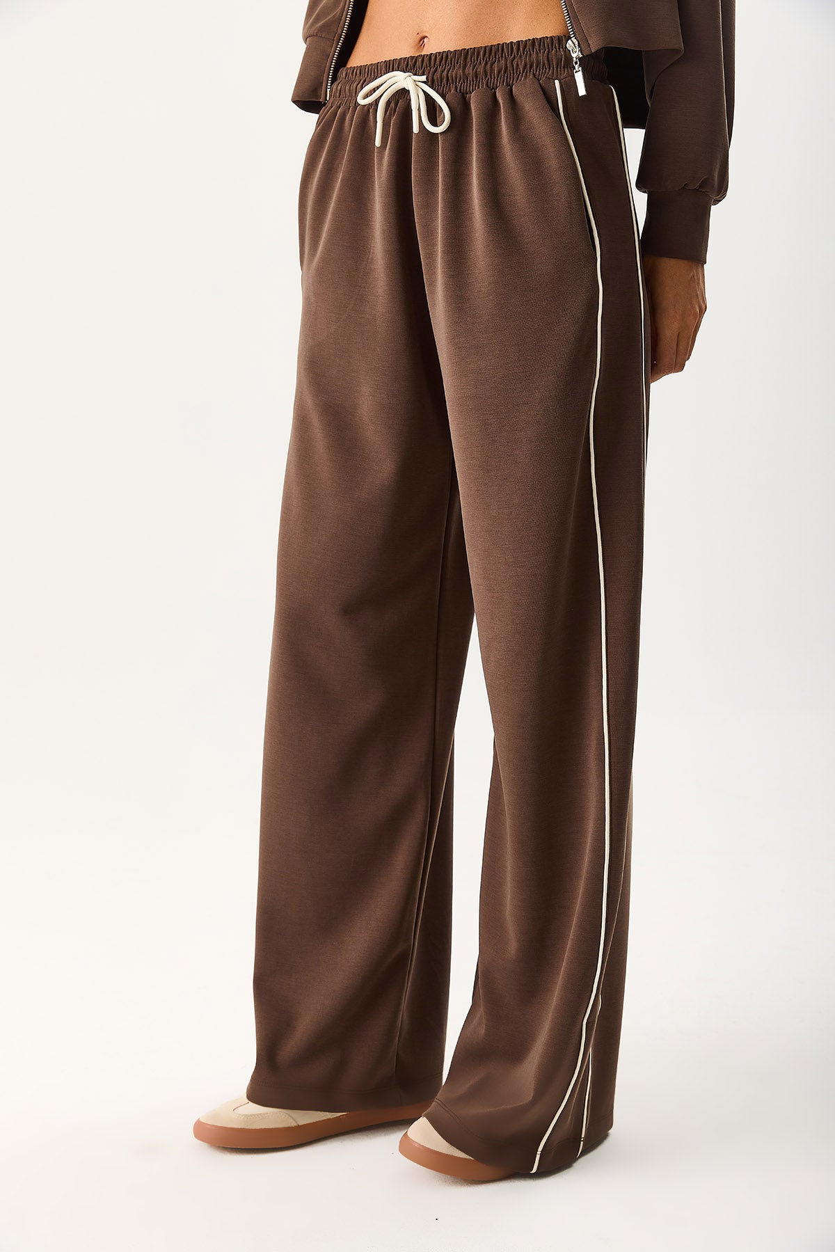 Kadın Regular Fit Yanı Yırtmaçlı Yumuşak Dokulu Jogging Pantolon (CUPRO) - Kahverengi