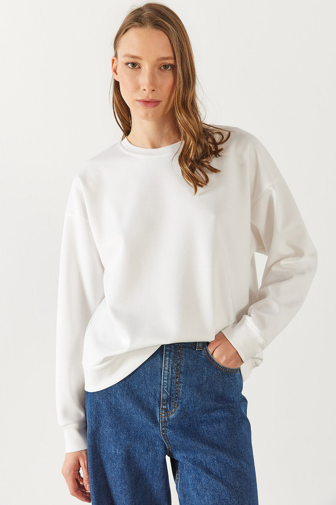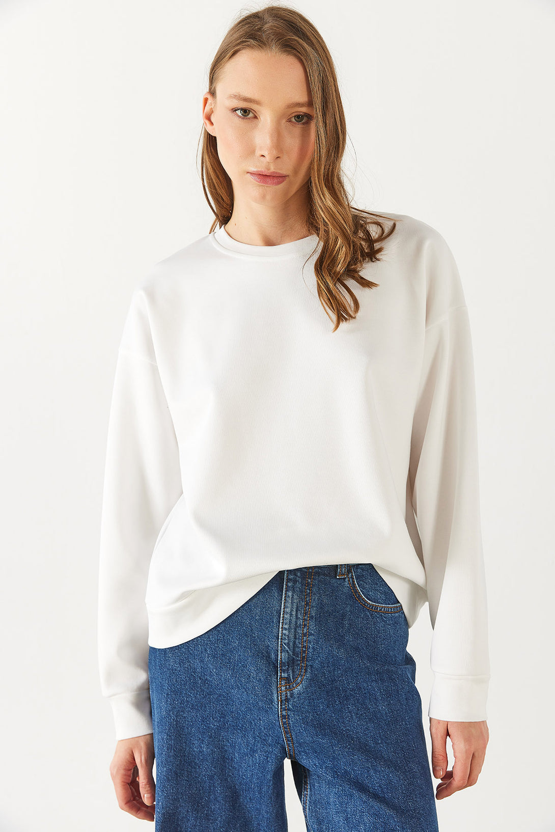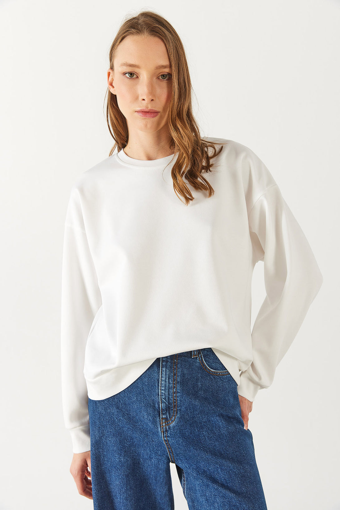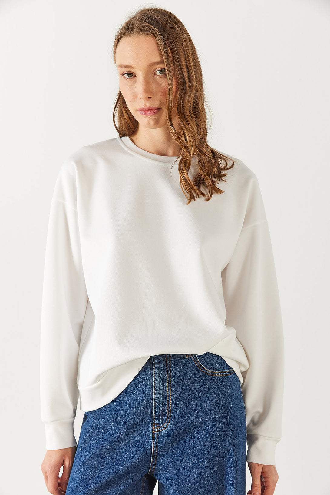 Kadın Rhona Bisiklet Yaka Pamuklu Sweatshirt - Fildişi