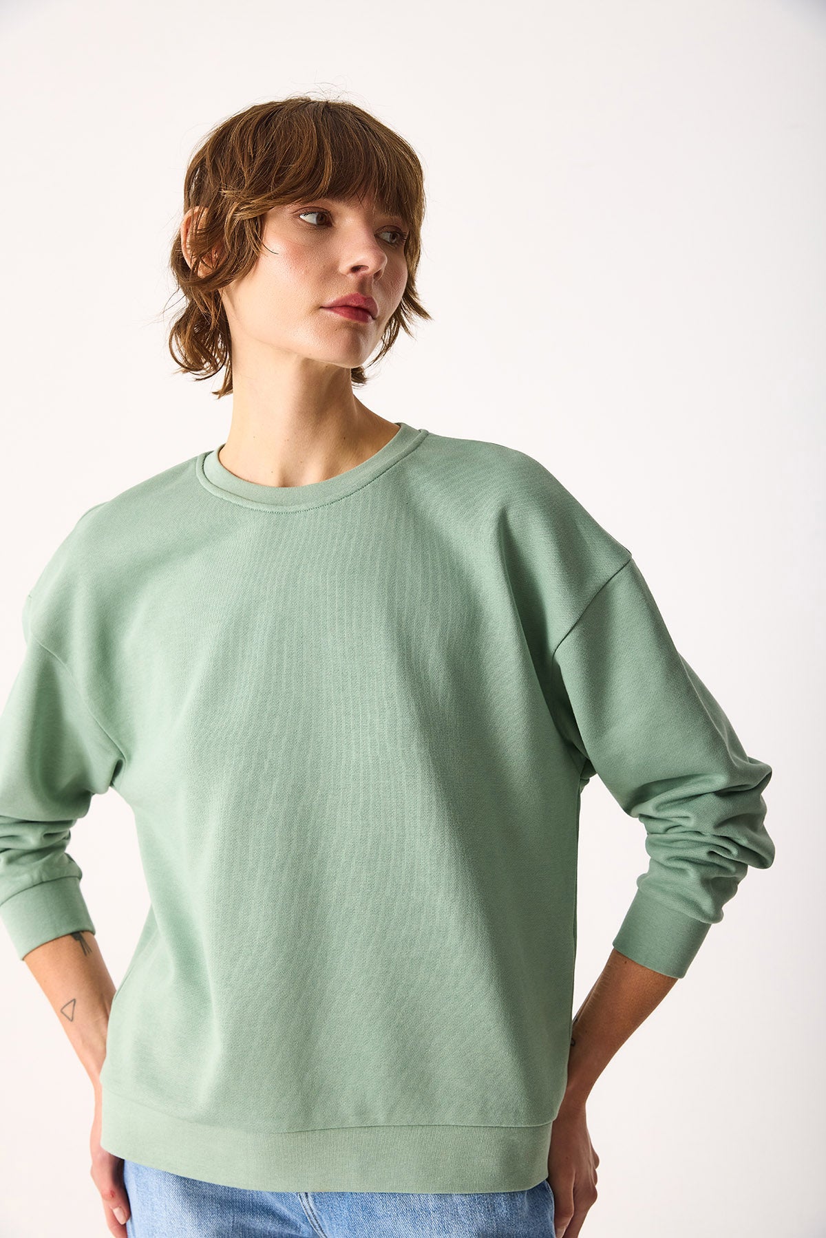 Kadın Rhona Bisiklet Yaka Regular Fit 3 İplik Sweatshirt %100 Pamuk - Ada Çayı