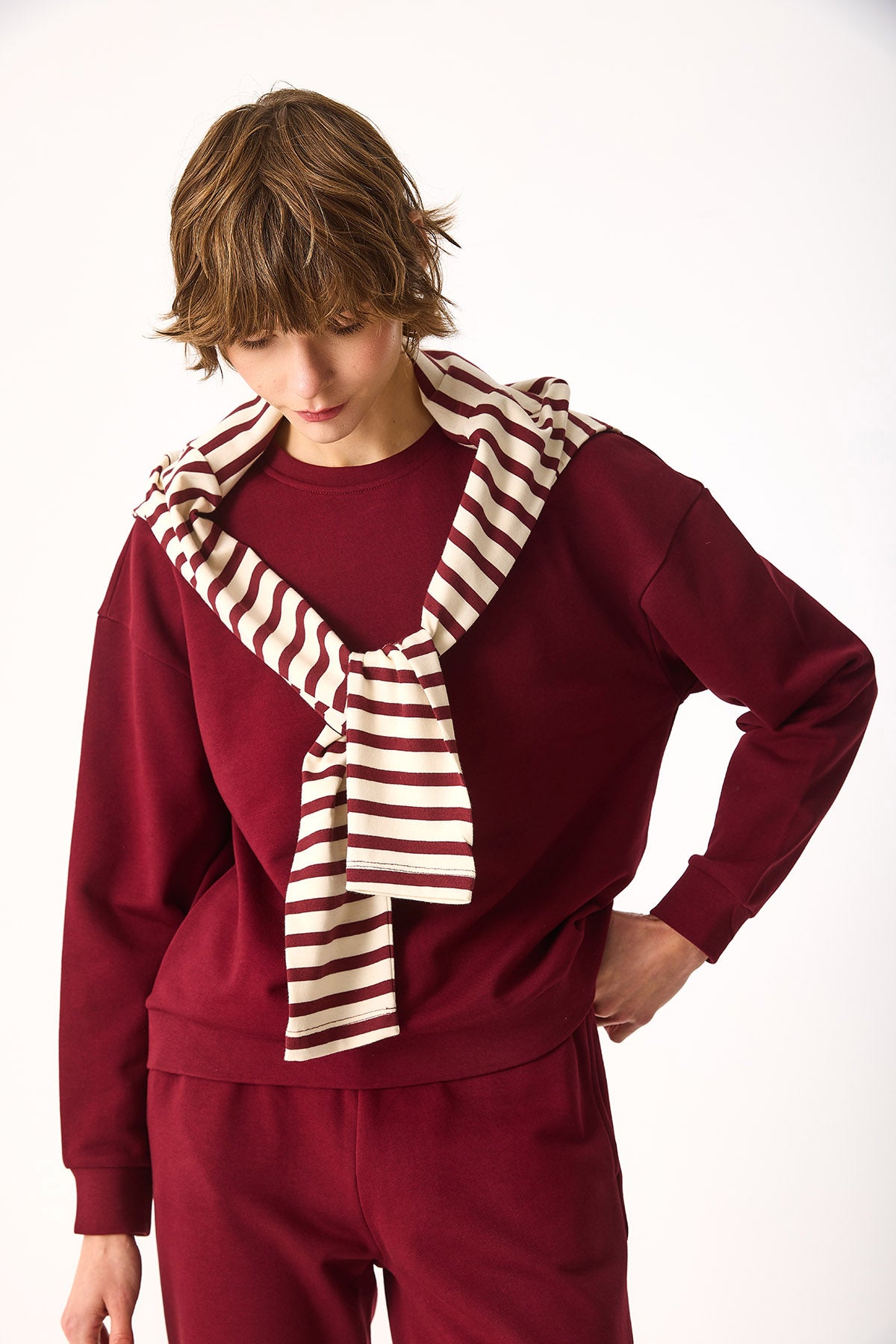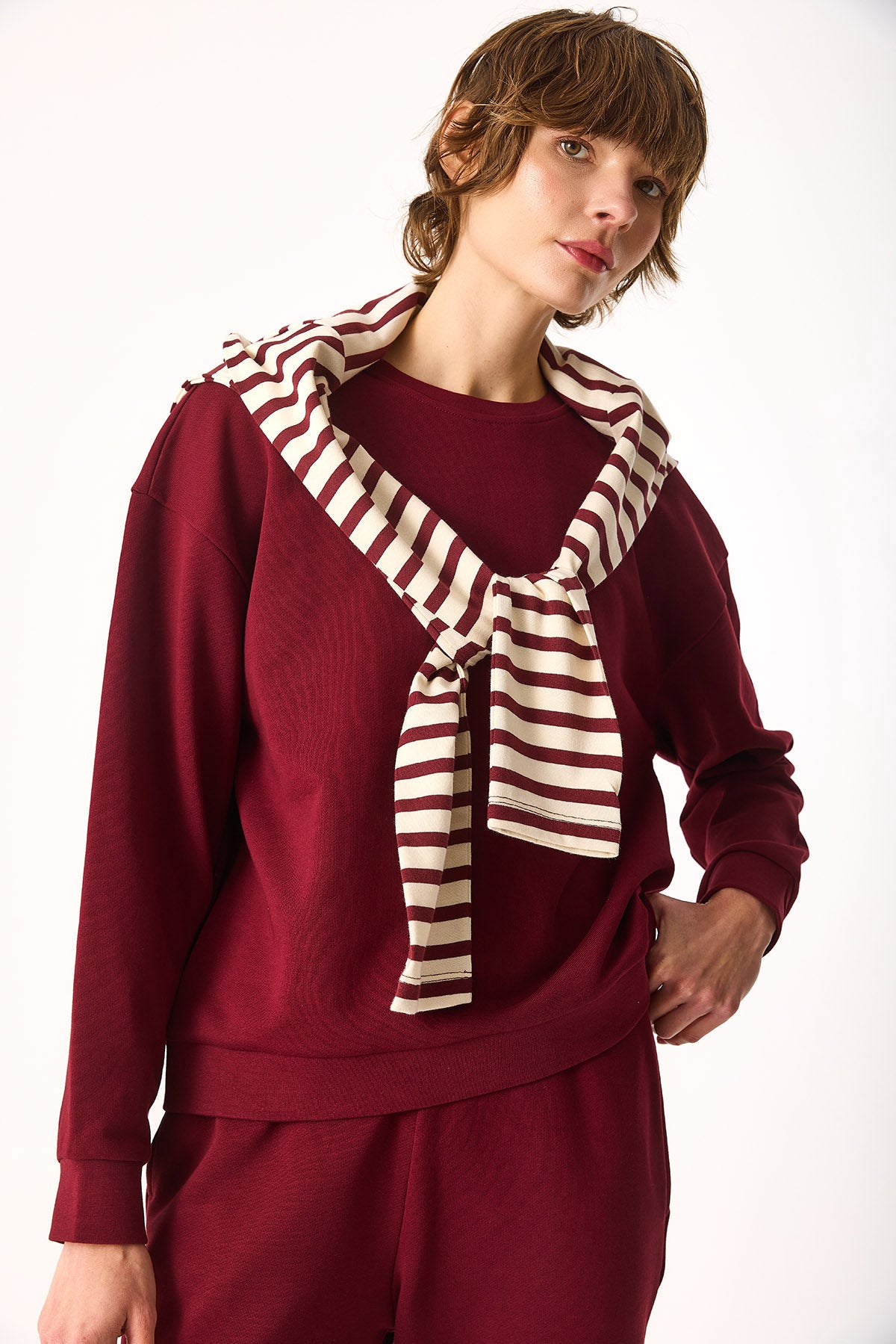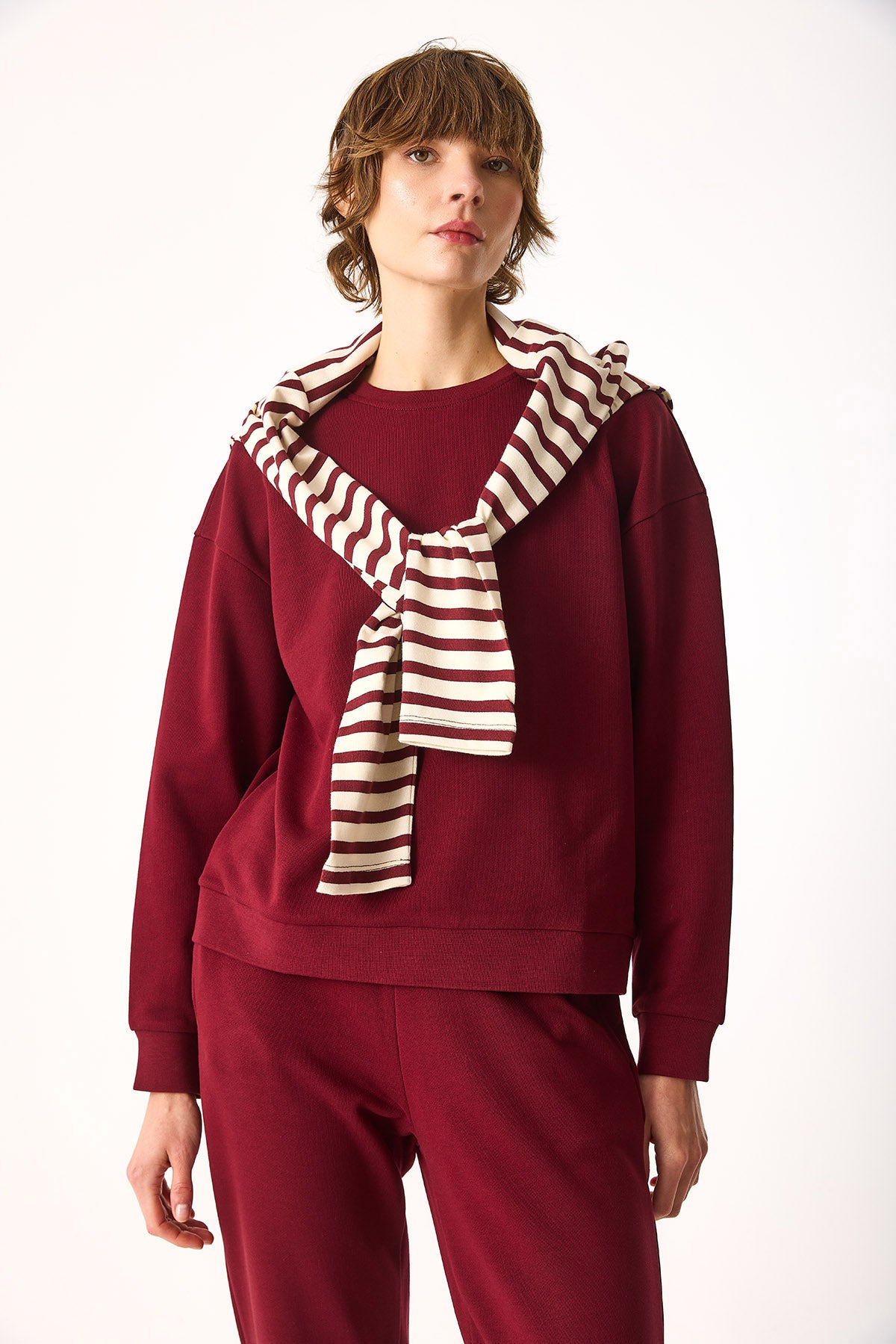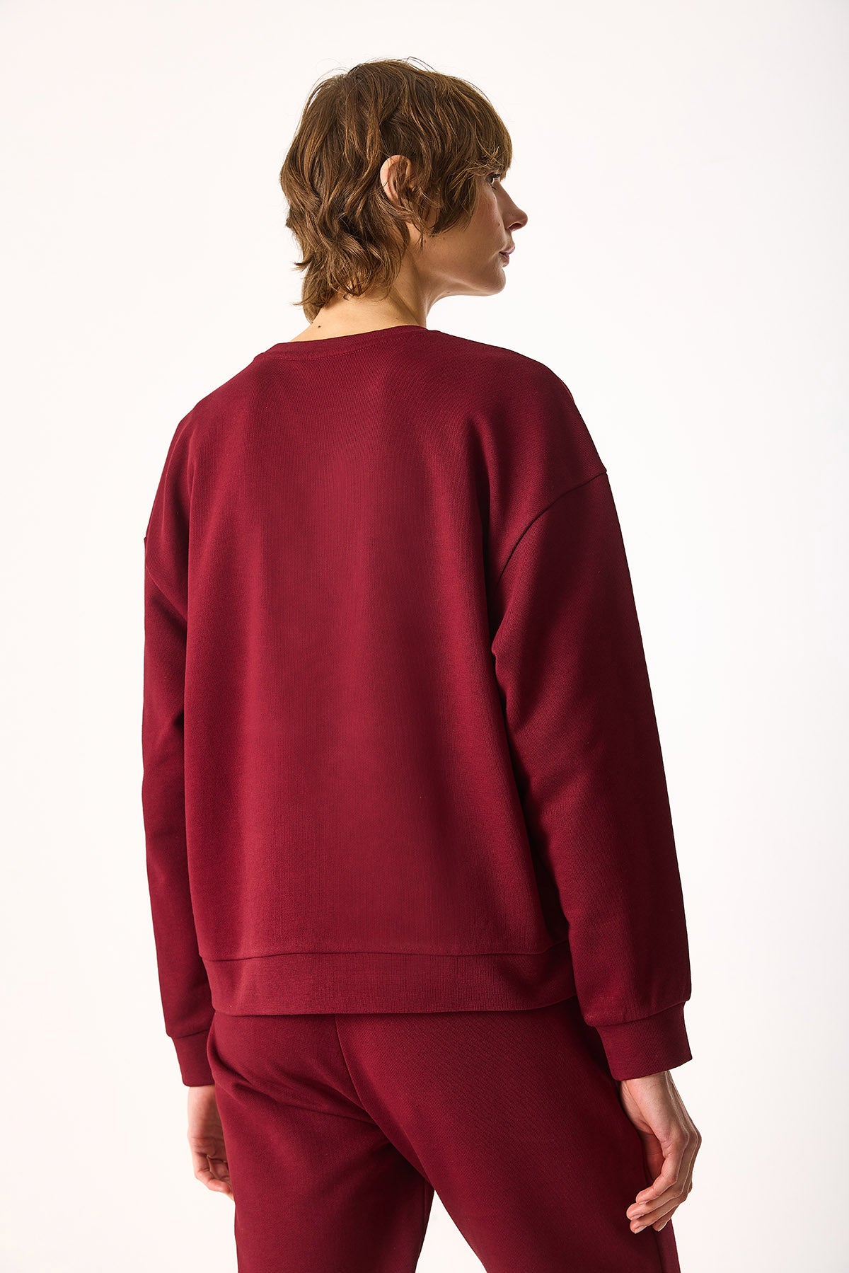 Kadın Rhona Bisiklet Yaka Regular Fit 3 İplik Sweatshirt %100 Pamuk - Bordo