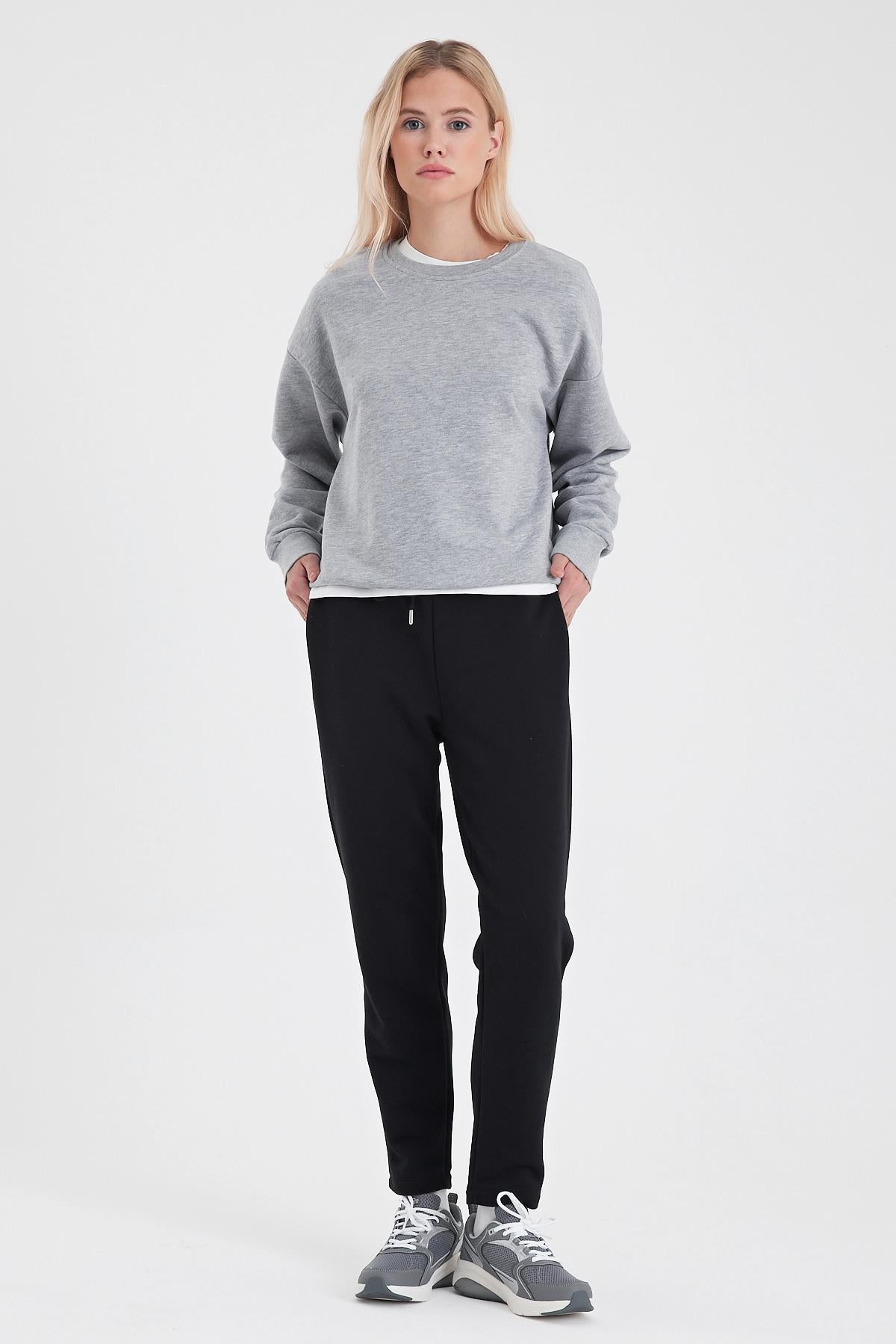 Kadın Rhona Bisiklet Yaka Regular Fit 3 İplik Sweatshirt - Gri Melanj
