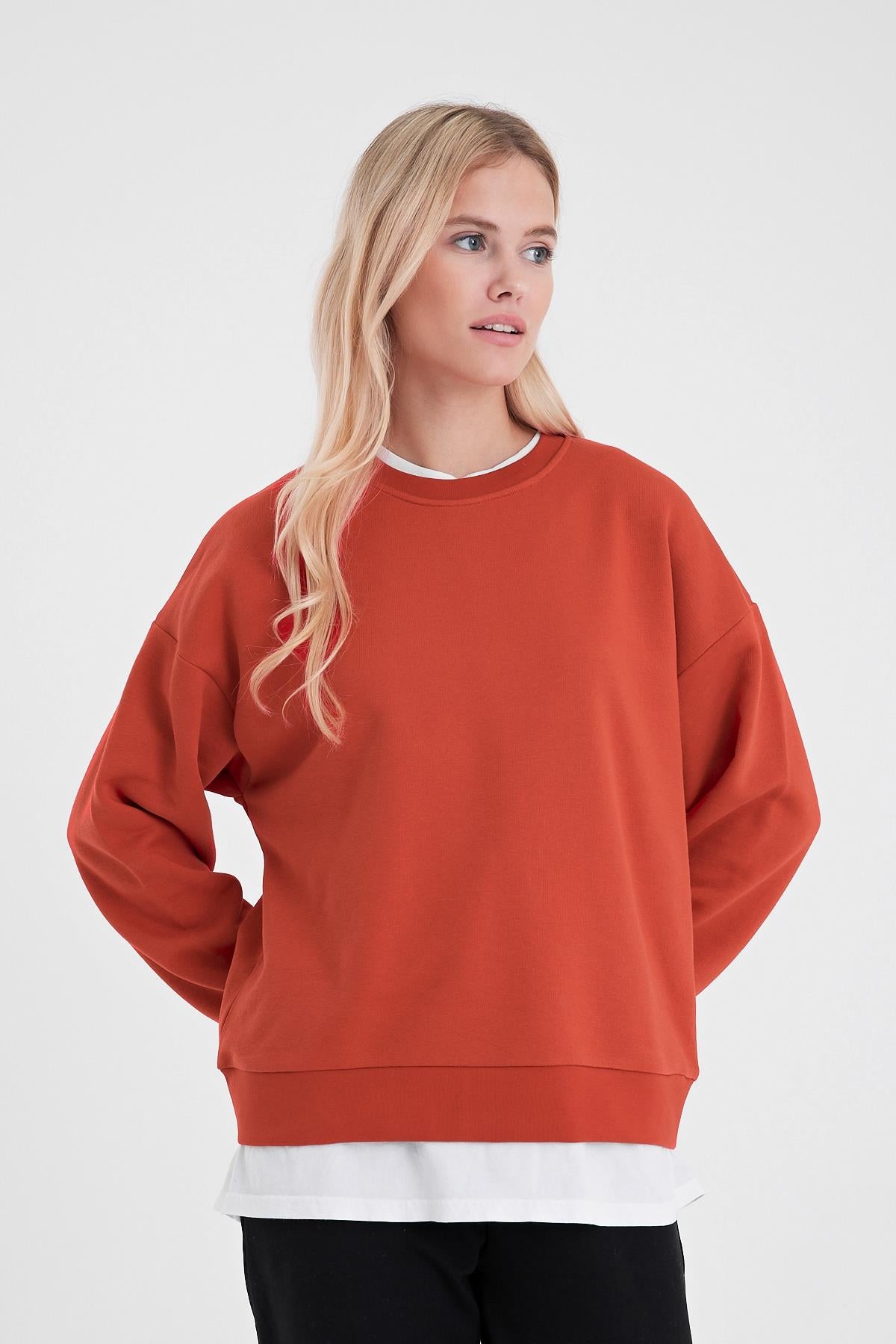 Kadın Rhona Bisiklet Yaka Regular Fit 3 İplik Sweatshirt - Kırmızı